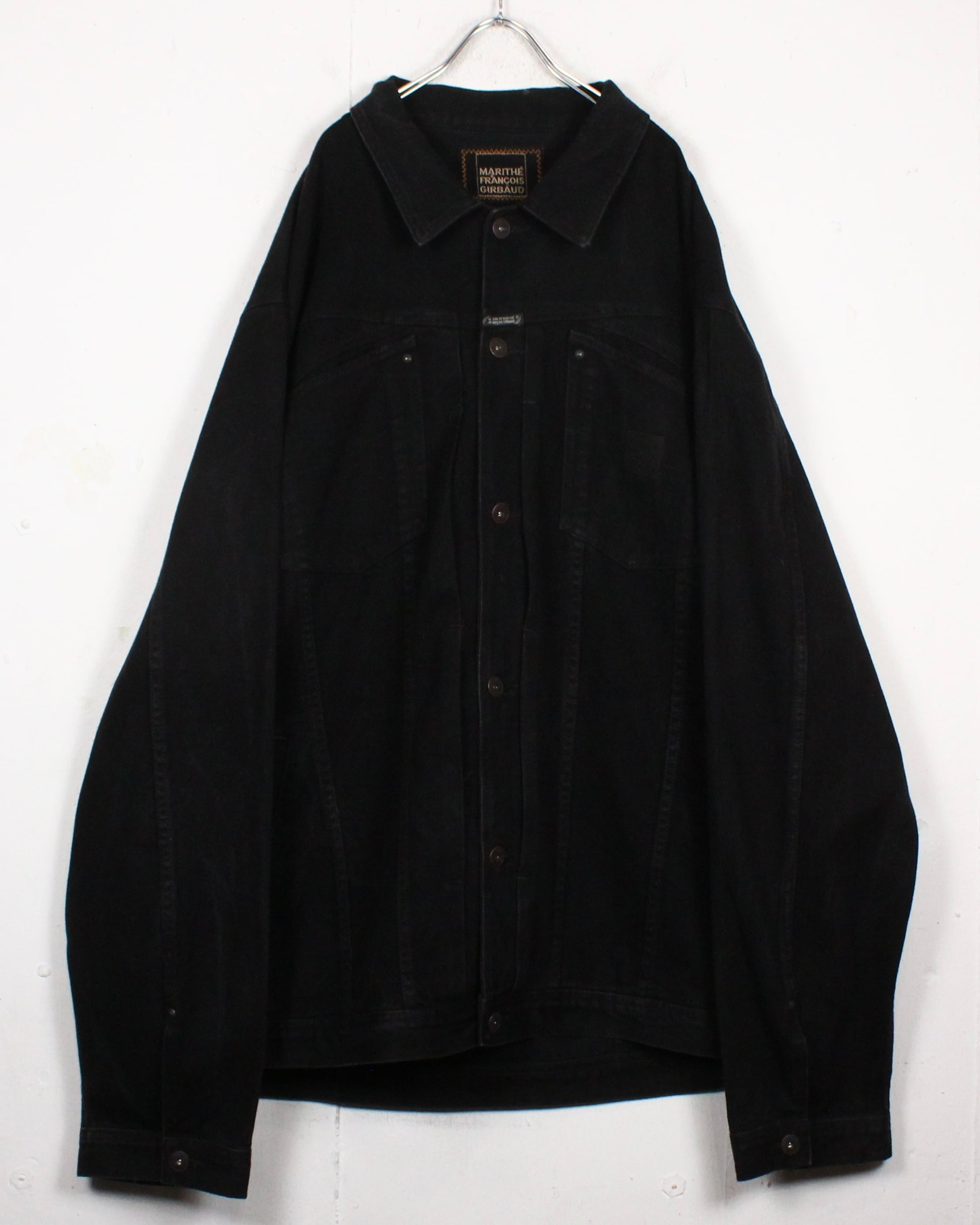 Supremeとのコラボレーションで話題を呼んだ"MARITHE FRANCOIS GIRBAUD"より、圧倒的な存在感を放つ4XLのオーバーサイズブラックデニムジャケット。