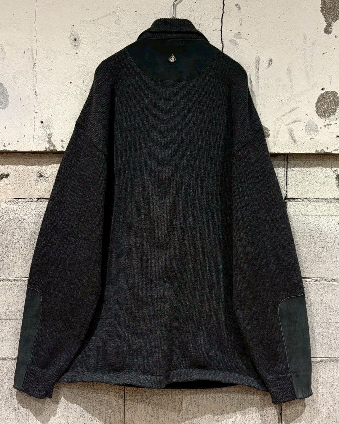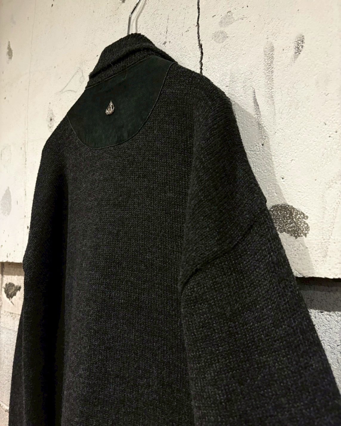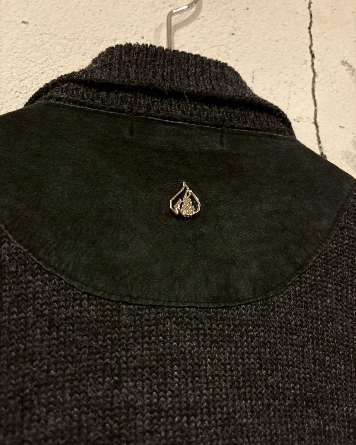 ブランドのルーツであるNYカルチャーを背景に、ヒップホップやアーバンストリートの空気を纏ったデザインが特徴。ボディには深みのあるチャコールグレーのニット素材をベースに、フロントパネルとエルボーパッチ部分をスエードレザーで切り替え。