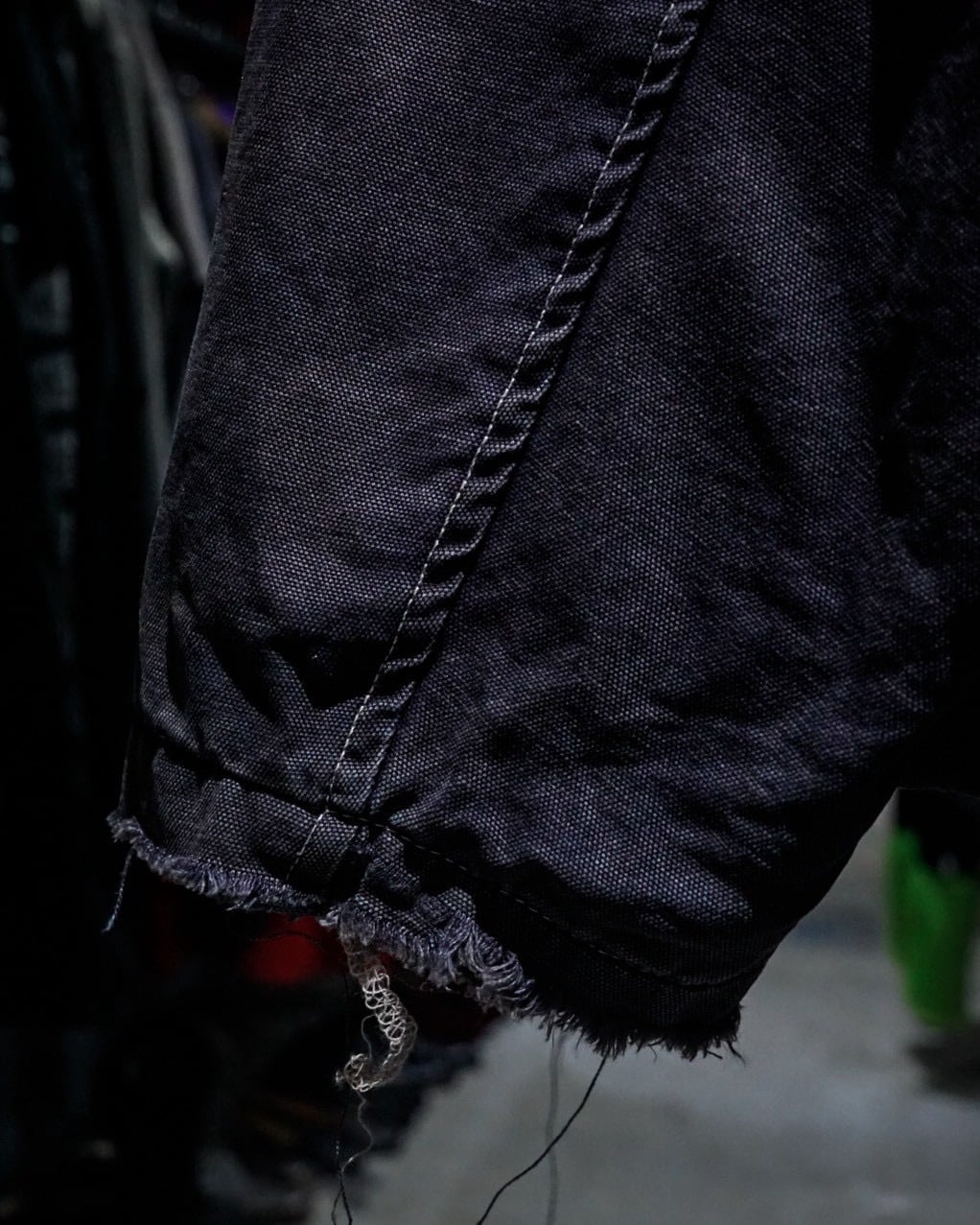 ボディには経年変化の美しいダックキャンバス地を採用。しっかりとした厚みとタフさを持ちながらも、フェード感のある色味が抜群の雰囲気を放ちます。ワークウェアの無骨さとモードなエッセンスが共存した、唯一無二の素材選びが魅力。