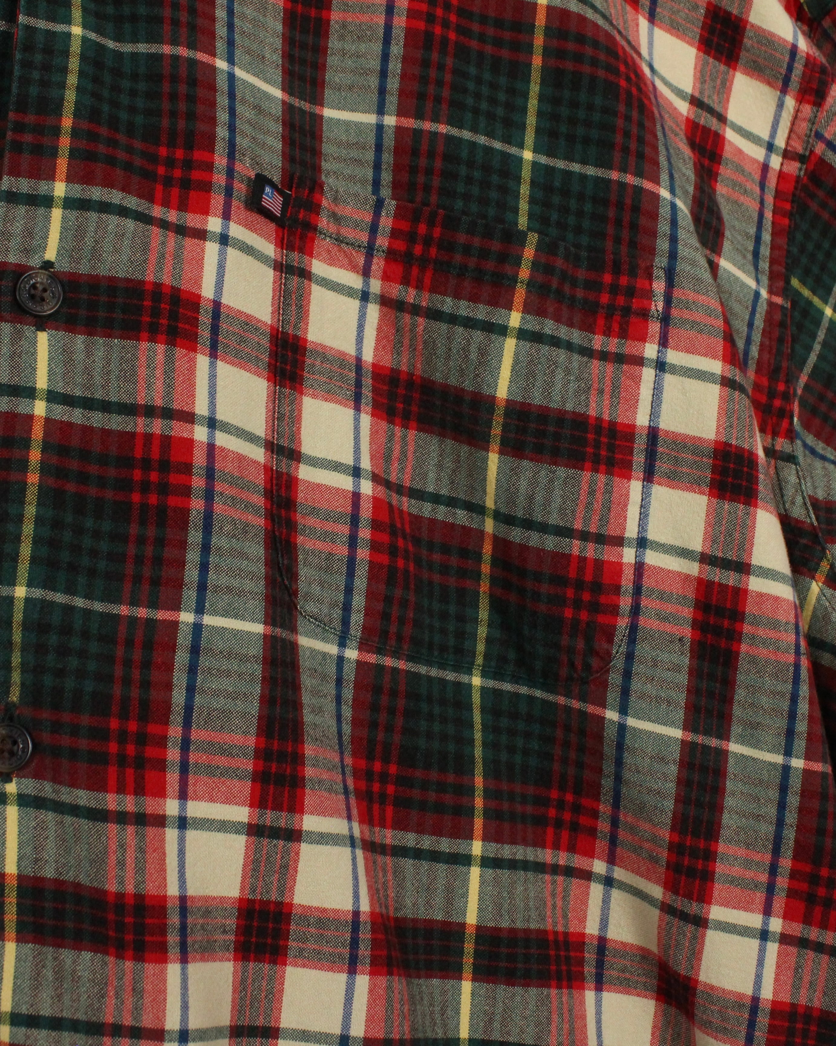 深みのあるグリーンとレッド、そしてアイボリーを組み合わせたチェックパターンが、
