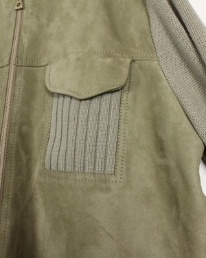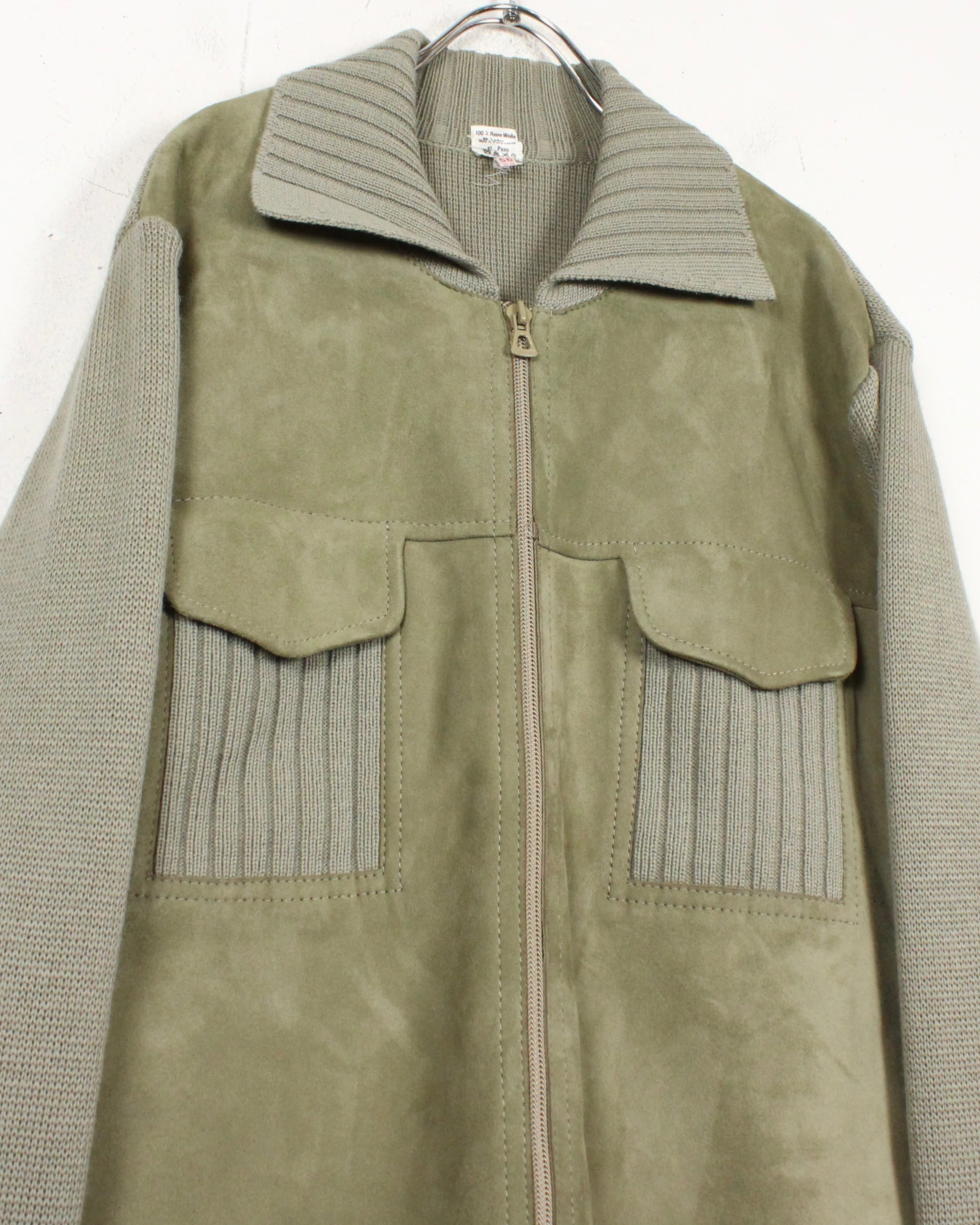 ヨーロッパメイドのスエードレザー切り替えジップアップニットジャケット。