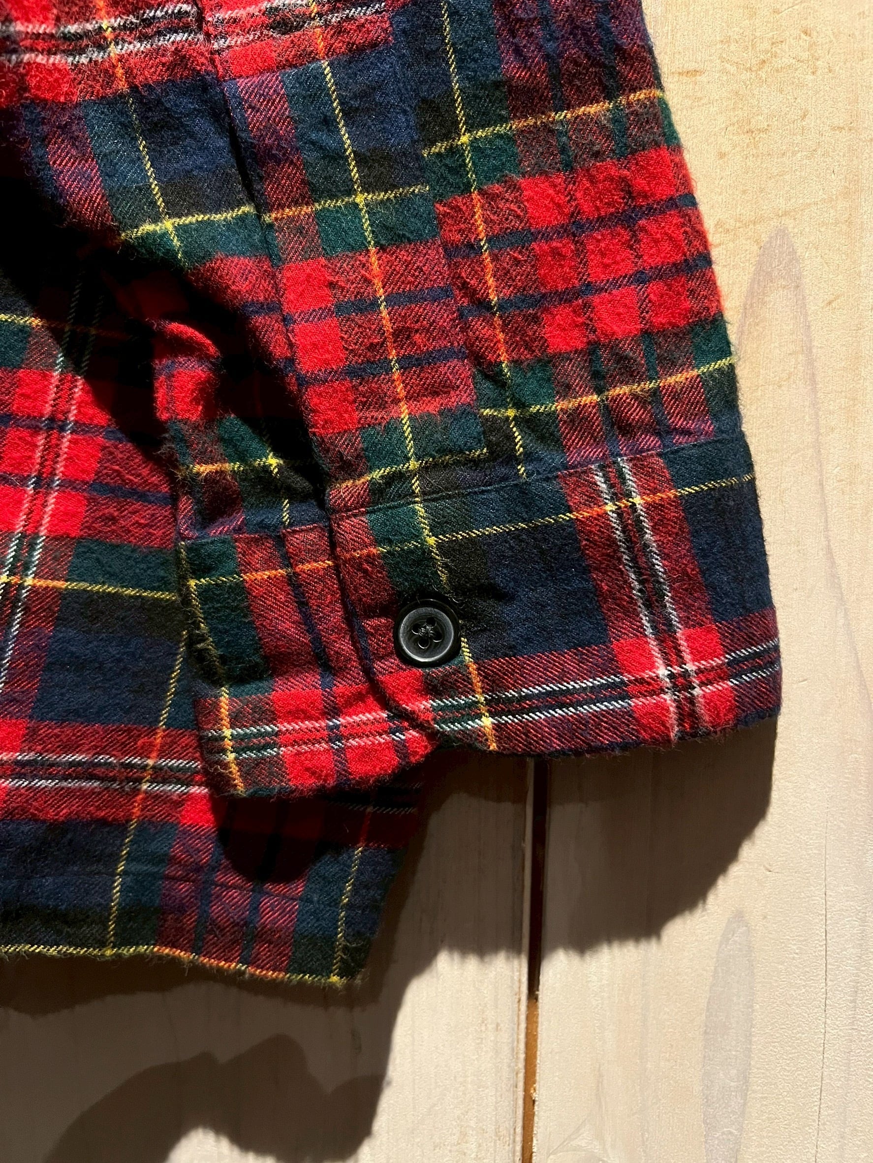 発色の良いレッド×ネイビー×イエローのタータンパターンをベースに、柔らかなコットンボディが良い雰囲気を漂わせています。