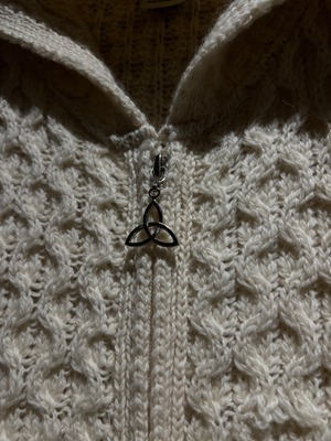 ジップエンドにはケルティックモチーフのメタルチャームを採用し、細部にまでアイルランドらしいクラフトマンシップが息づく仕様。