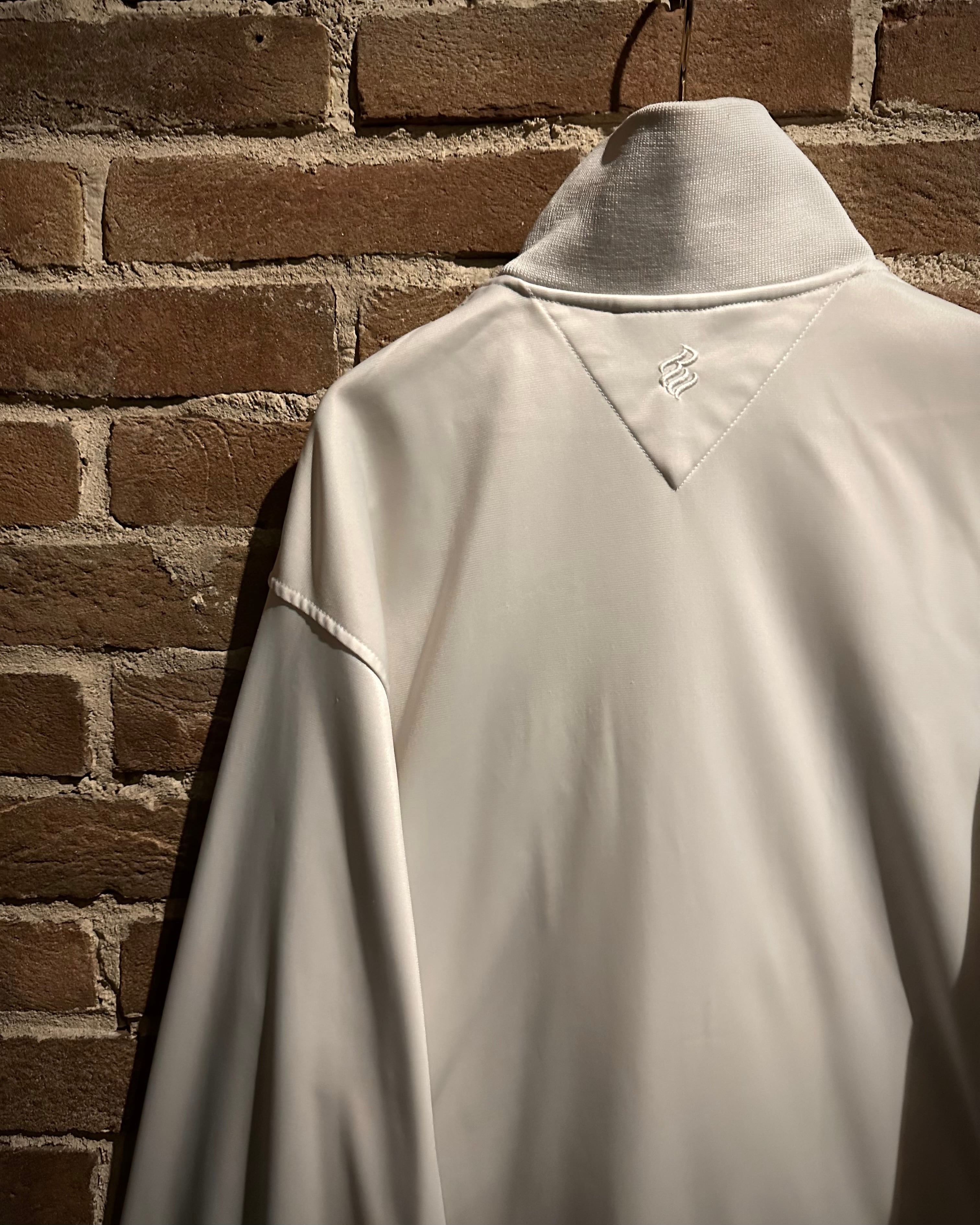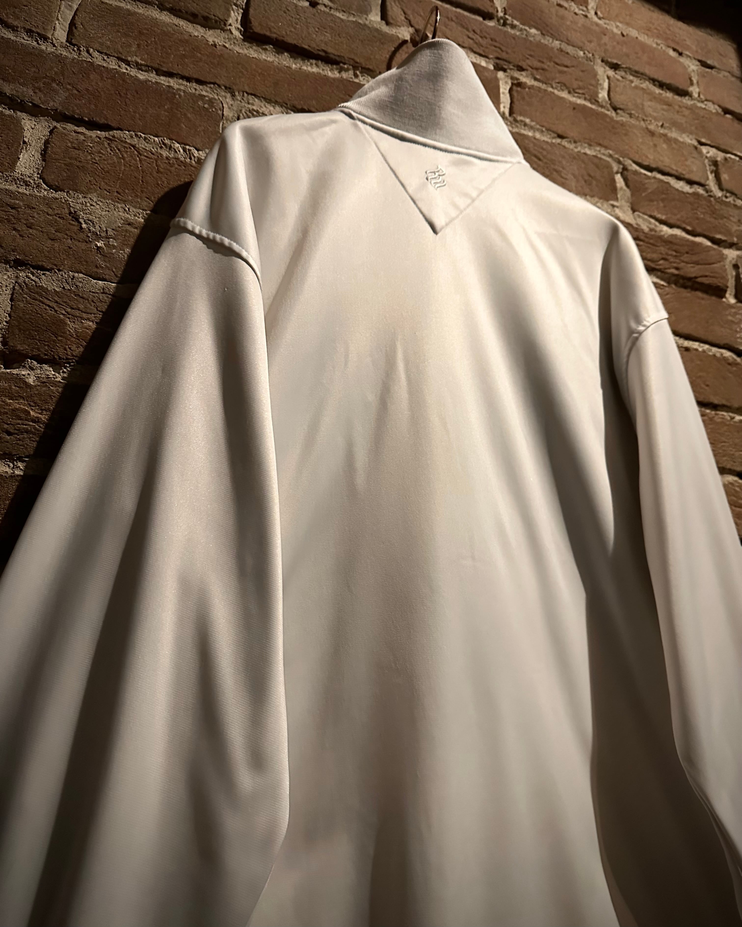スタンドカラーにリブ裾仕様、ルーズなサイジング。ボリュームあるシルエットが生む落ち感と、光沢のある素材が組み合わさることで、ストリートウェアながらもモードな印象へ。バックには控えめにブランドロゴ刺繍が入り、ミニマルと主張のバランスが秀逸に構築されています。