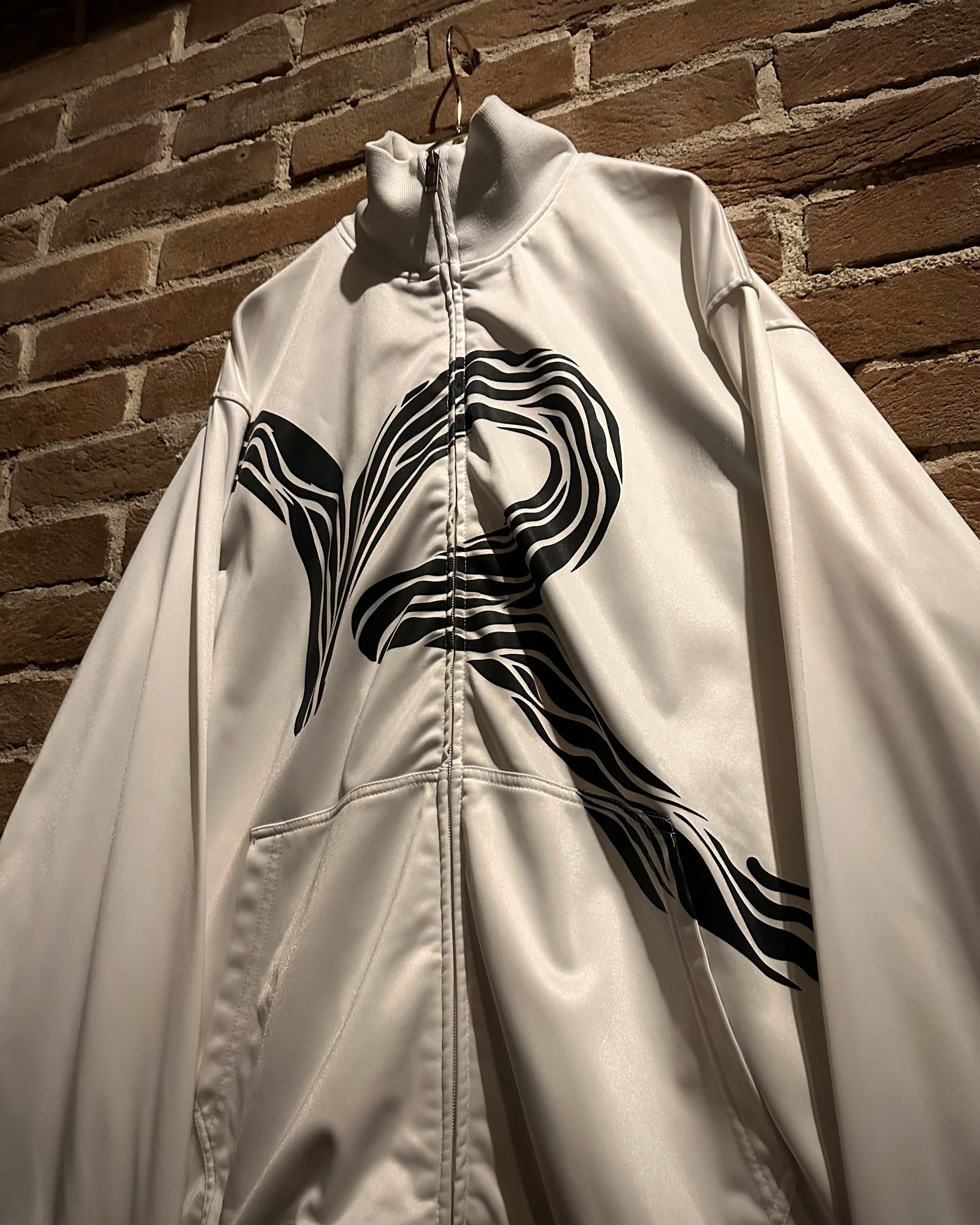 フロント全面を横切るように走るブラックの“R”ラインプリントが、流体的かつアートピースのような存在感を放ち、“ROCAWEAR”ならではのハイな表現力を感じさせます。