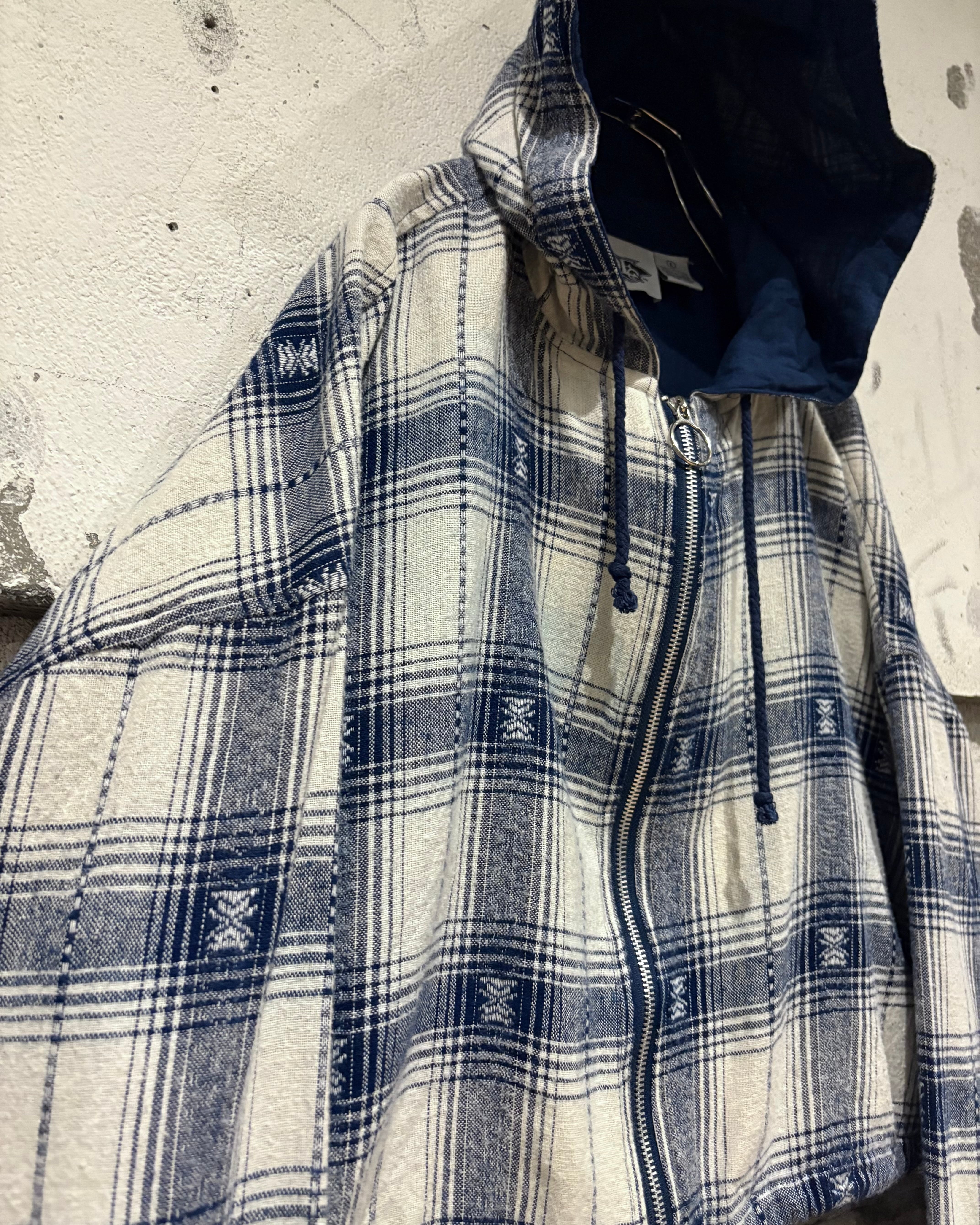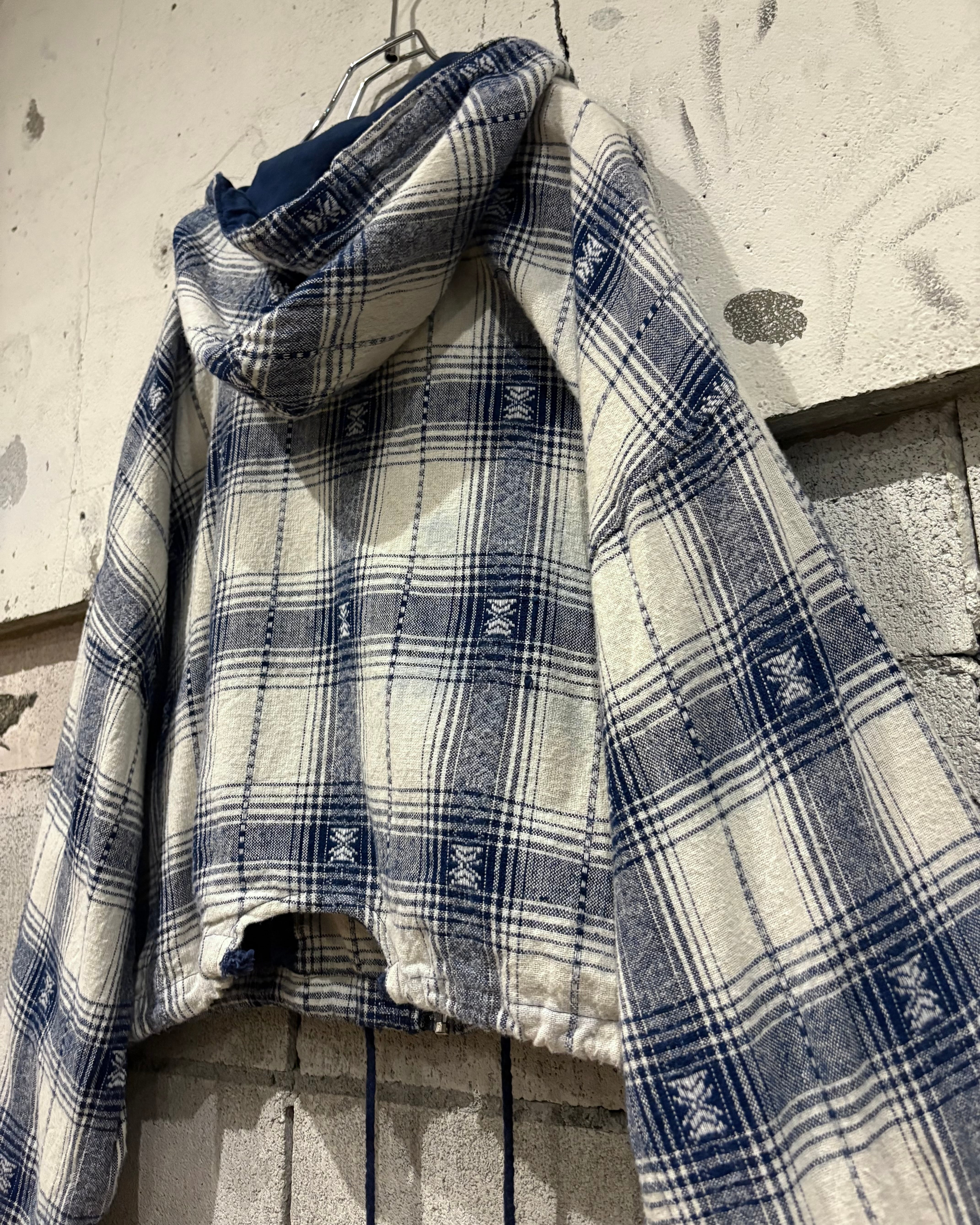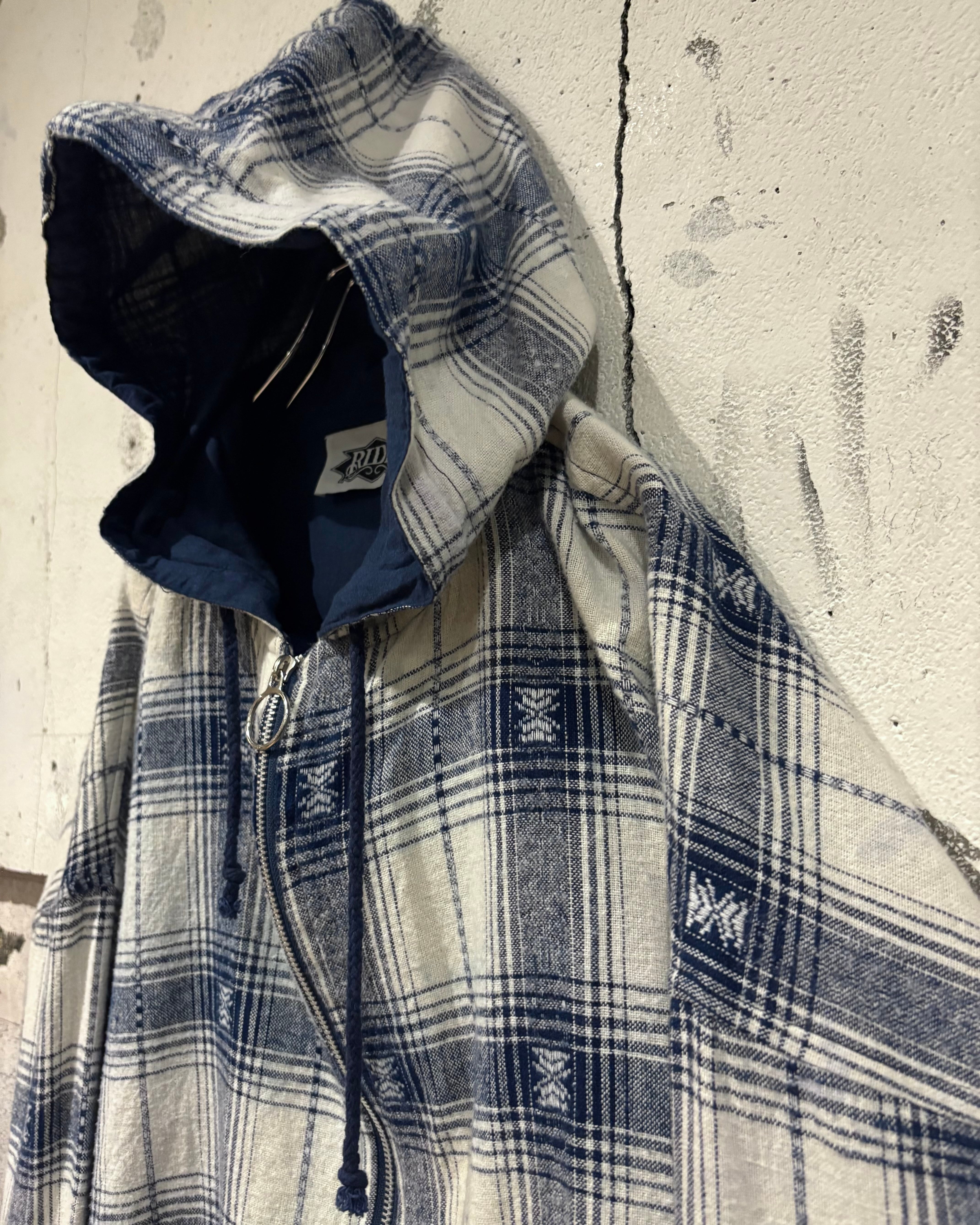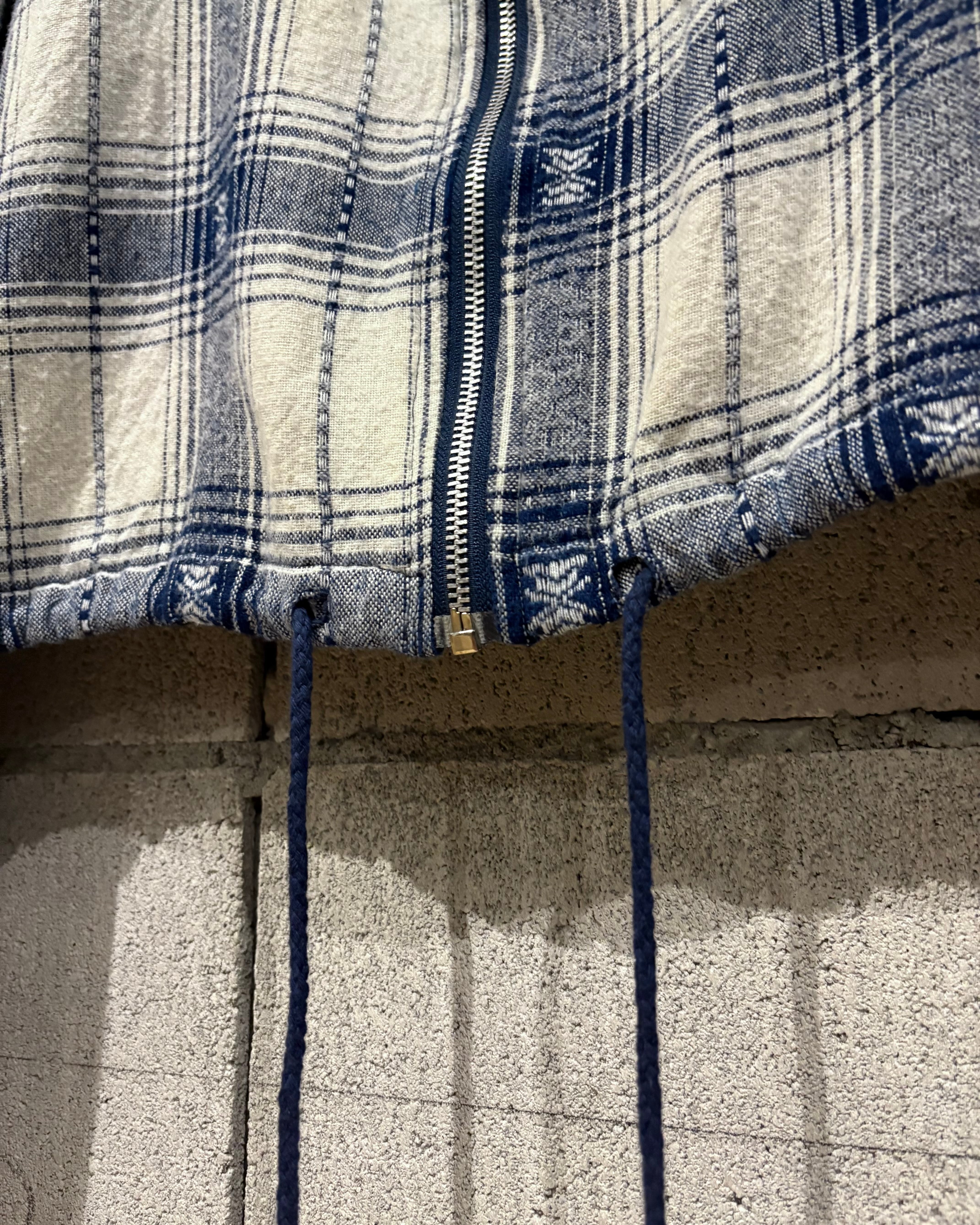 チェックシャツのような親しみやすさと、フーディージャケットならではのカジュアルな抜け感を兼ね備えた仕上がりです。