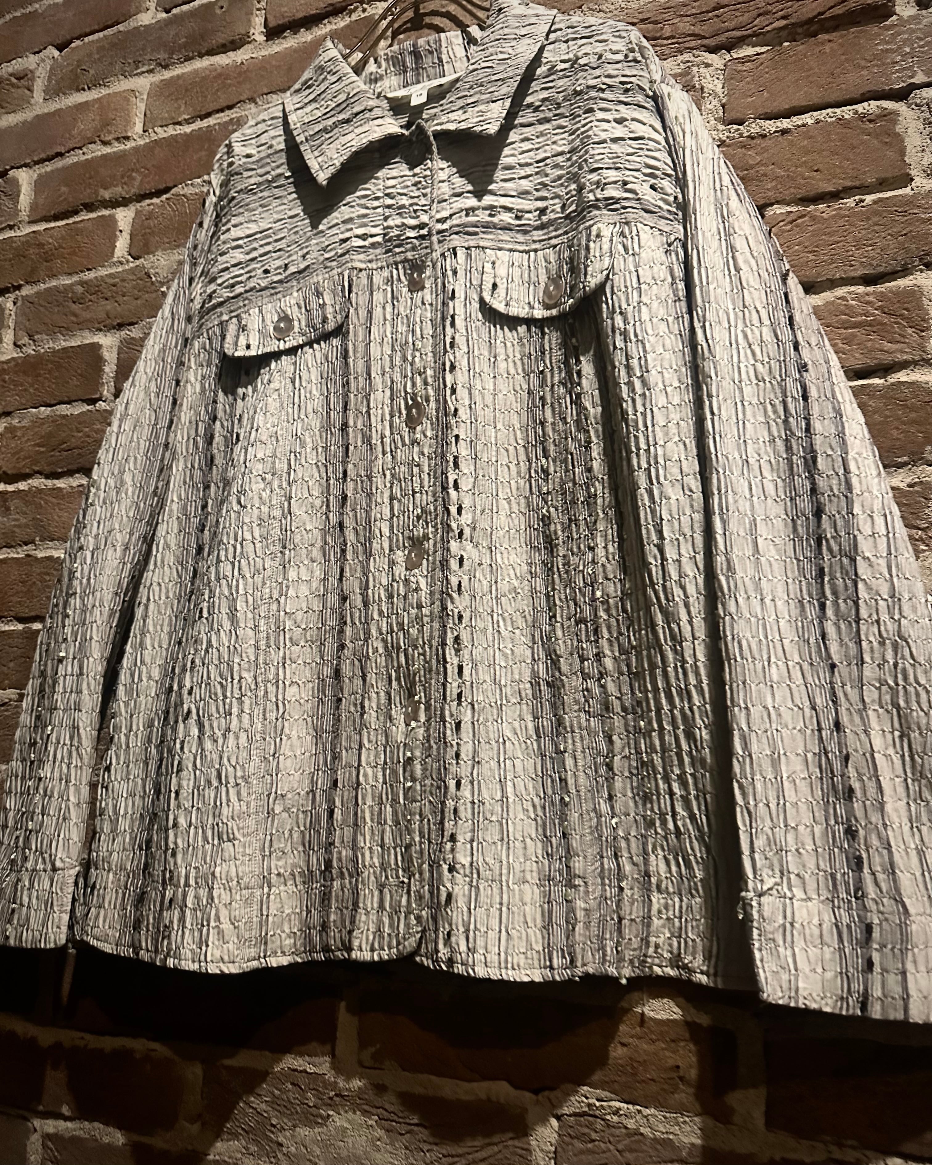独特な質感と上品な構築美を併せ持つ、トラッカー型ジャケットの稀有な1着です。