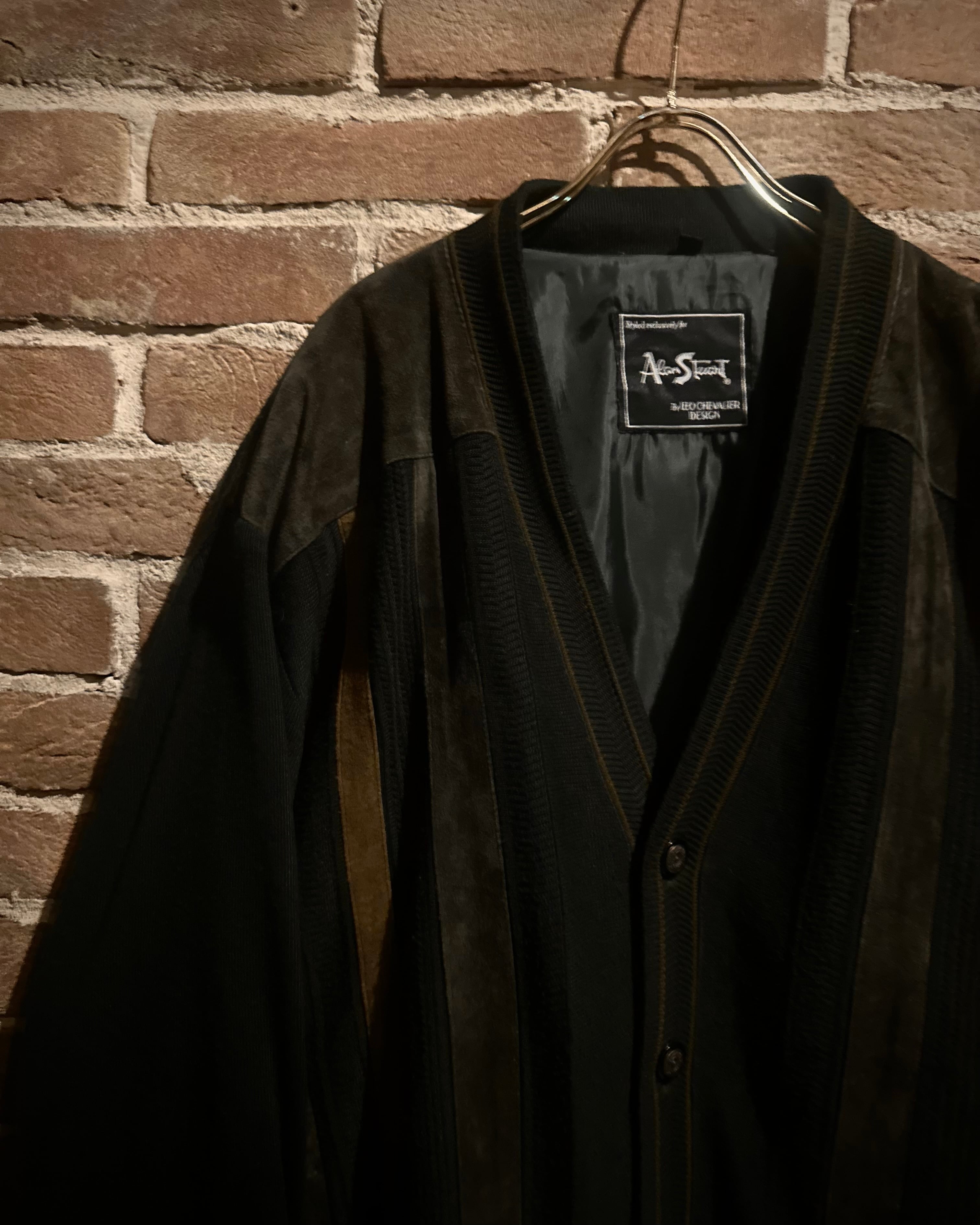 クラシカルな雰囲気と素材の重厚感を兼ね備えたスエード切り替えニットカーディガン。