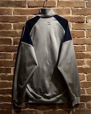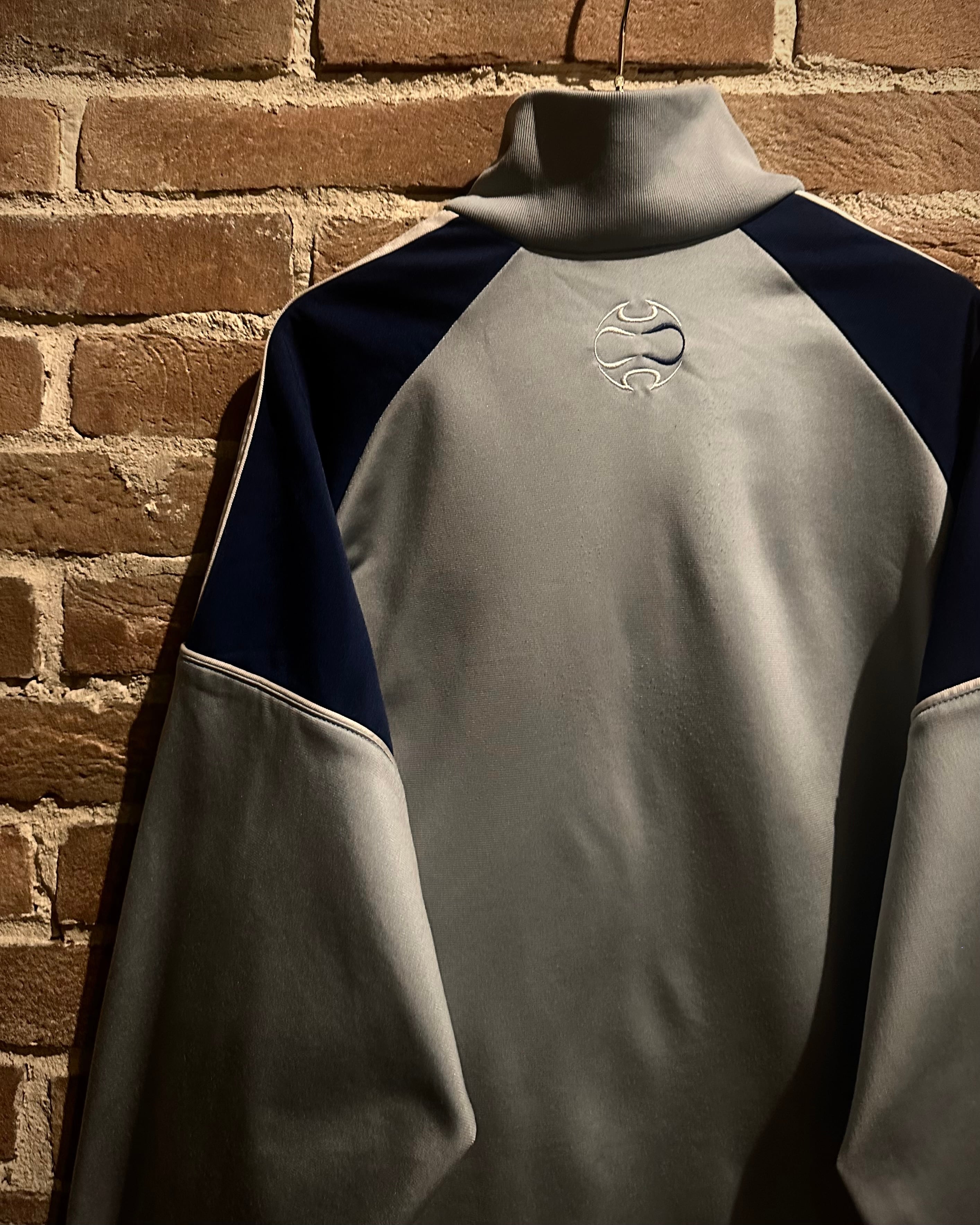 落ち着いたネイビーとグレーの切り替えが印象的な1着。