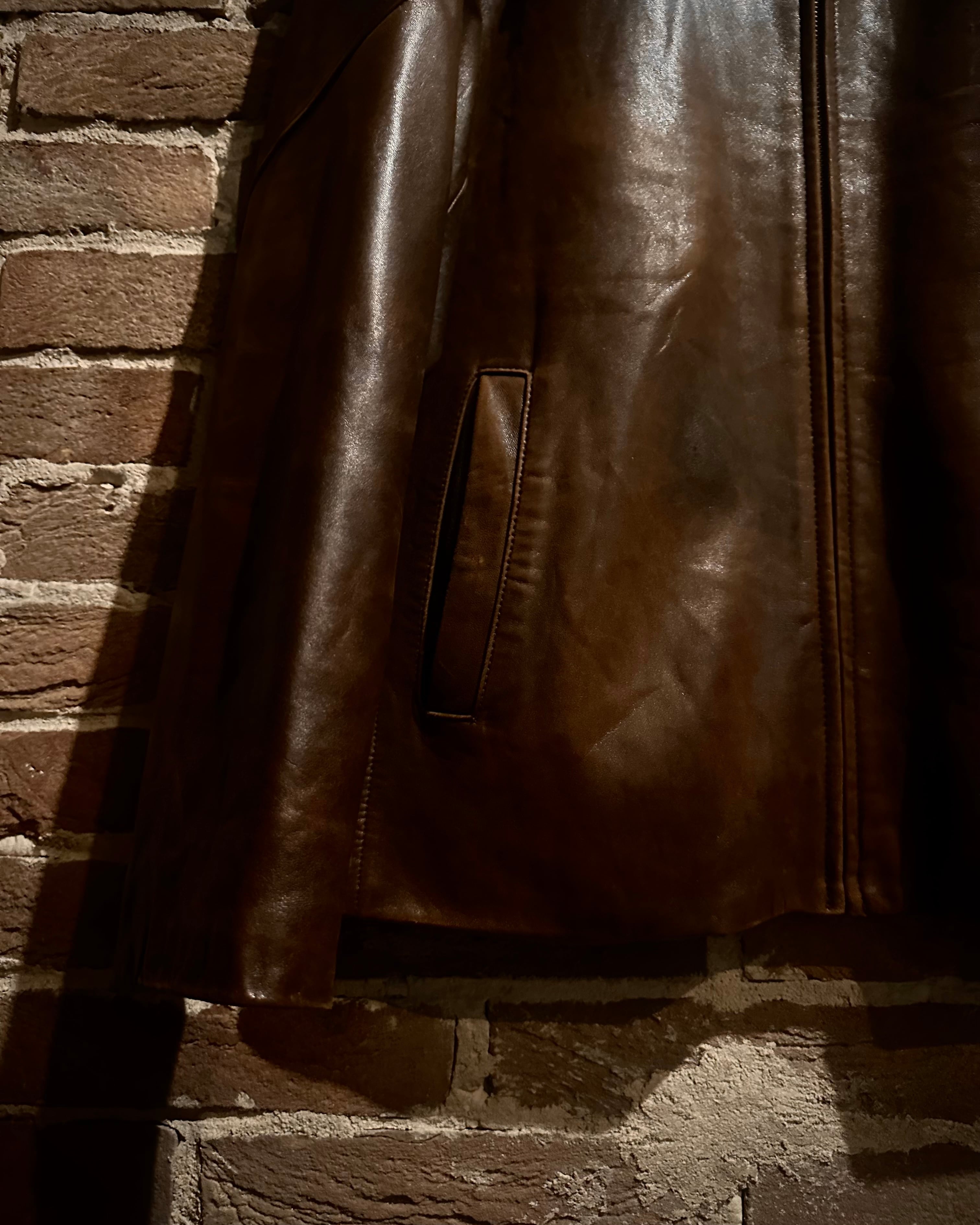 デザインは無駄を削ぎ落としたジップアップ仕様。程よく広がりを持たせた襟と直線的なカッティングラインが、TOMMYらしいクラシカルで上品なムードを醸し出します。袖口やポケット周りに施されたステッチワークが、レザーの重厚さの中に繊細なアクセントをプラス。