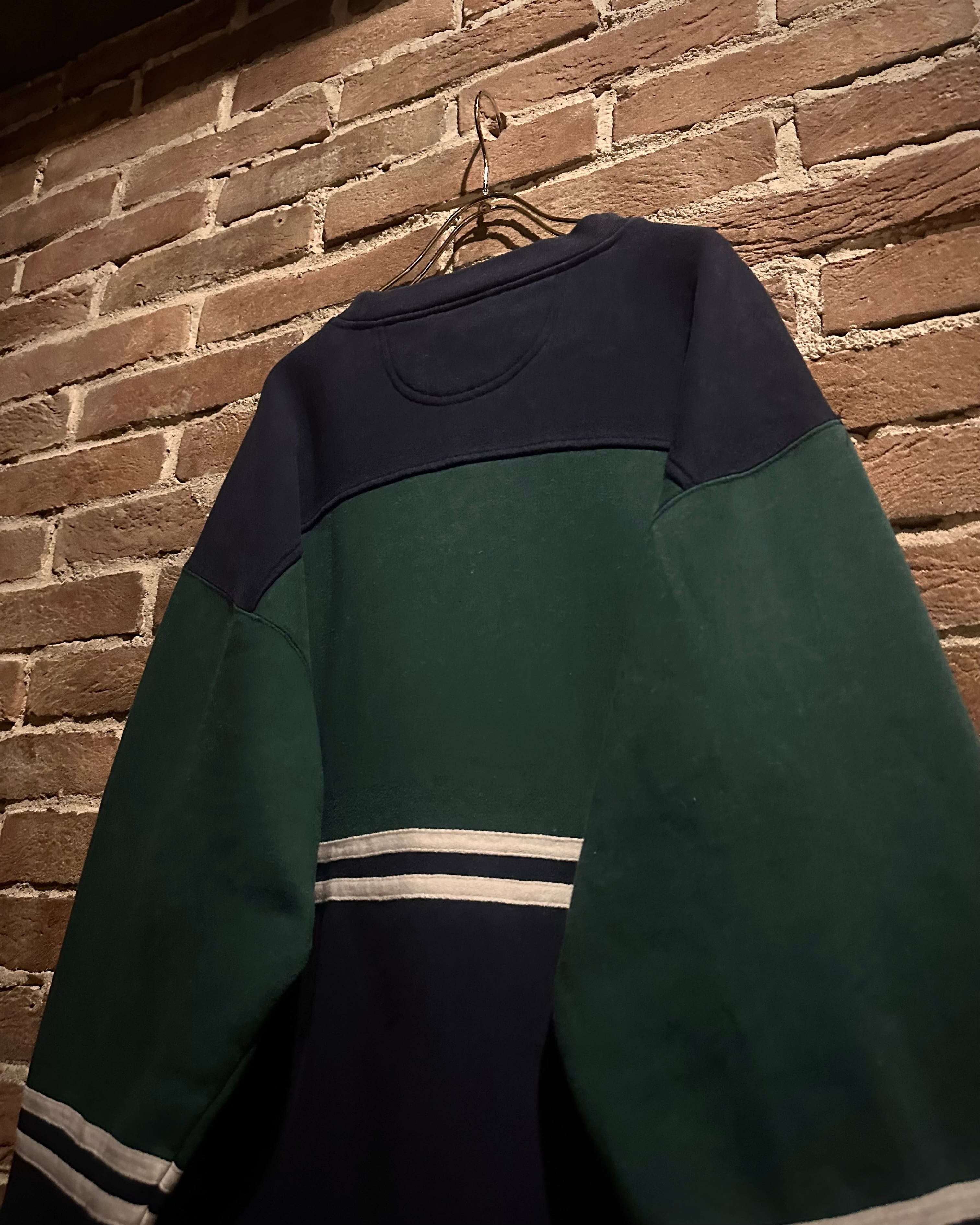 裾や袖口、身頃の切り替えラインにはホワイトのラインリブを採用。全体の印象を引き締めつつ、スポーティーなムードをプラス。裏起毛の柔らかなコットンボディは着心地も極上で、リラックス感のあるルーズシルエットが今の気分にぴったりです。