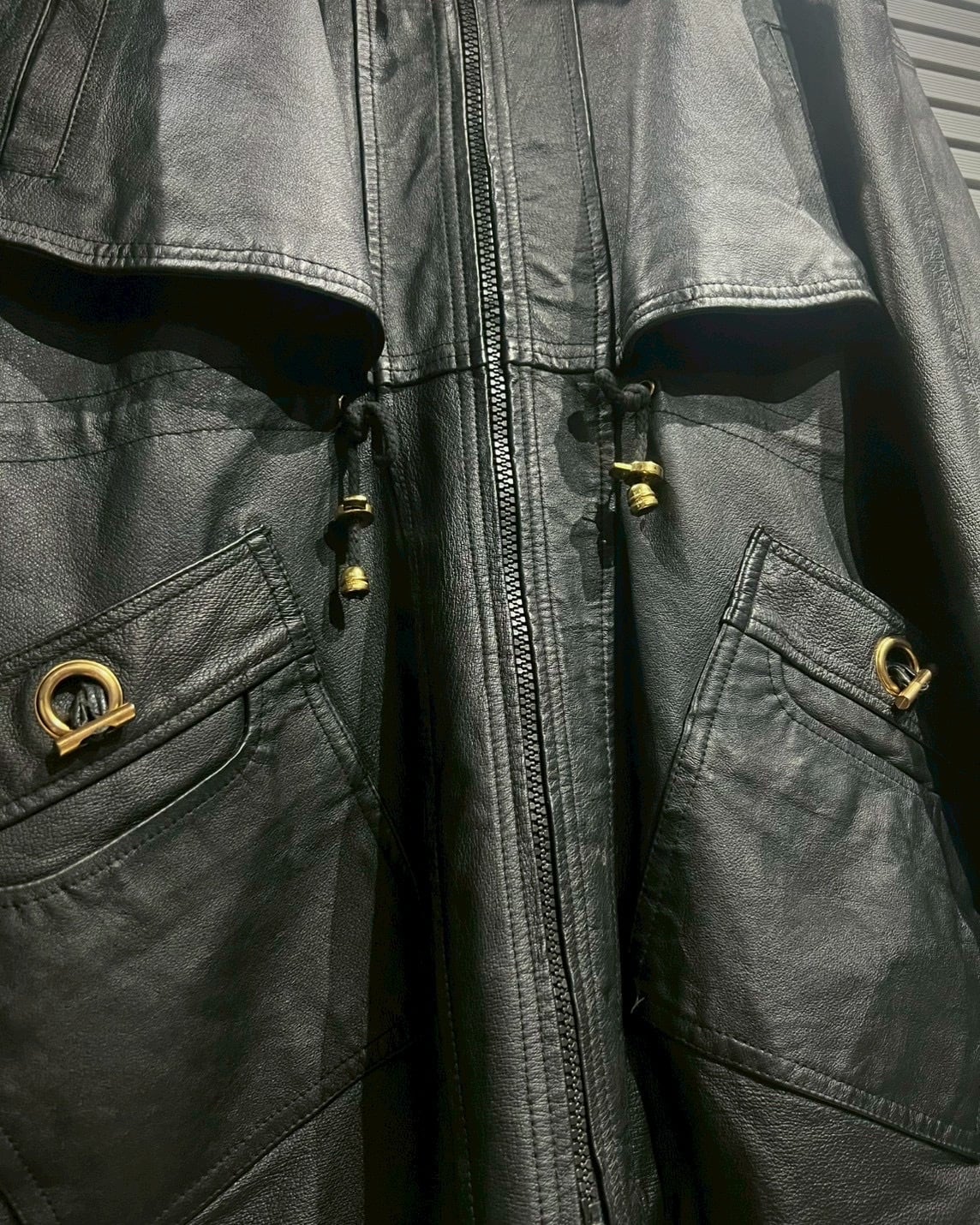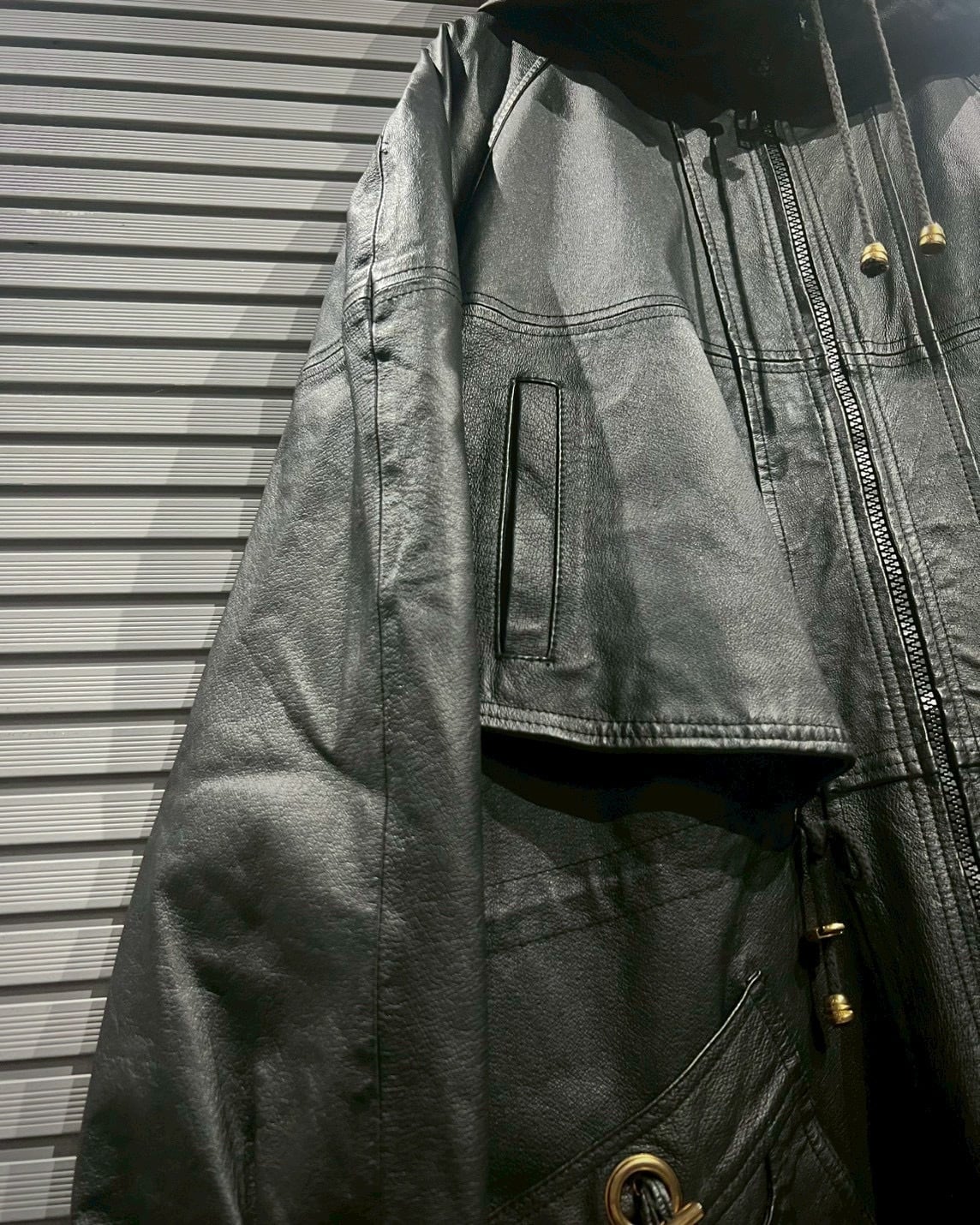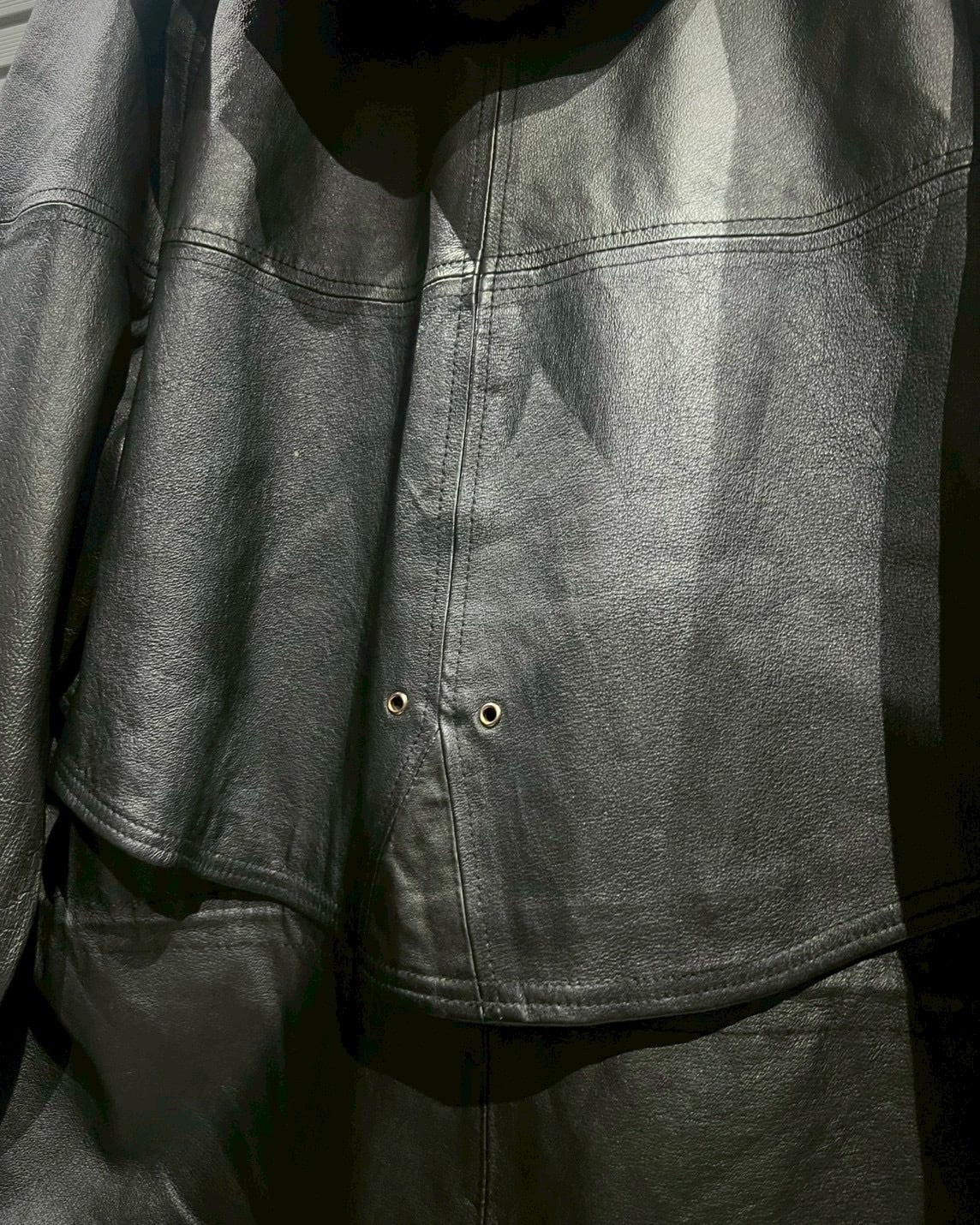 ボディ全体を包み込むのは、鈍く光沢を帯びた上質なリアルレザー。しなやかさと厚みを兼ね備えた革質で、着用とともに馴染み、深い艶と立体的なシワ感が増していく極上のエイジングを楽しめます。陰影の出やすいマットなブラックカラーは、重厚でありながらスタイリング全体を引き締めるような存在感を発揮。