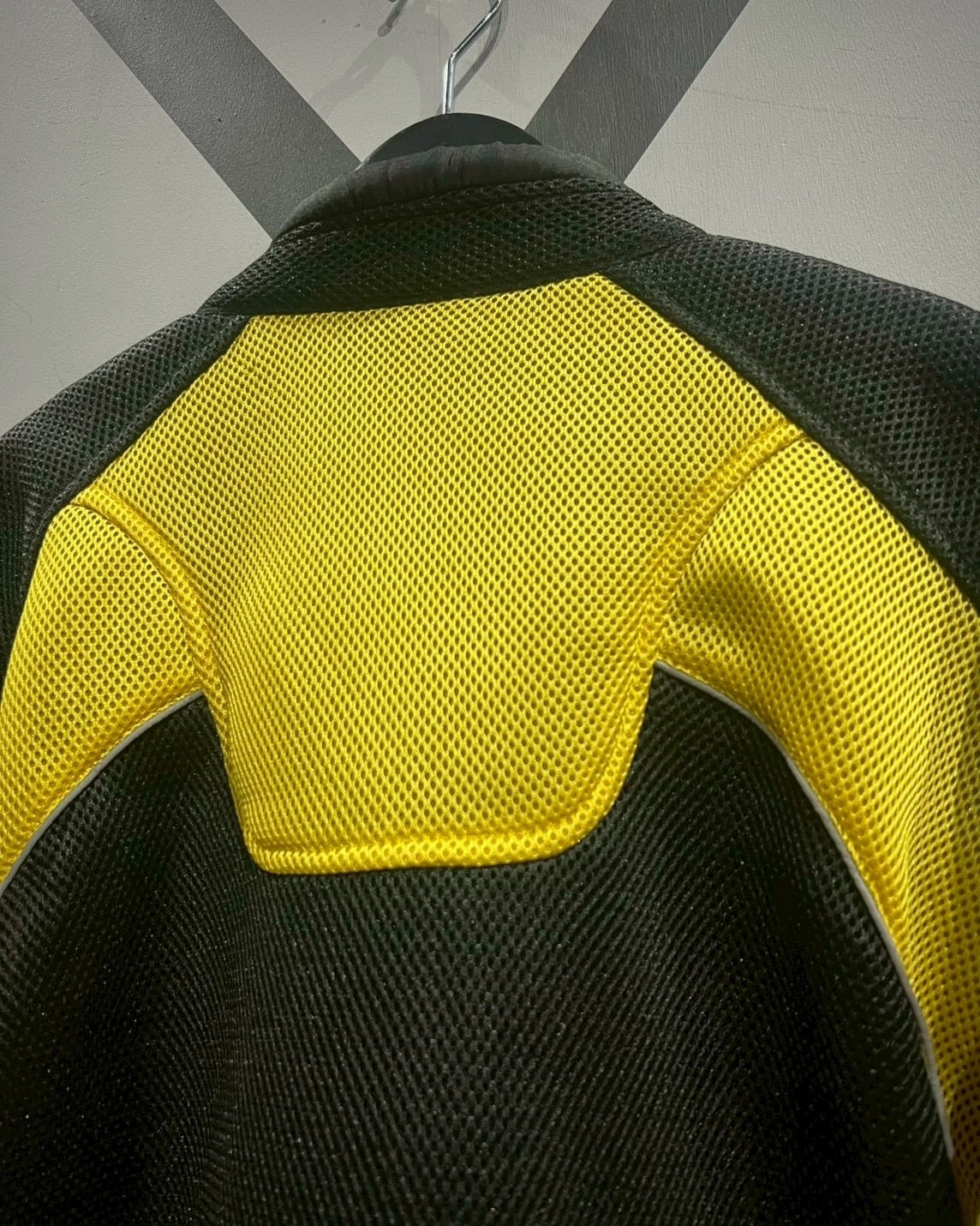 黒×黄で切り替えた立体的なメッシュボディは、視覚的にも機能的にも完成度の高いデザイン。メッシュ素材特有の高い通気性と軽量性を備え、長時間の着用でもストレスフリーな快適さを実現。重厚なレーシングギアのルックスを持ちながら、驚くほどライトな着心地に仕上がっています。