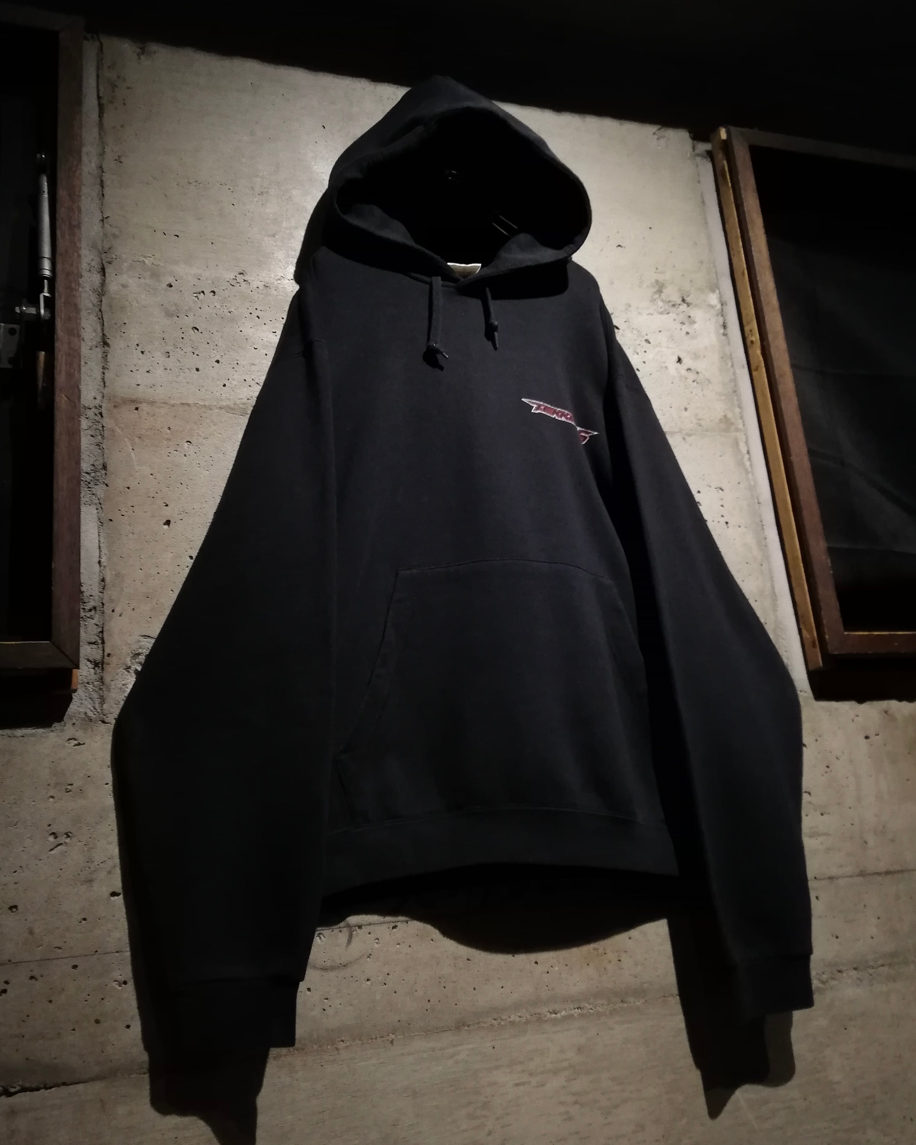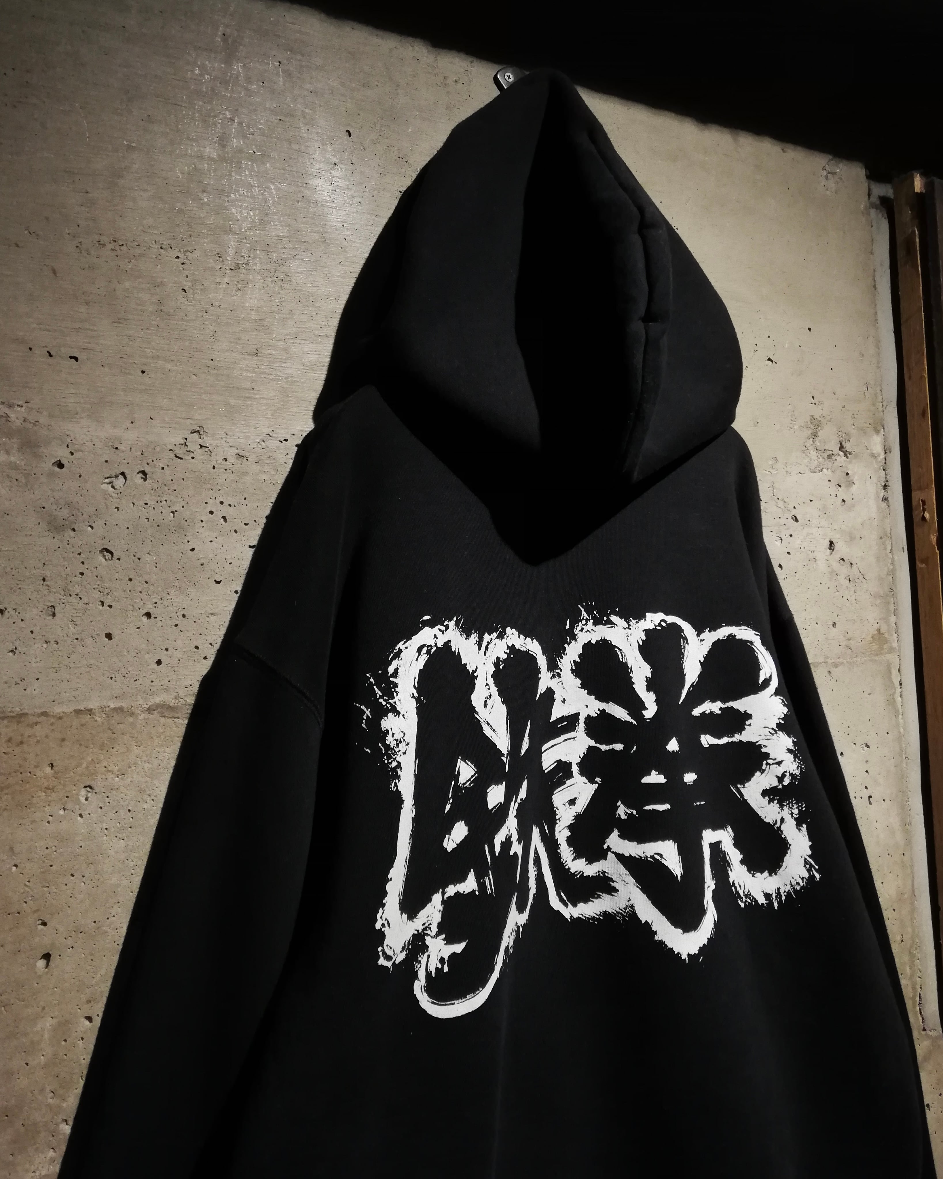 コットン×ポリエステルによる肉厚なボディは、フーディとしてのボリューム感をしっかり保ちつつも柔らかな着心地。ストリート、ゲームカルチャーを横断するハイブリッドな存在でありながら、ビジュアルは無骨で洗練された印象。一枚で主役になる存在感を放ちながら、ジャケットのインナーとしても抜群に映えます。