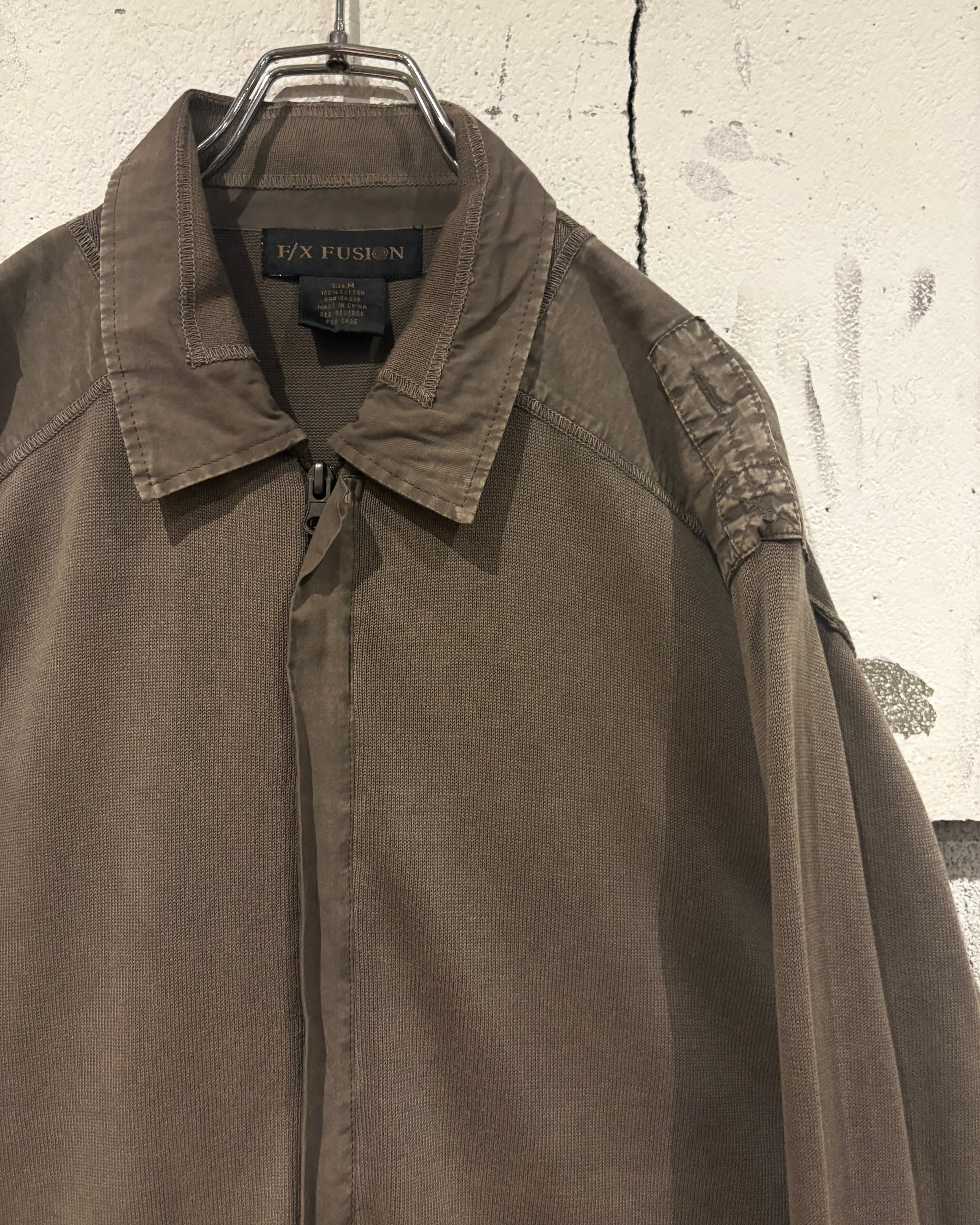 ミリタリーとモードの間を縫うようにデザインされた、異素材切り替えジップニットシャツ。