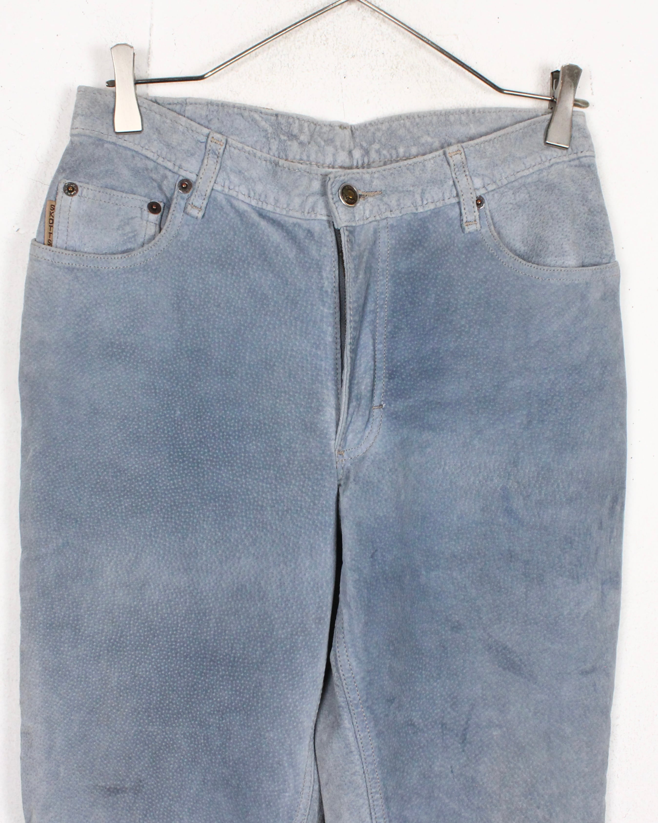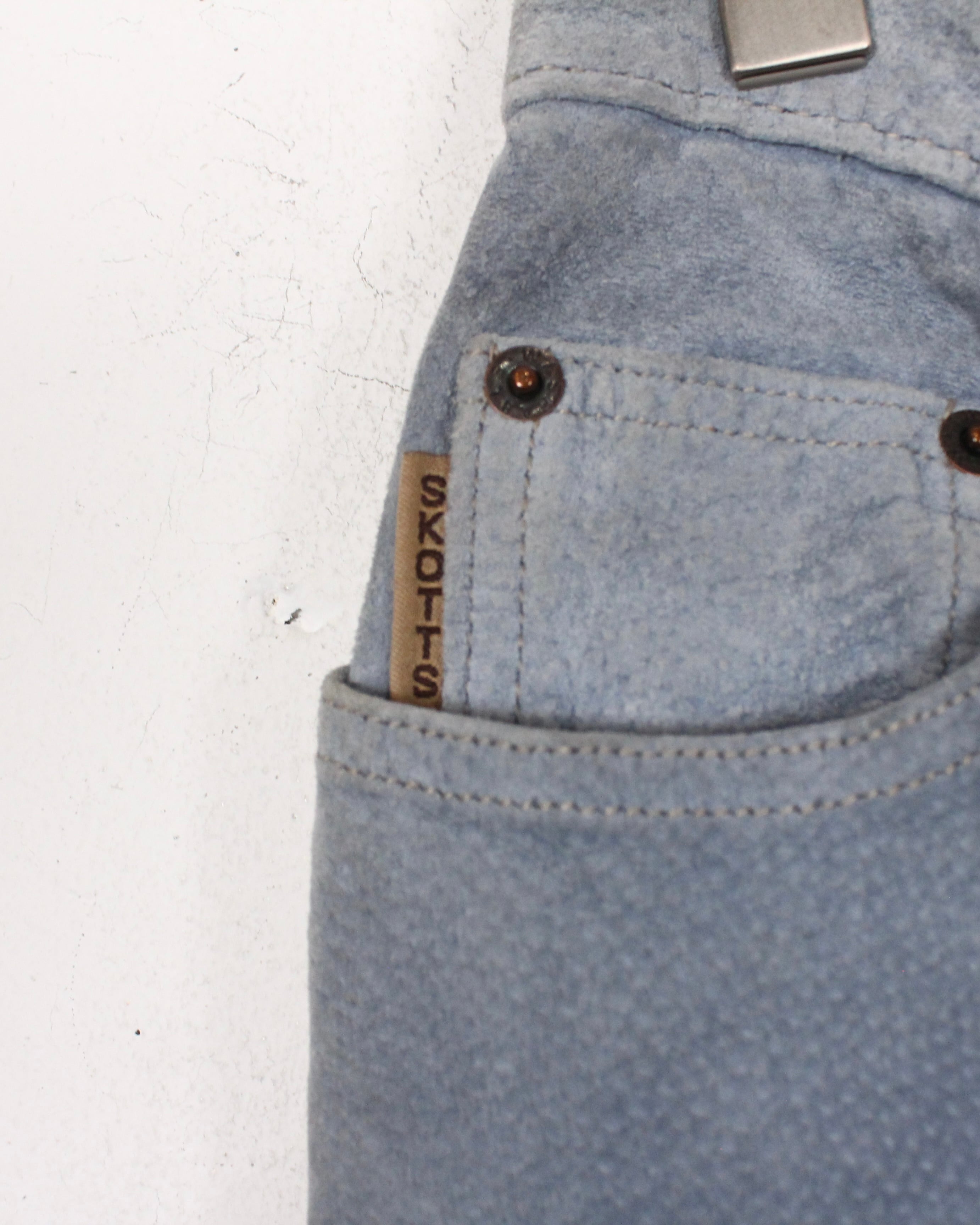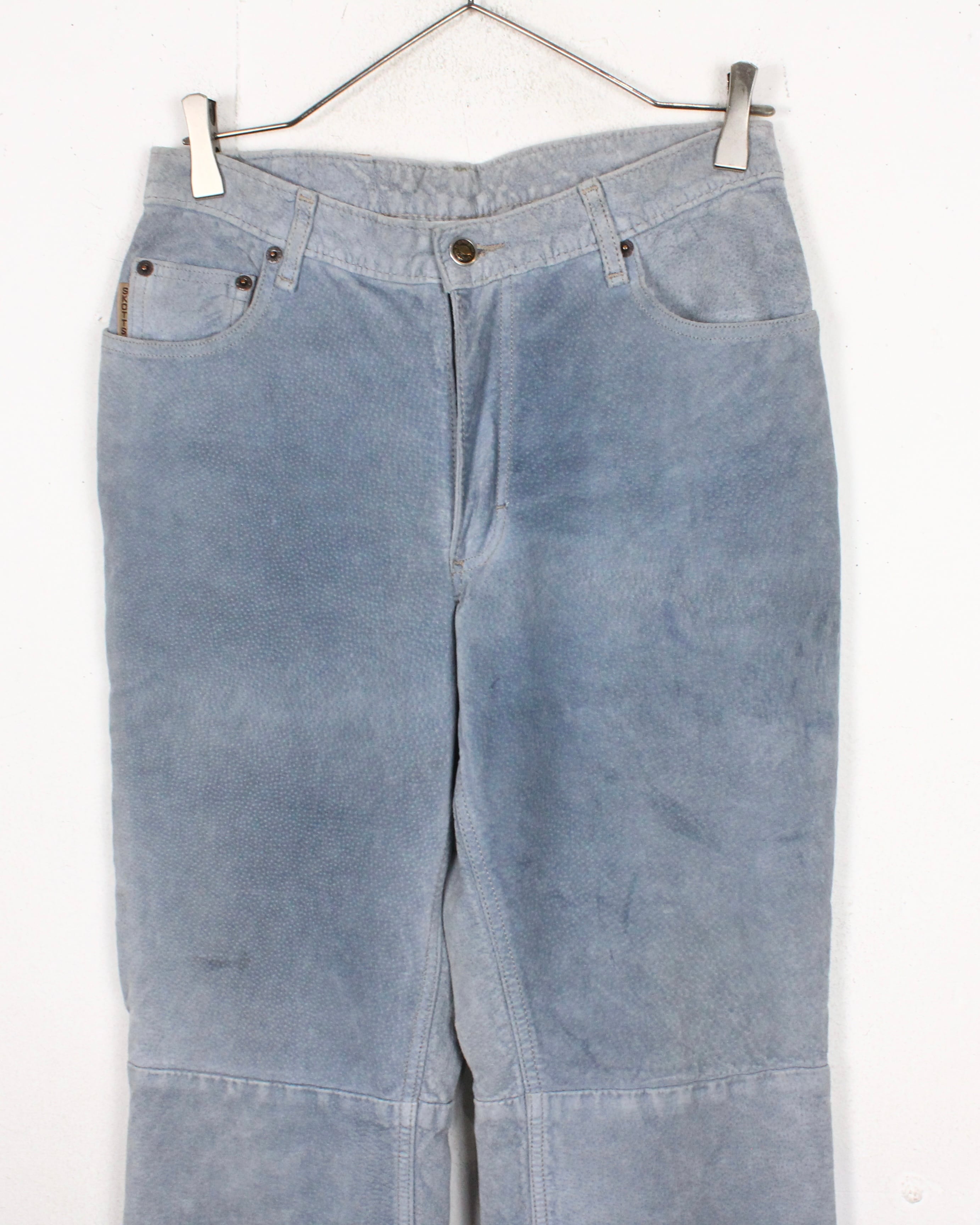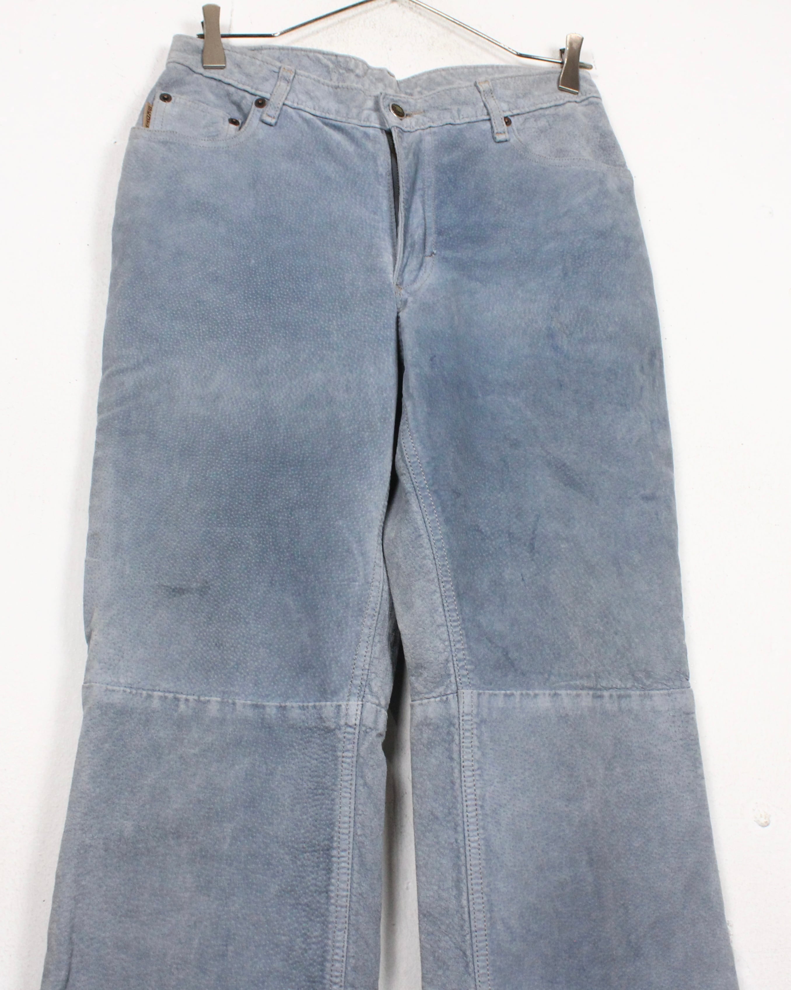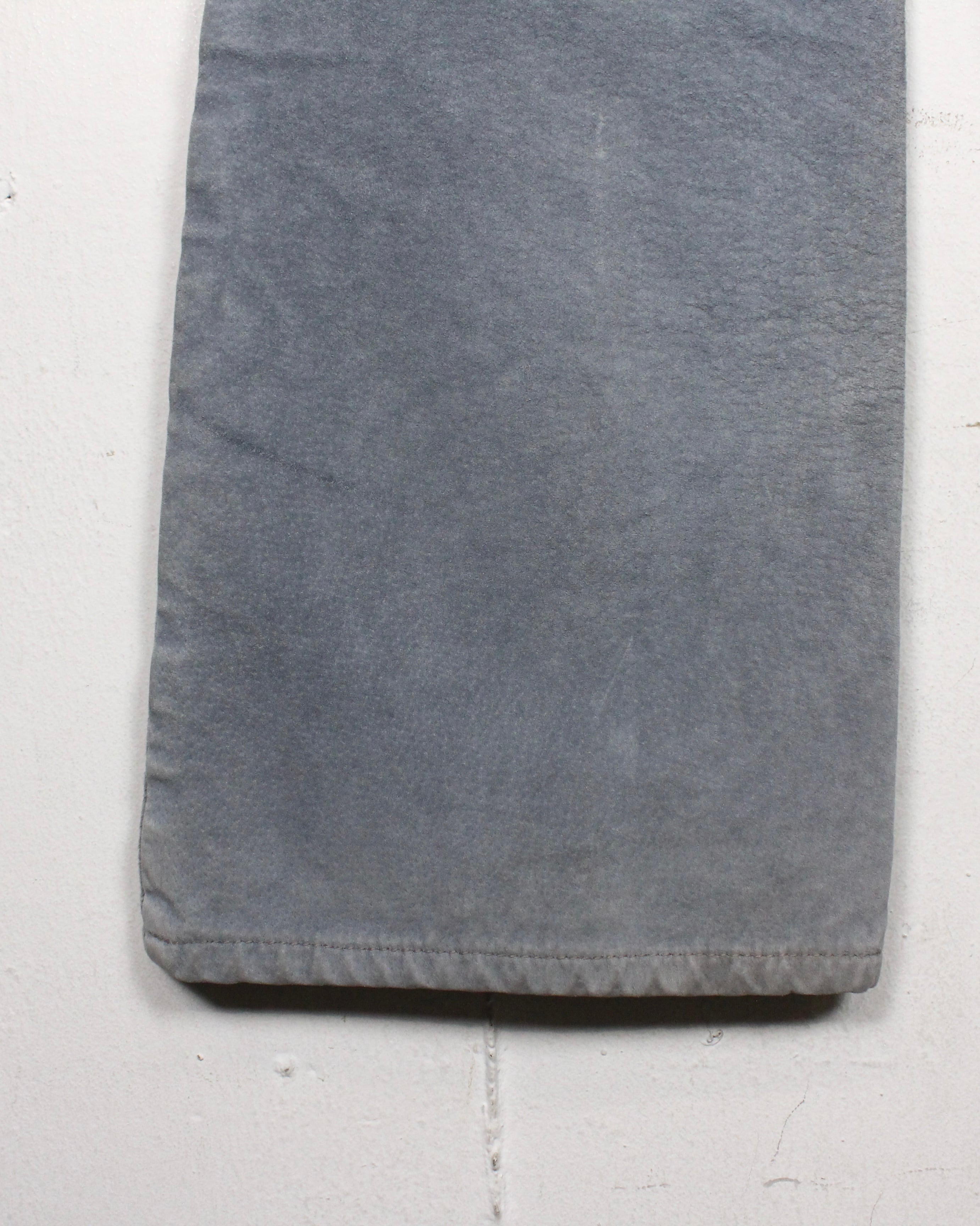 スエード素材をフルボディで使用し、ヴィンテージ特有の奥行きあるフェード感とラグジュアリーな質感を兼ね備えたフレアパンツ。