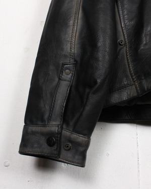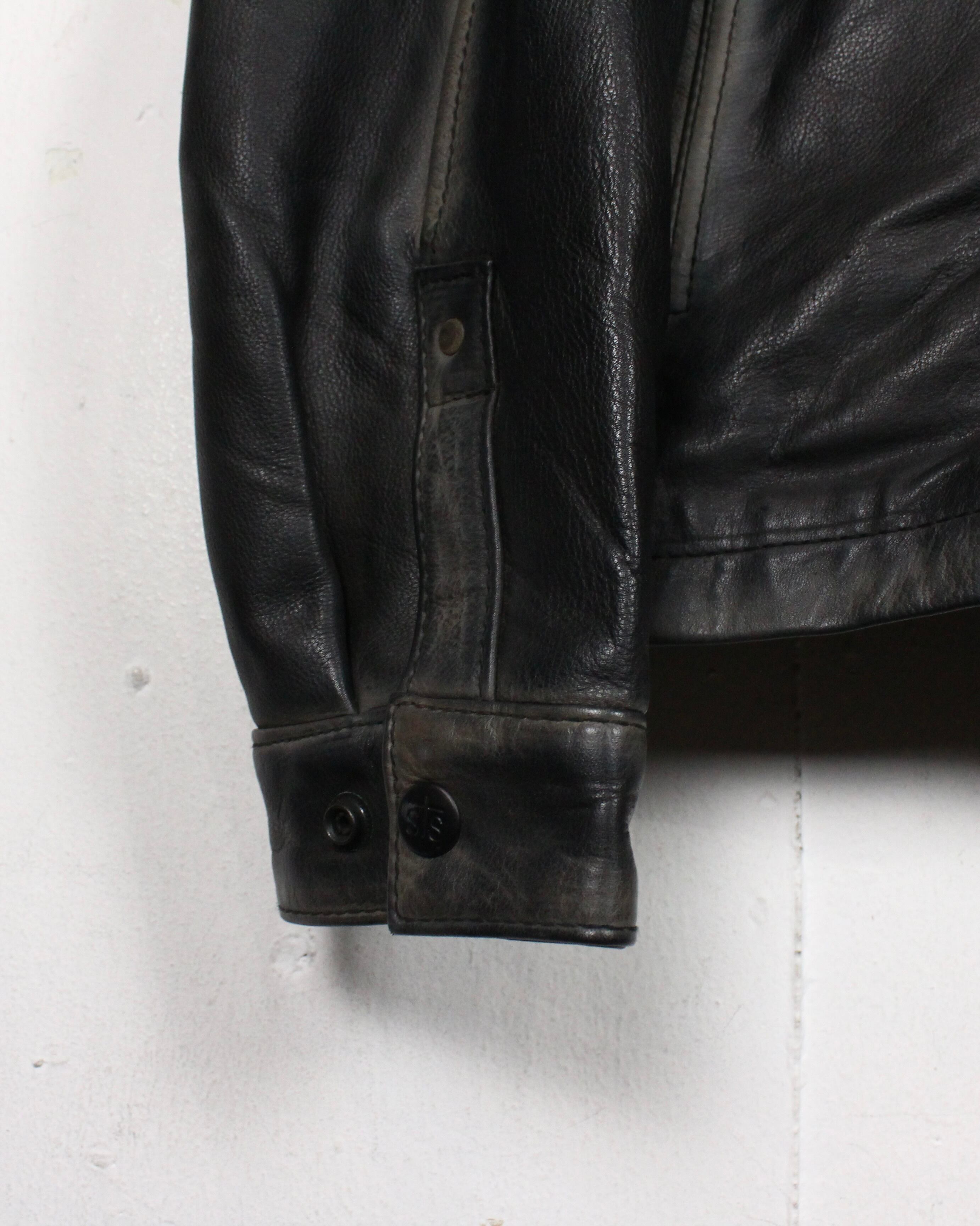 柔らかく馴染んだリアルレザーは、フェード加工のグラデーションによって奥行きを生み出し、古着としての美しさを最大限に引き立てています。ショルダーやアームの程よいボリューム感も秀逸で、ストリートからモードまで幅広いスタイリングに対応。
