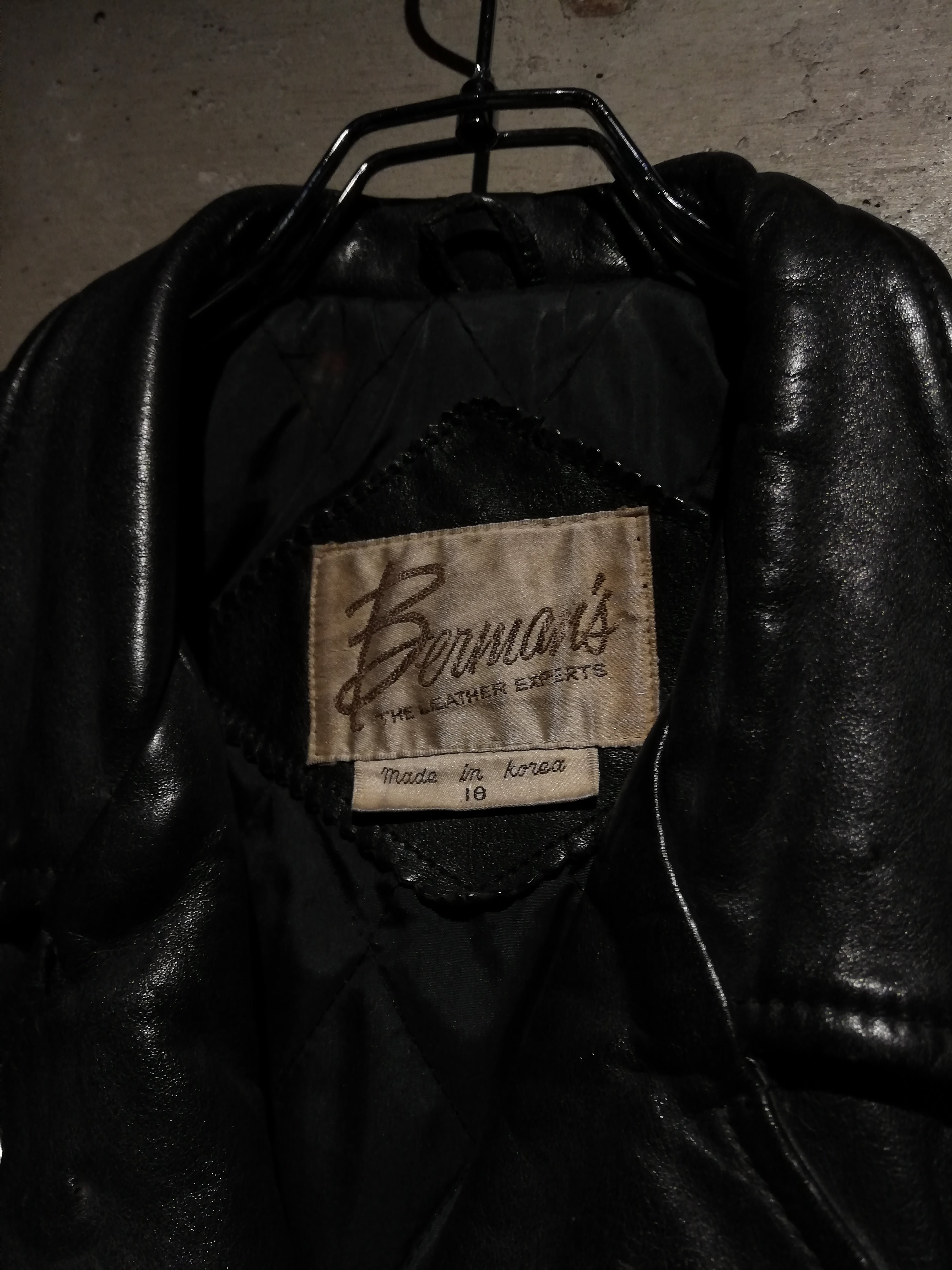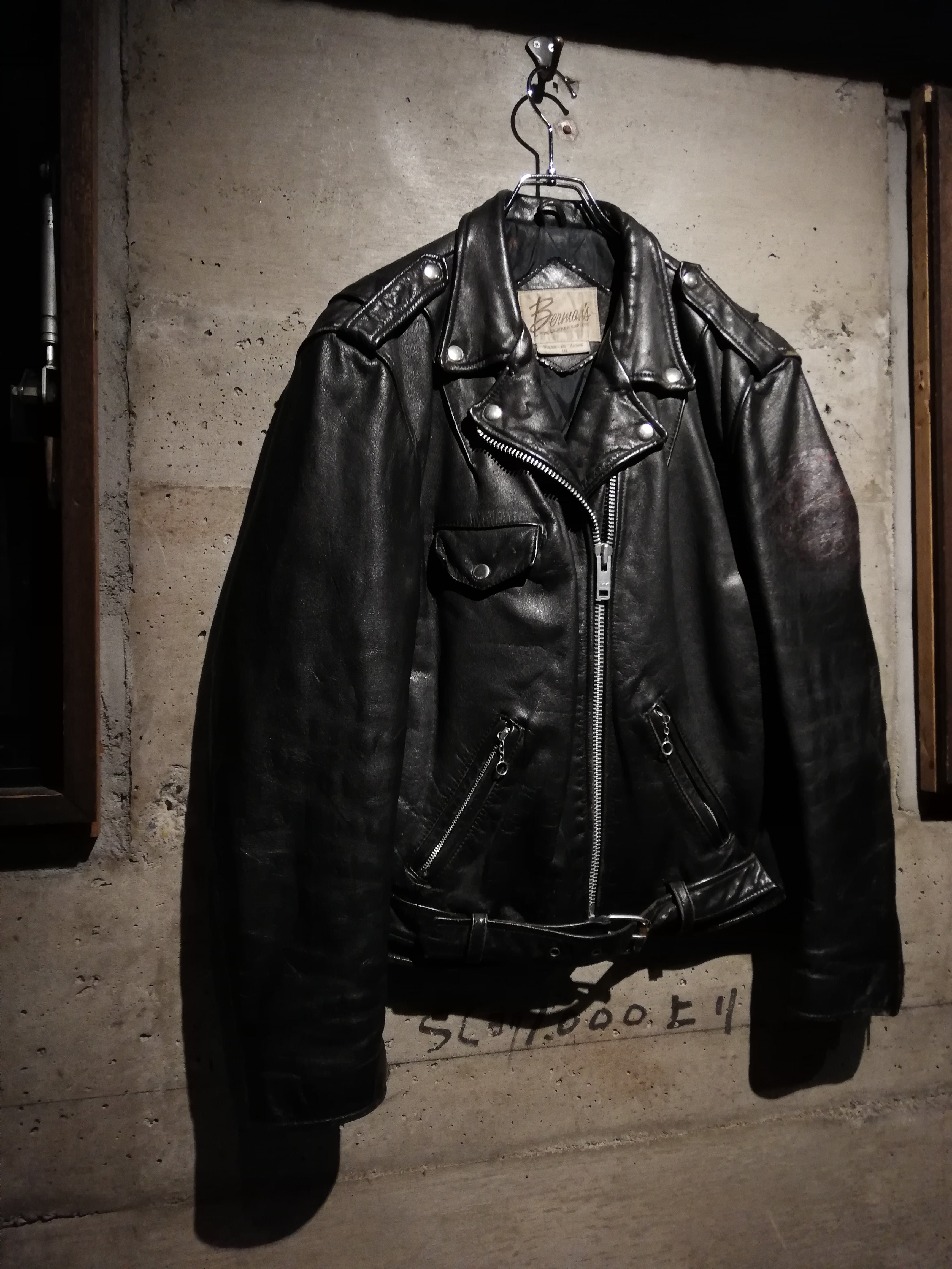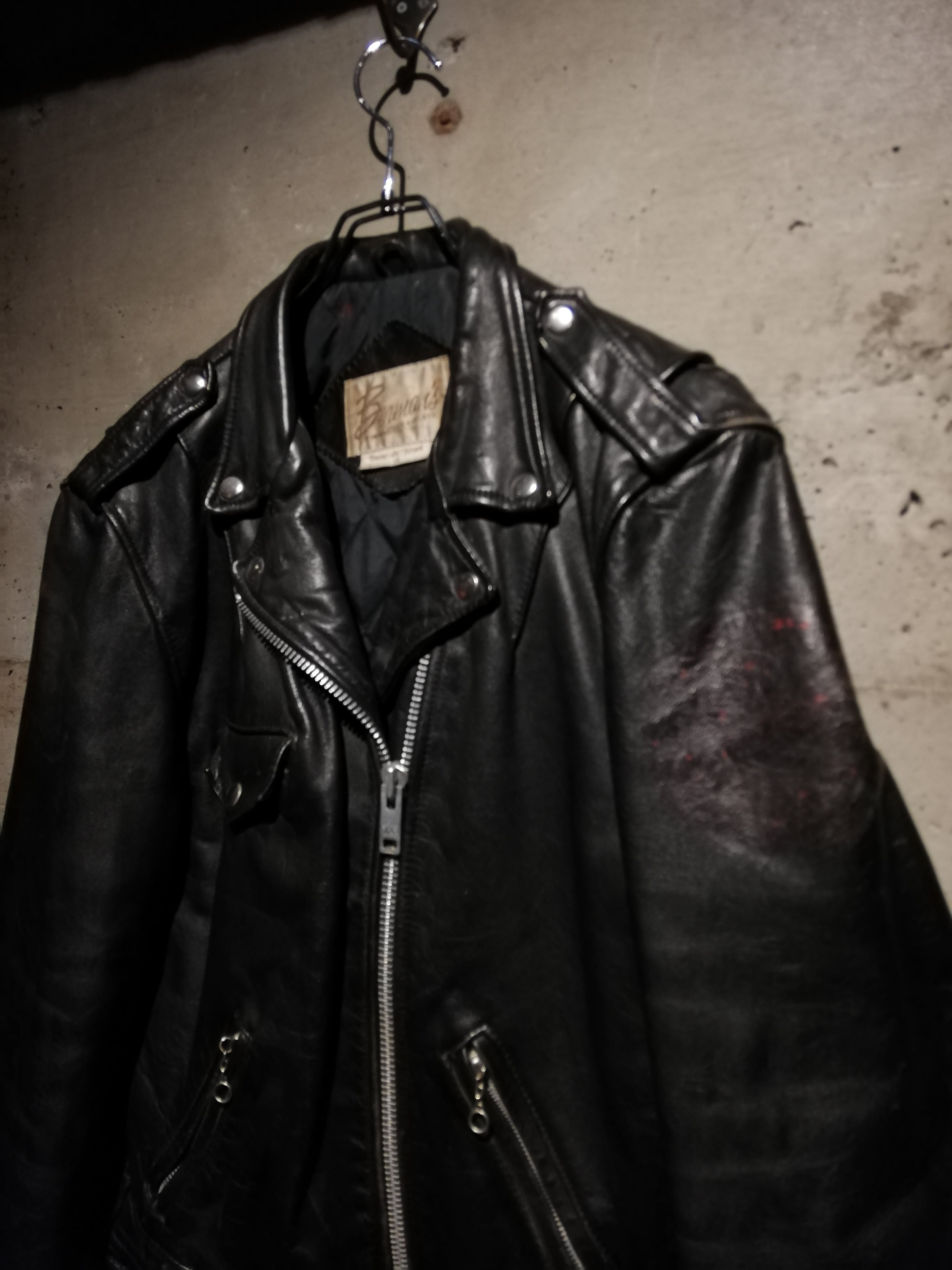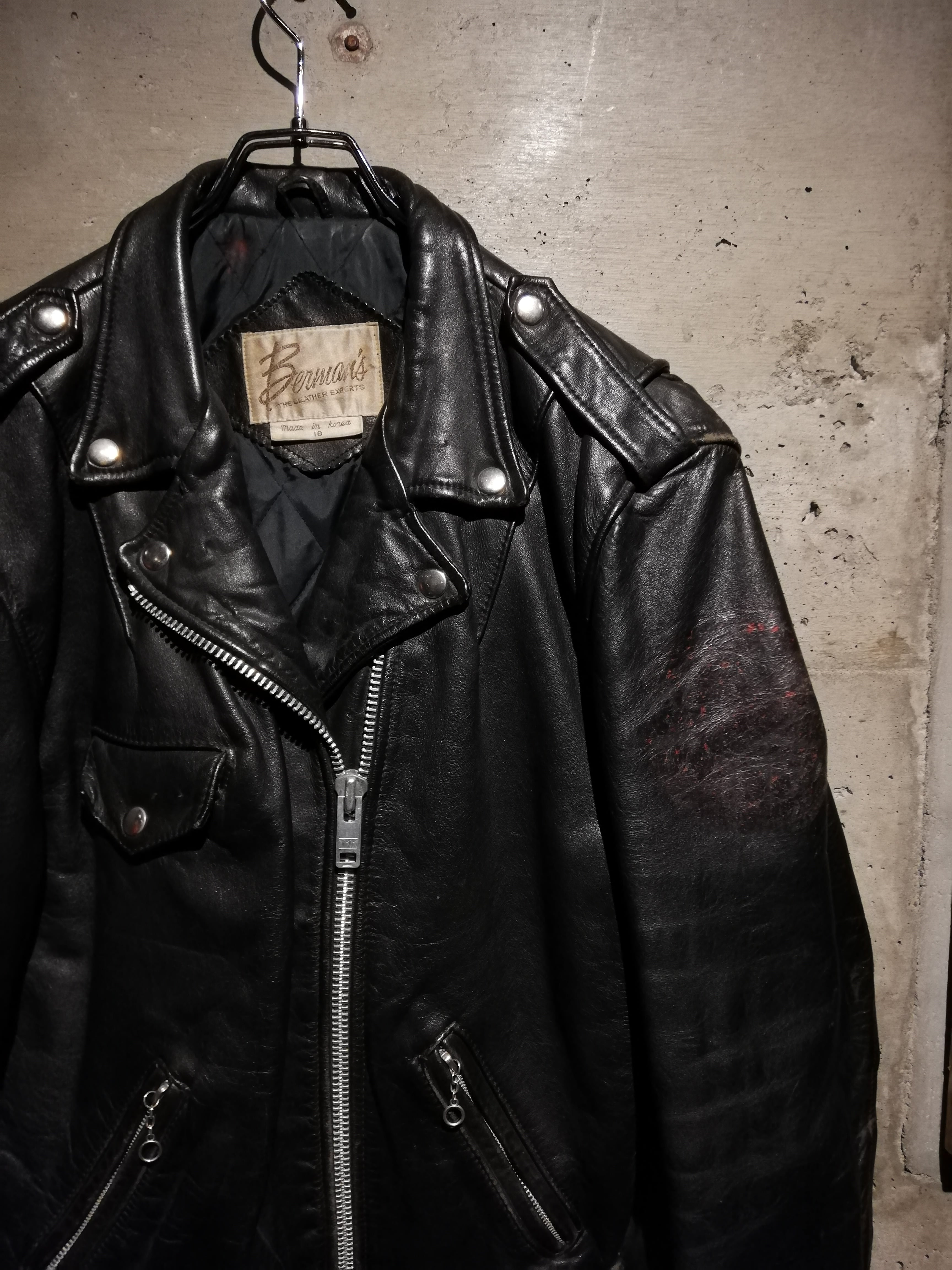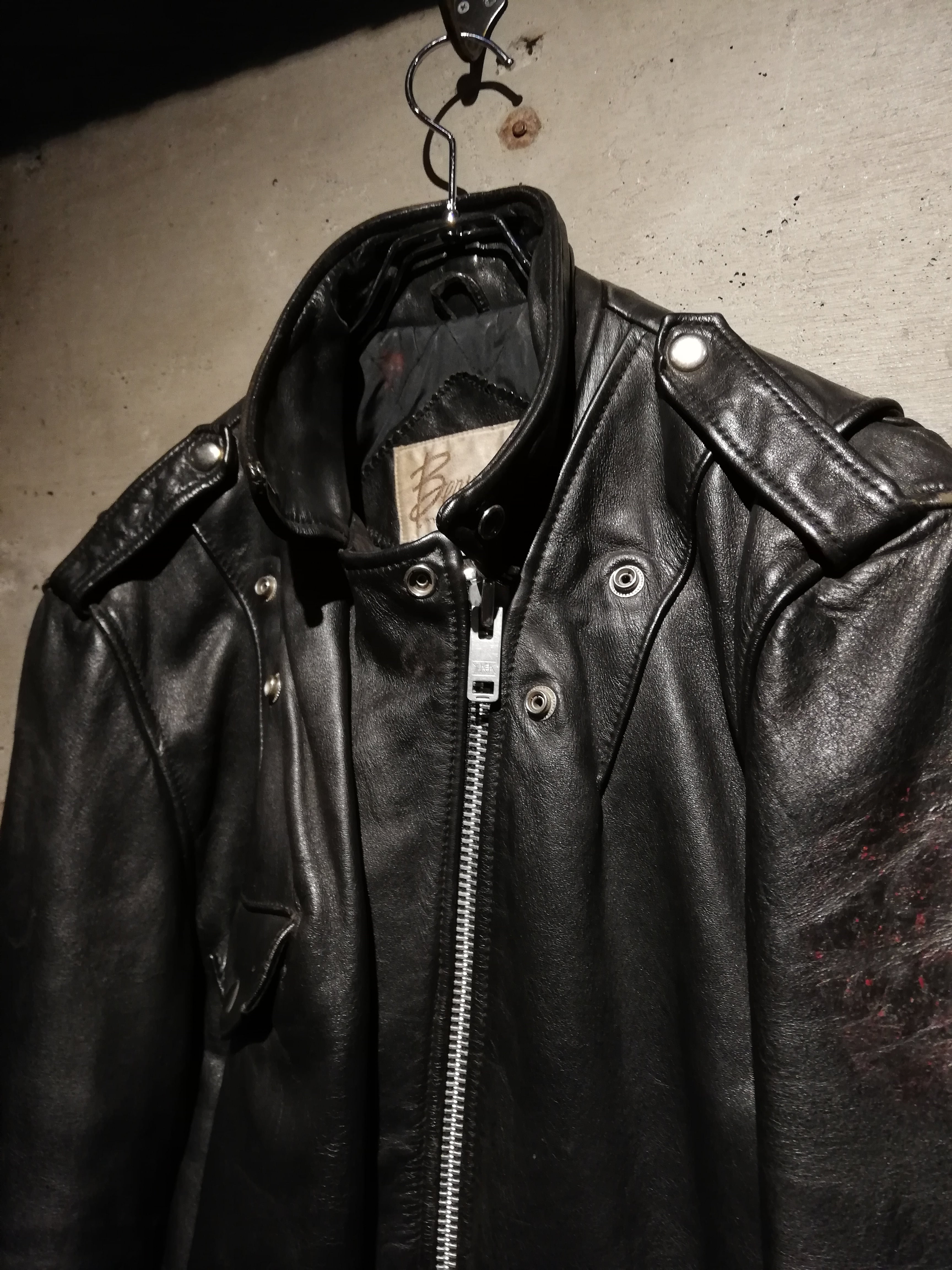 1960〜80年代にかけてアメリカで数多くのレザープロダクトを手掛けた老舗、“Berman’s”。確かな縫製技術と質実剛健なつくりで知られ、リアルバイカーからストリートまで幅広い層に愛されてきたブランドです。こちらはそのBerman’s製のヴィンテージライダースをベースに、当時のオーナーがハンドペイントを施したスペシャルな逸品。