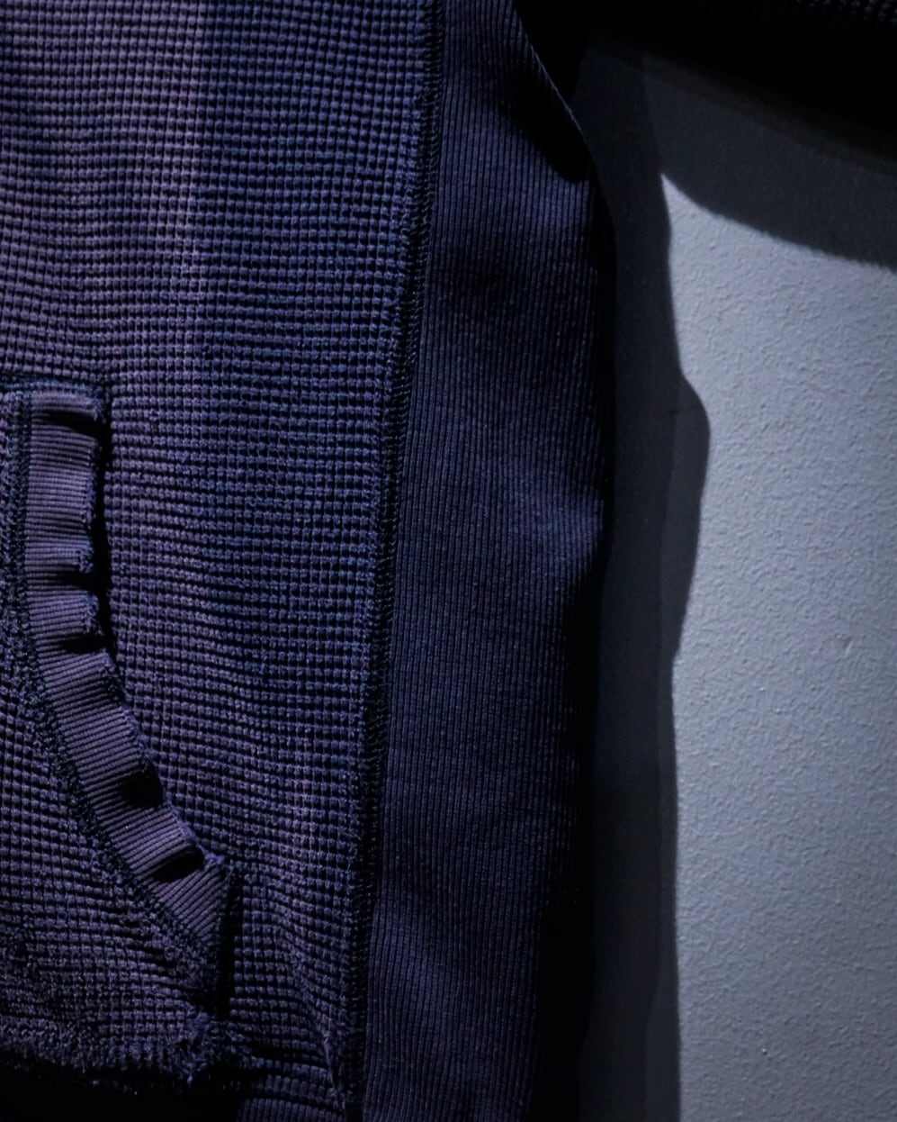 全体に強くサンフェードがかかった1着。深みあるチャコールグレーからブルーグレーへと変化した絶妙なトーンに仕上がっています。長年の着用を経たことで生まれたボロ感と色の抜けが、この一着にしかないリアルな空気を漂わせる仕上がりに。