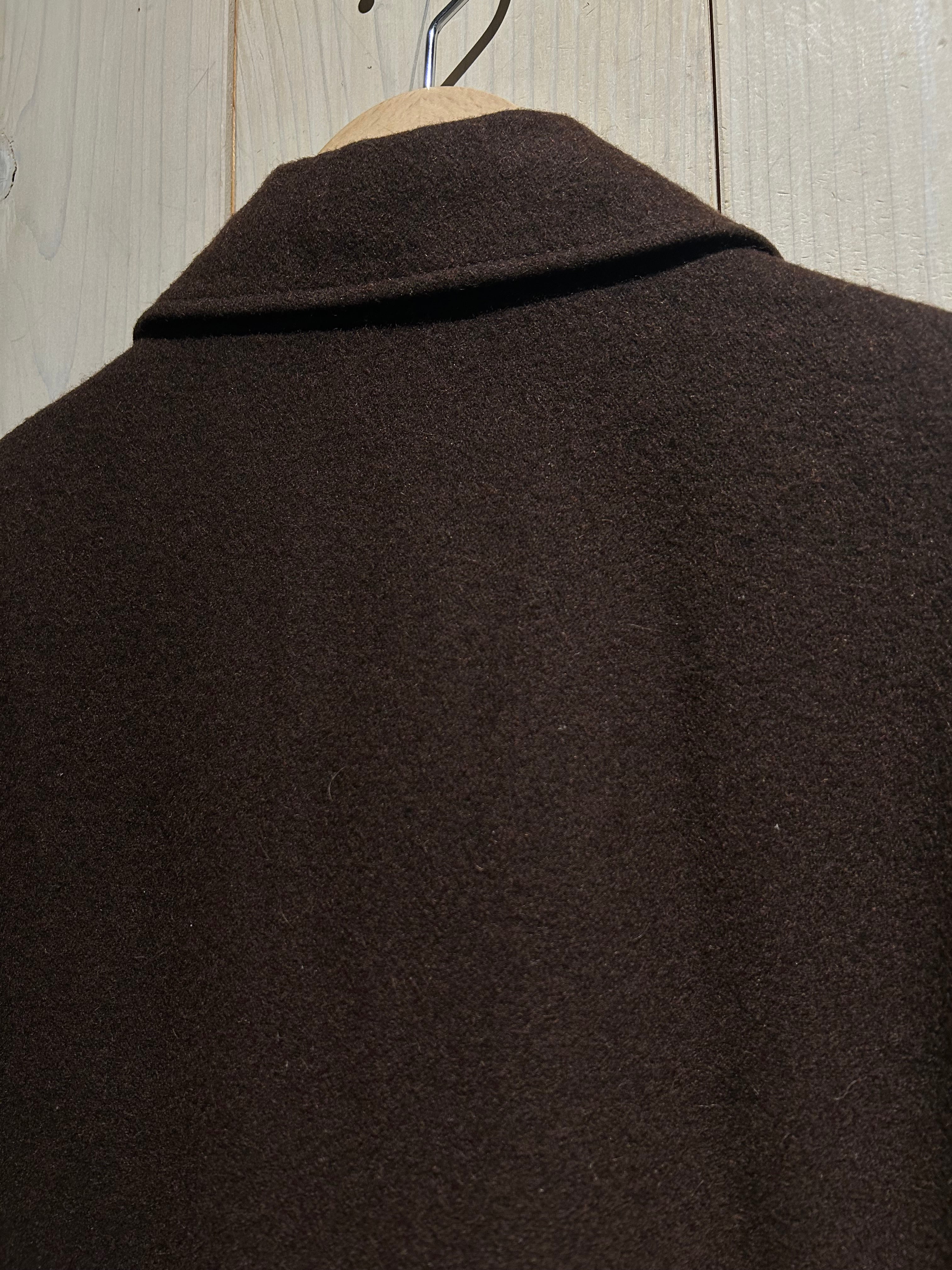 デザインはあくまでシンプルに、ショートレングスのボディバランスとストレートなシルエットで構成。襟付きのブルゾンタイプ。深みのあるダークブラウンカラーが落ち着いた雰囲気を纏い、インナーとのレイヤードでも調和の取れたスタイルを構築。
