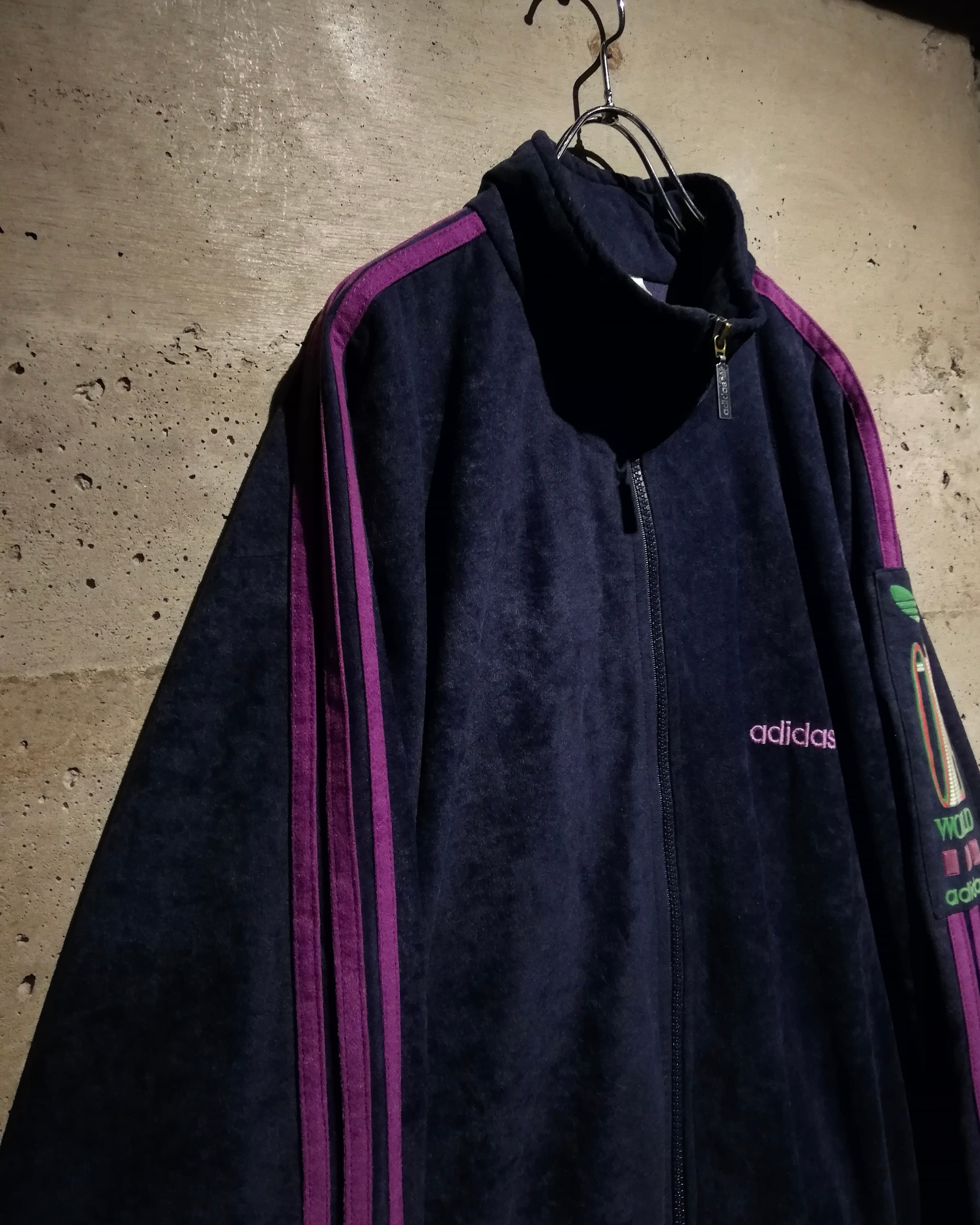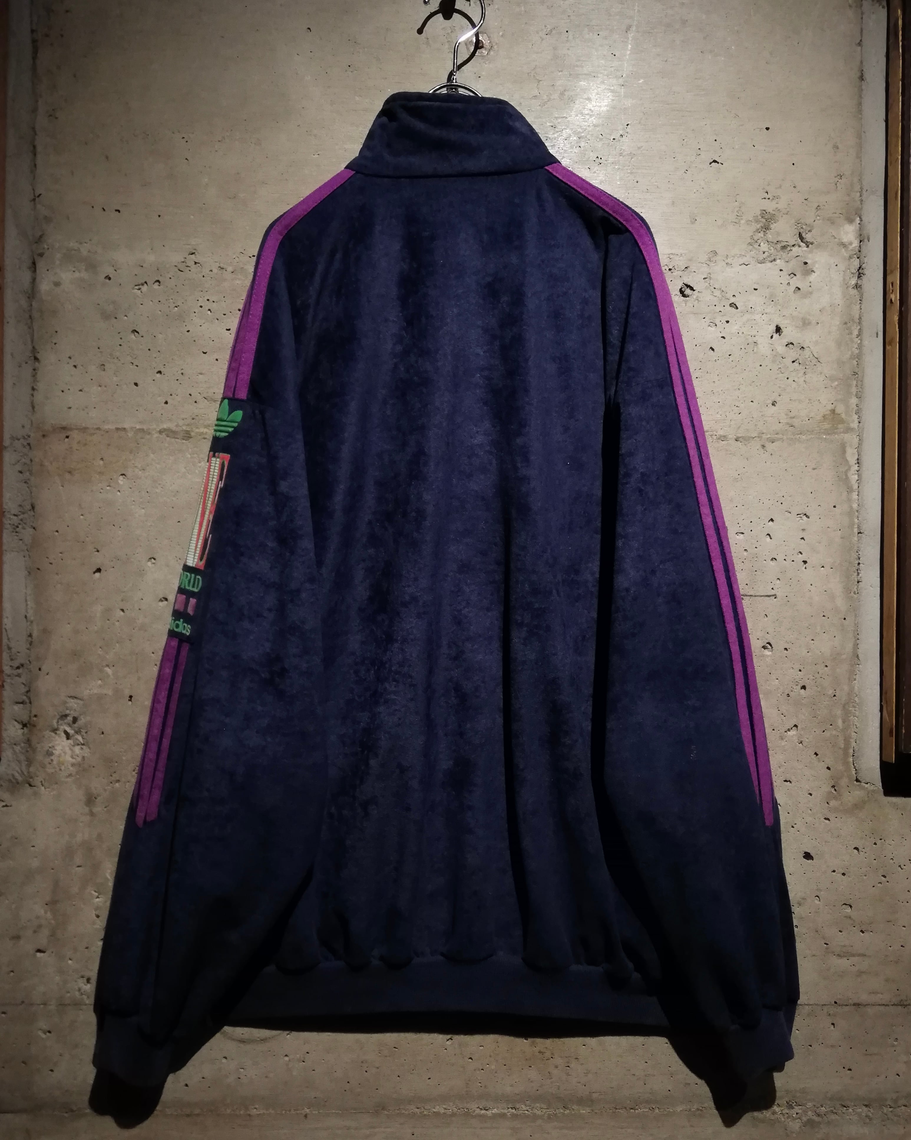 稀少なルーズなサイジング、ハイネックのジップアップデザインに、リブで締まる裾と袖口のコントラストが生み出す立体的なフォルムも特徴的です。着用時の丸みあるフォルムとドレープ感が際立ち、ヴィンテージadidasならではの存在感がたまりません、、