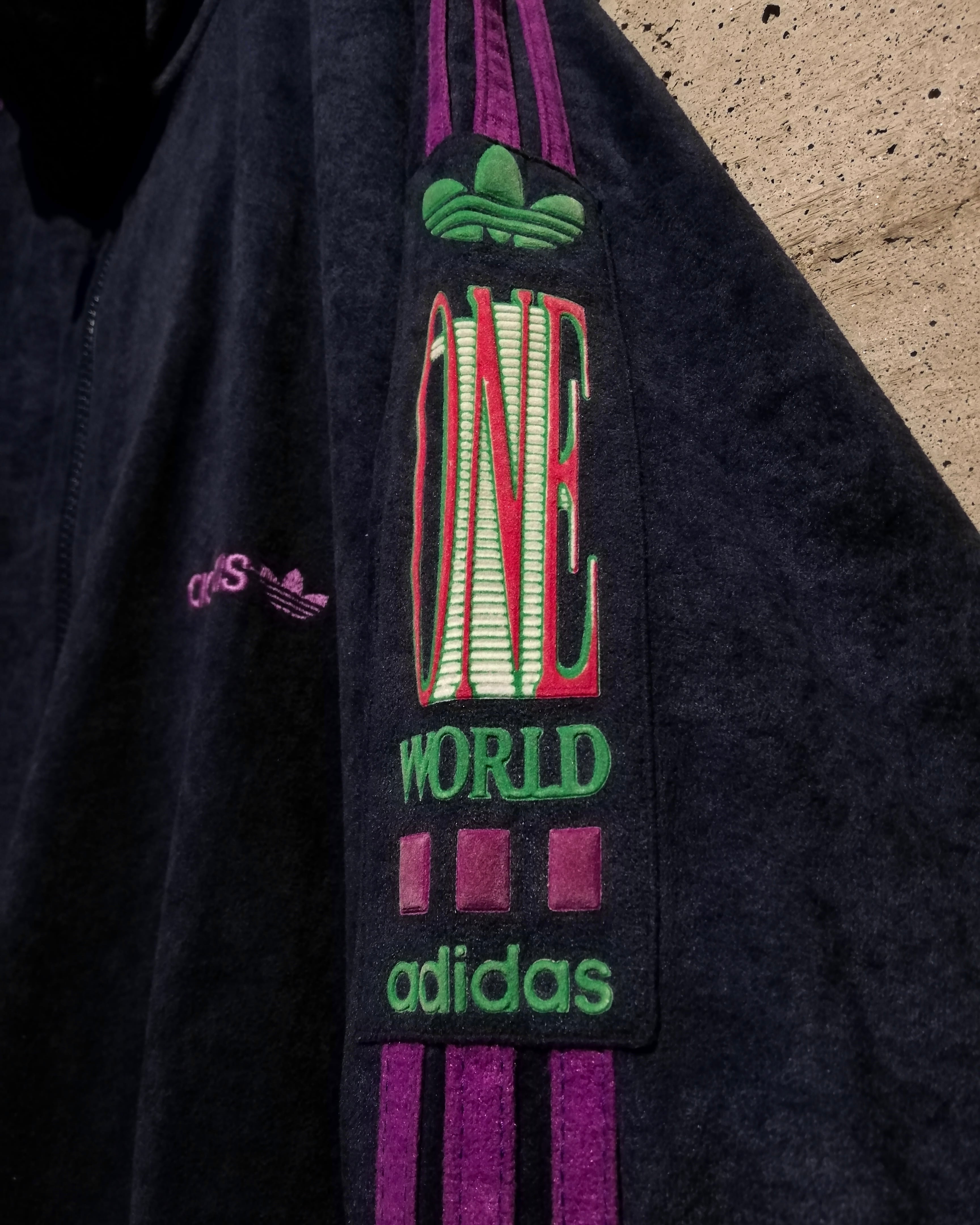 左胸には定番のトレフォイルロゴ刺繍、そして左袖には“ONE WORLD”のグラフィックをオン。スポーツウェアを超えた、高いデザイン性を誇ります。