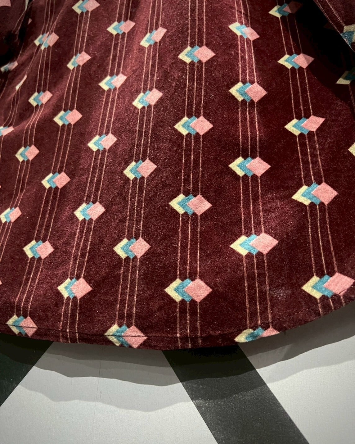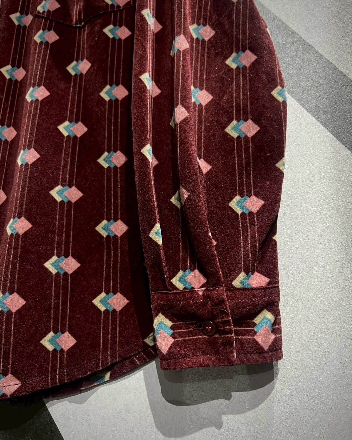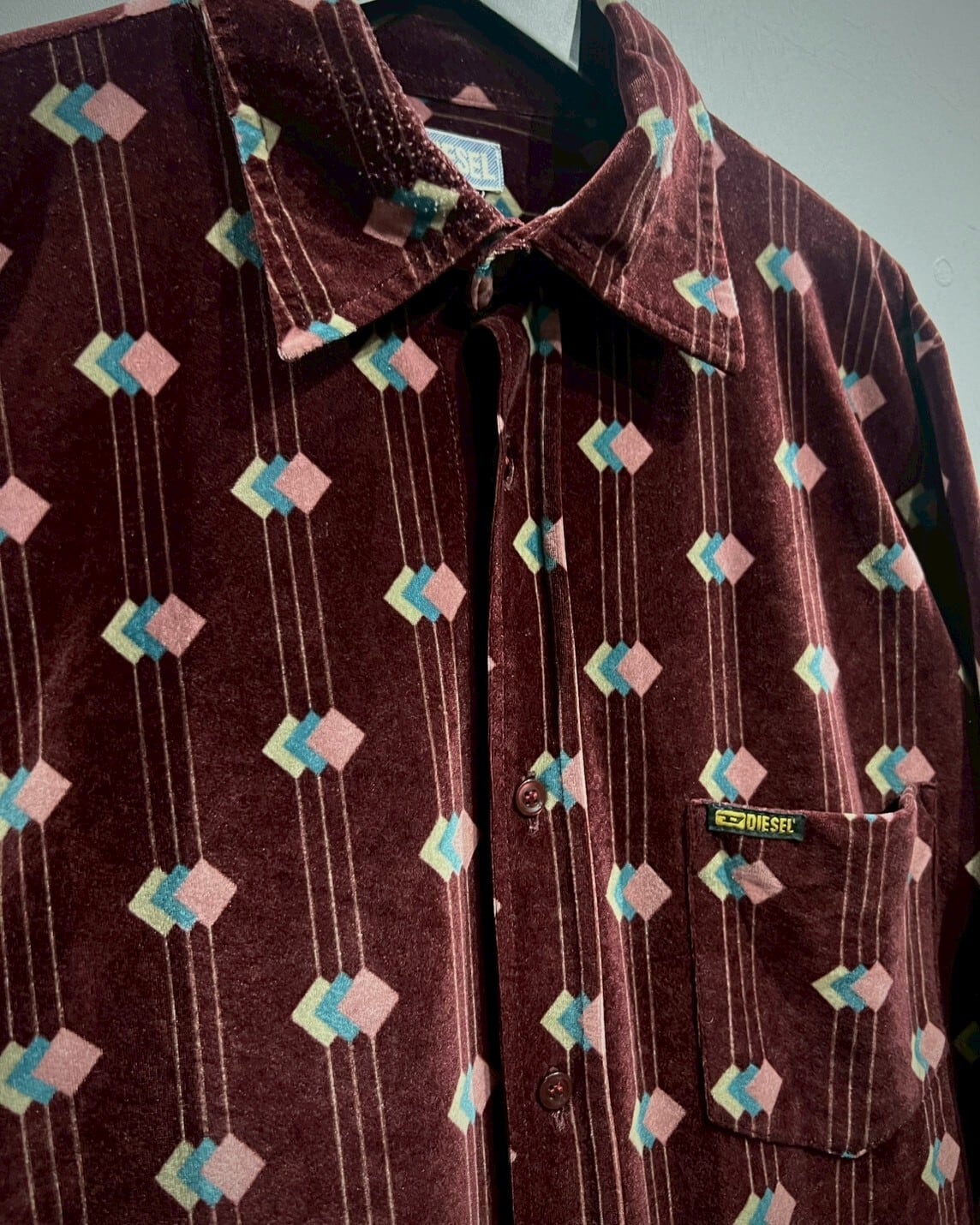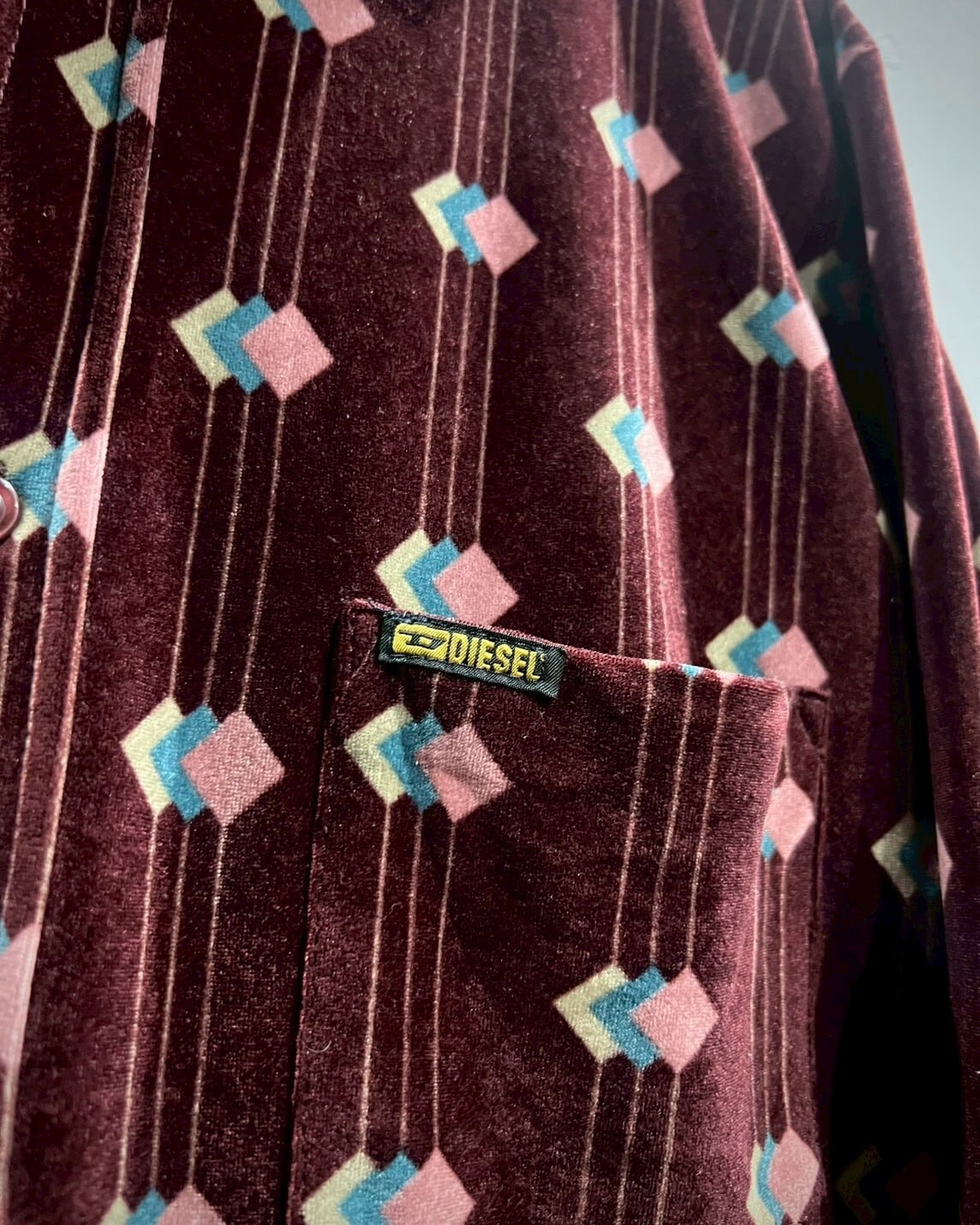ベロア特有のラグジュアリーさと、幾何学パターンが醸すレトロモードな雰囲気が融合した、“OLD DIESEL”のスペシャルピースです。