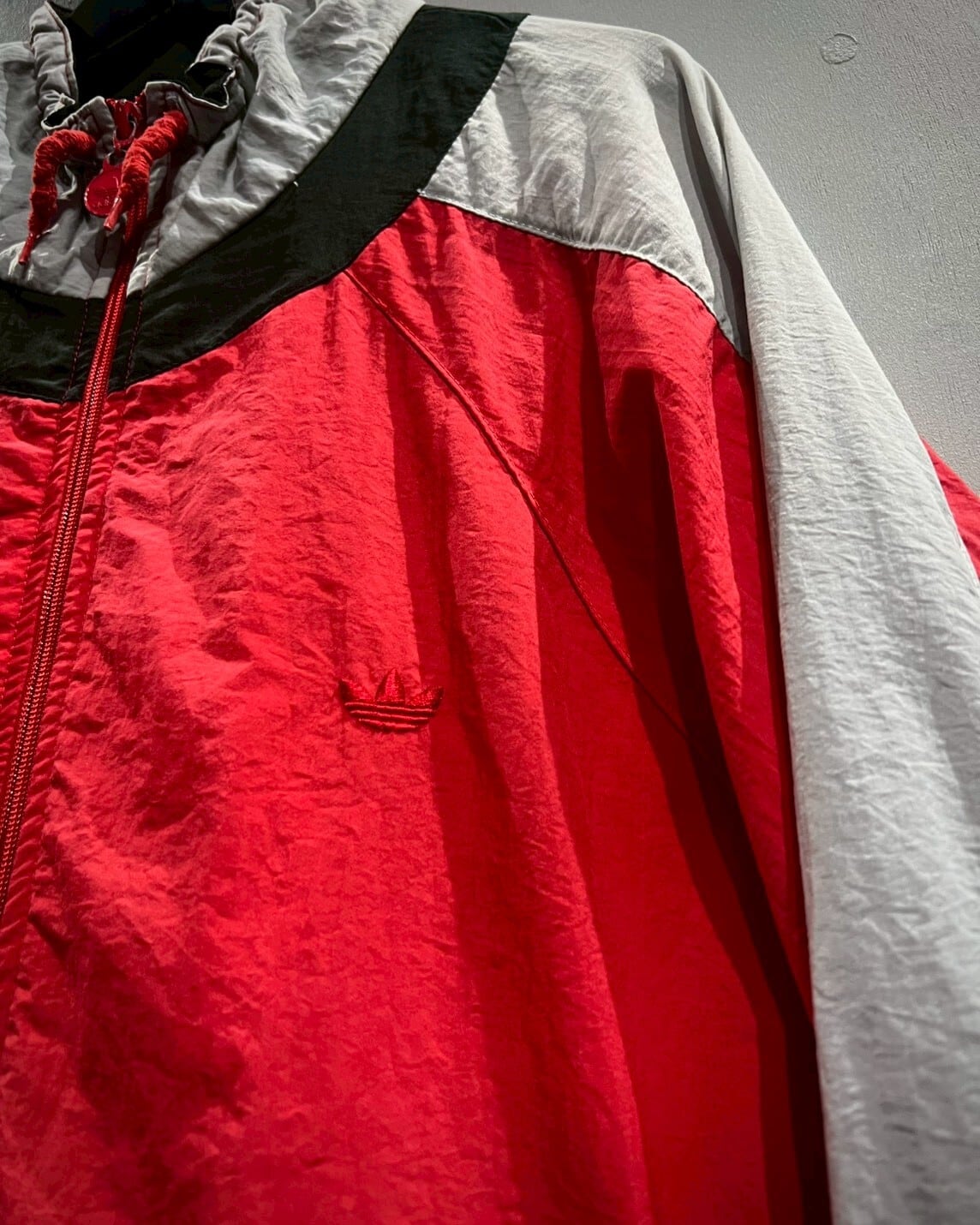 80’s adidas特有のデザインと存在感が際立つ、スペシャルなナイロンジャケットです。