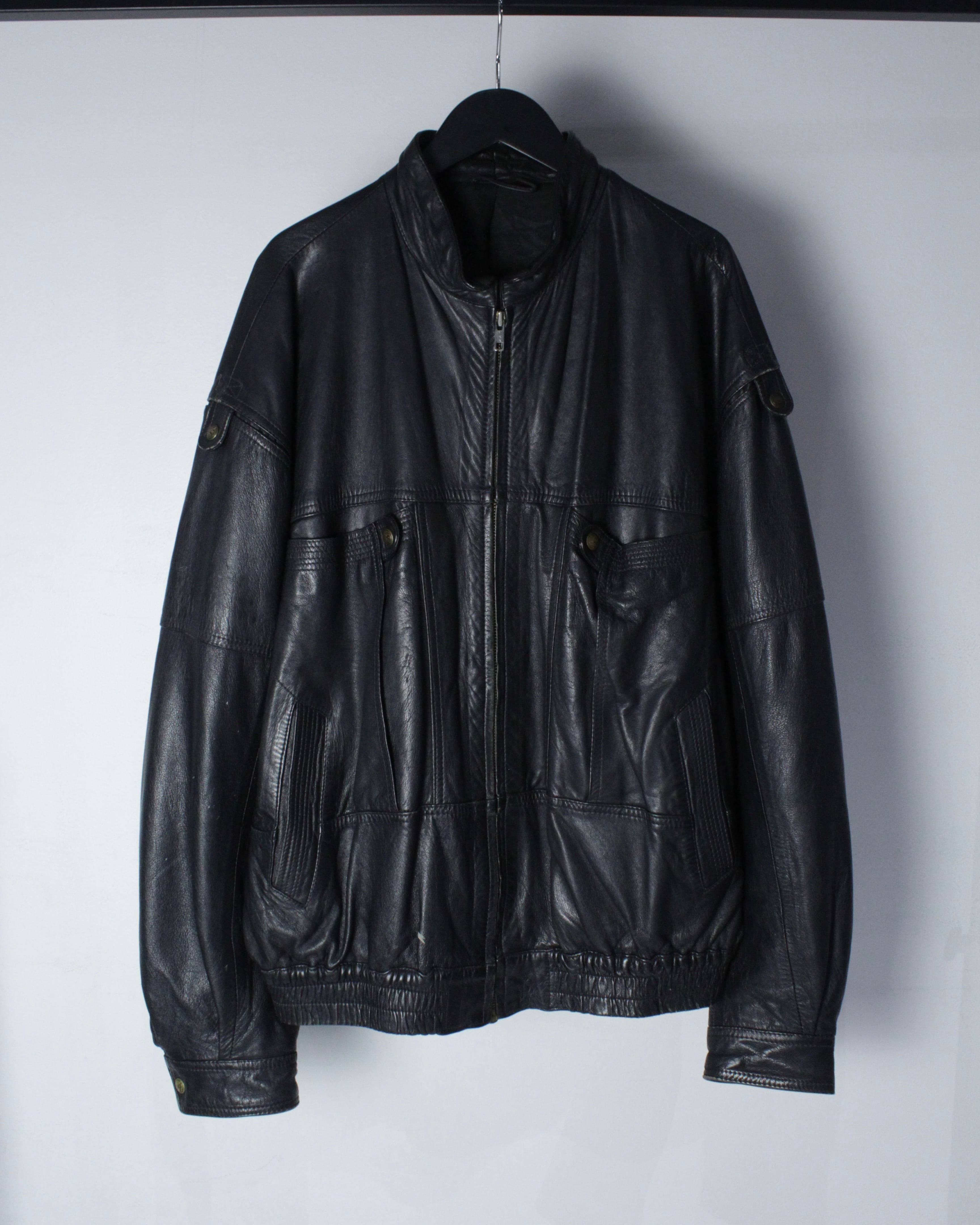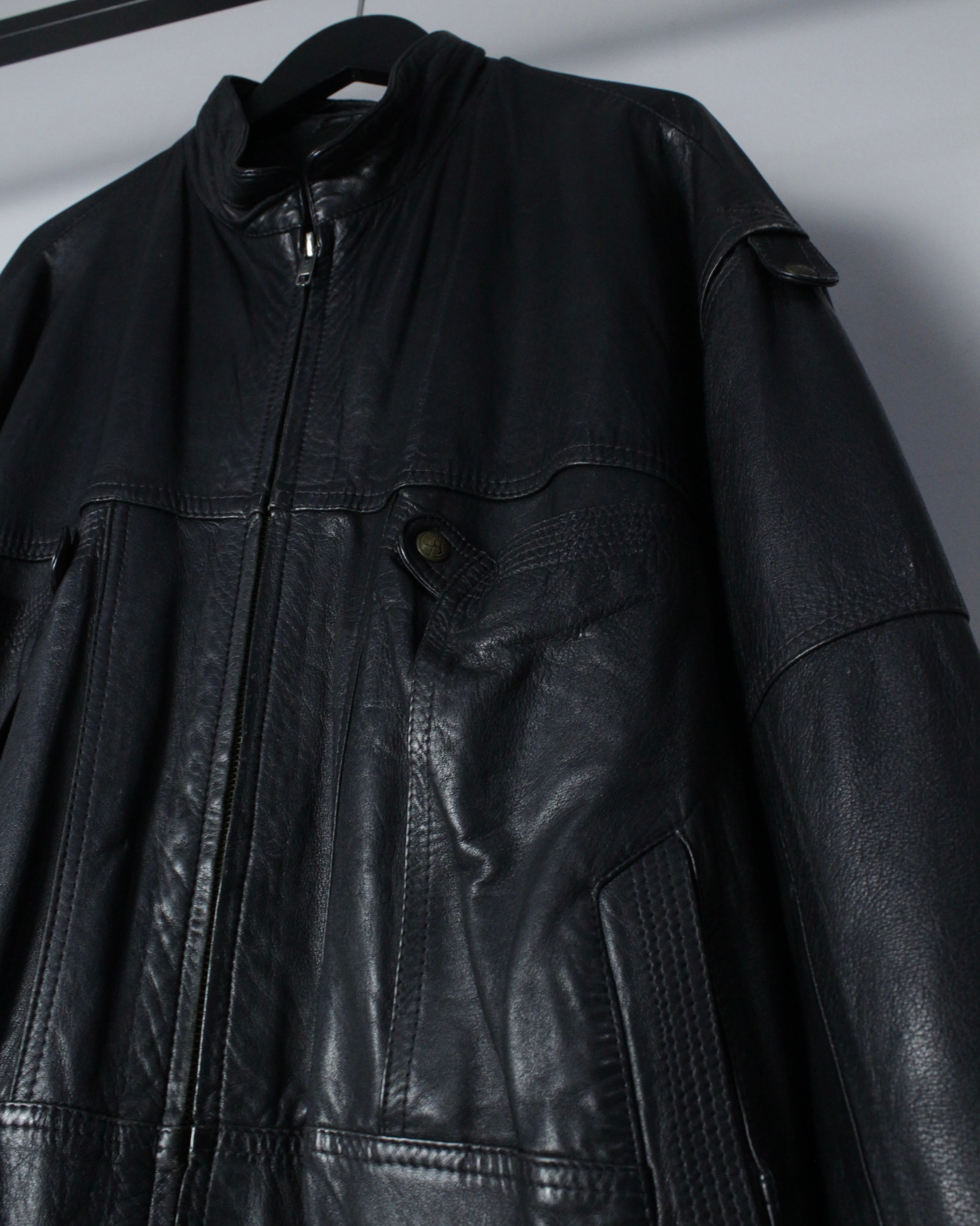 重厚な質感と滑らかな艶を兼ね備えた、スペシャルなブラックレザーブルゾン。