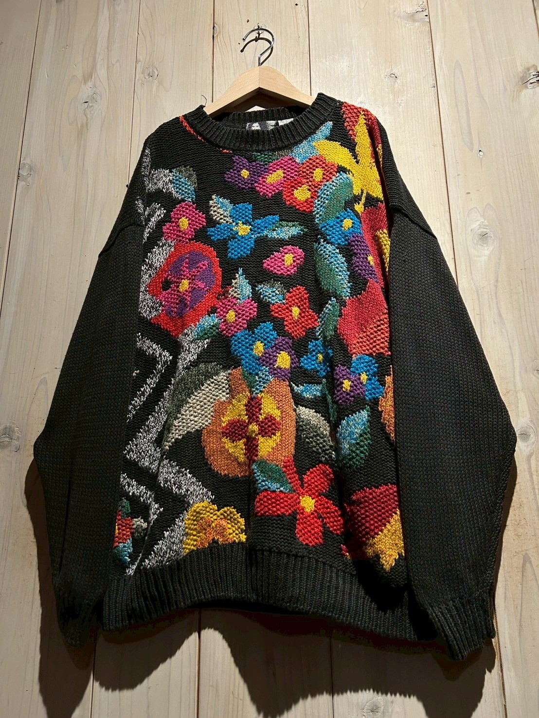 大胆なマルチカラーのフラワーモチーフが目を惹くニットの逸品。