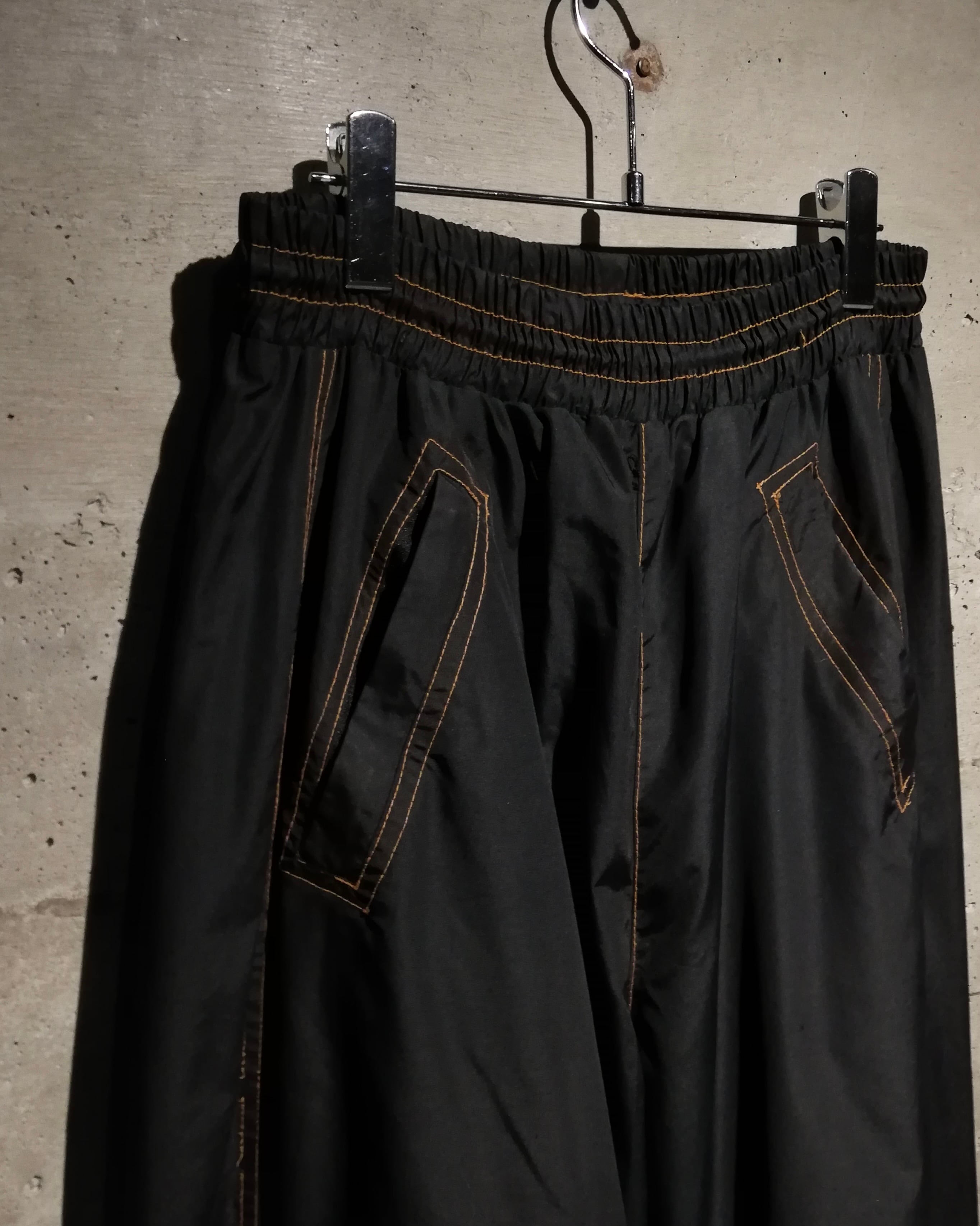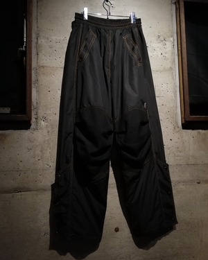深めの股上と膝下の立体的なパターンワークにより、動きのあるワイドなシルエットをを演出。裾のスナップボタン×ジップによって、シルエットにアレンジを加えた着こなしもお楽しみいただけます。