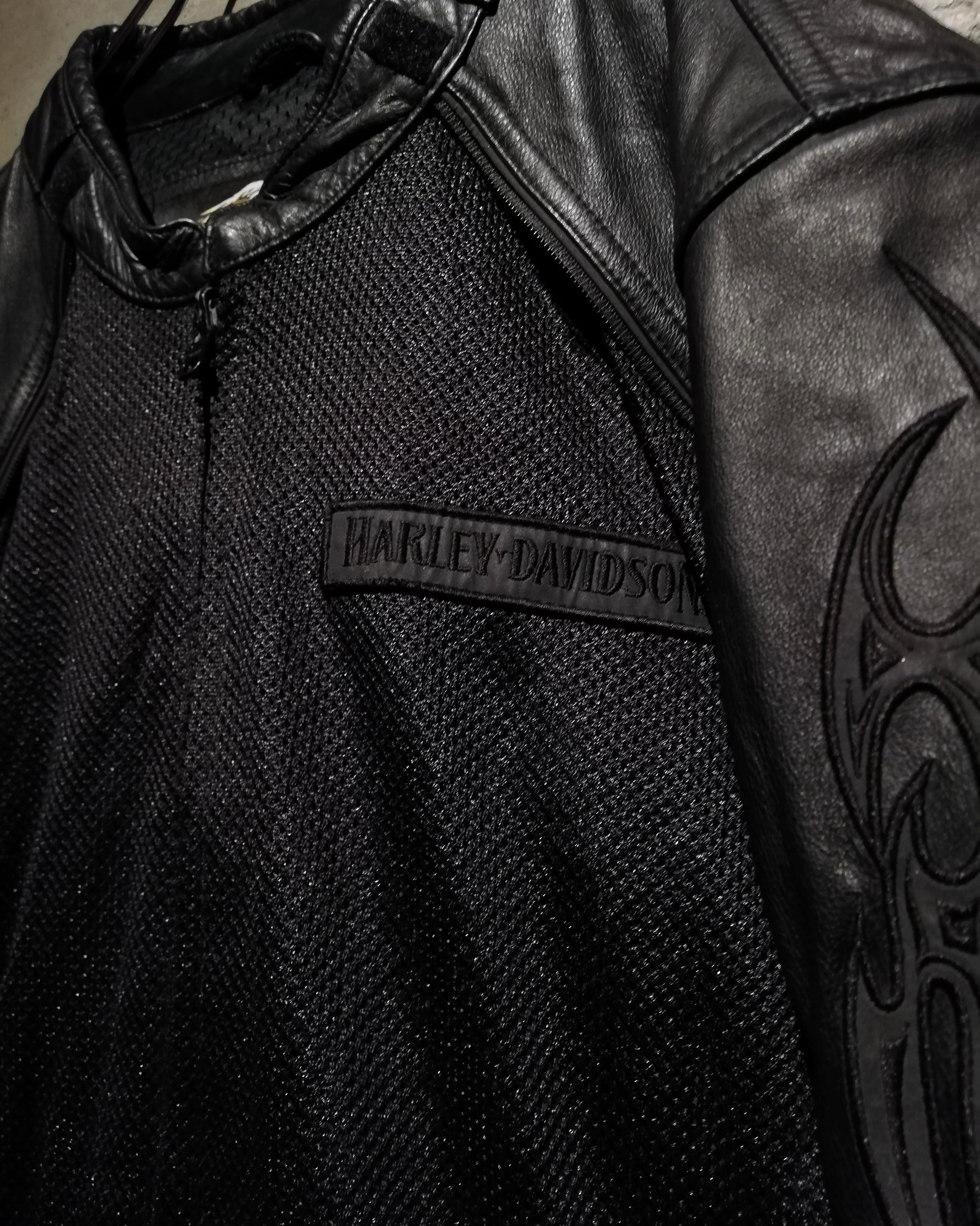レザーの重厚感とメッシュの軽快さを自在に切り替えられる、機能美とデザイン性を兼ね備えた傑作。当店が厳選した中でも群を抜く完成度を誇る、スペシャルな1着です。