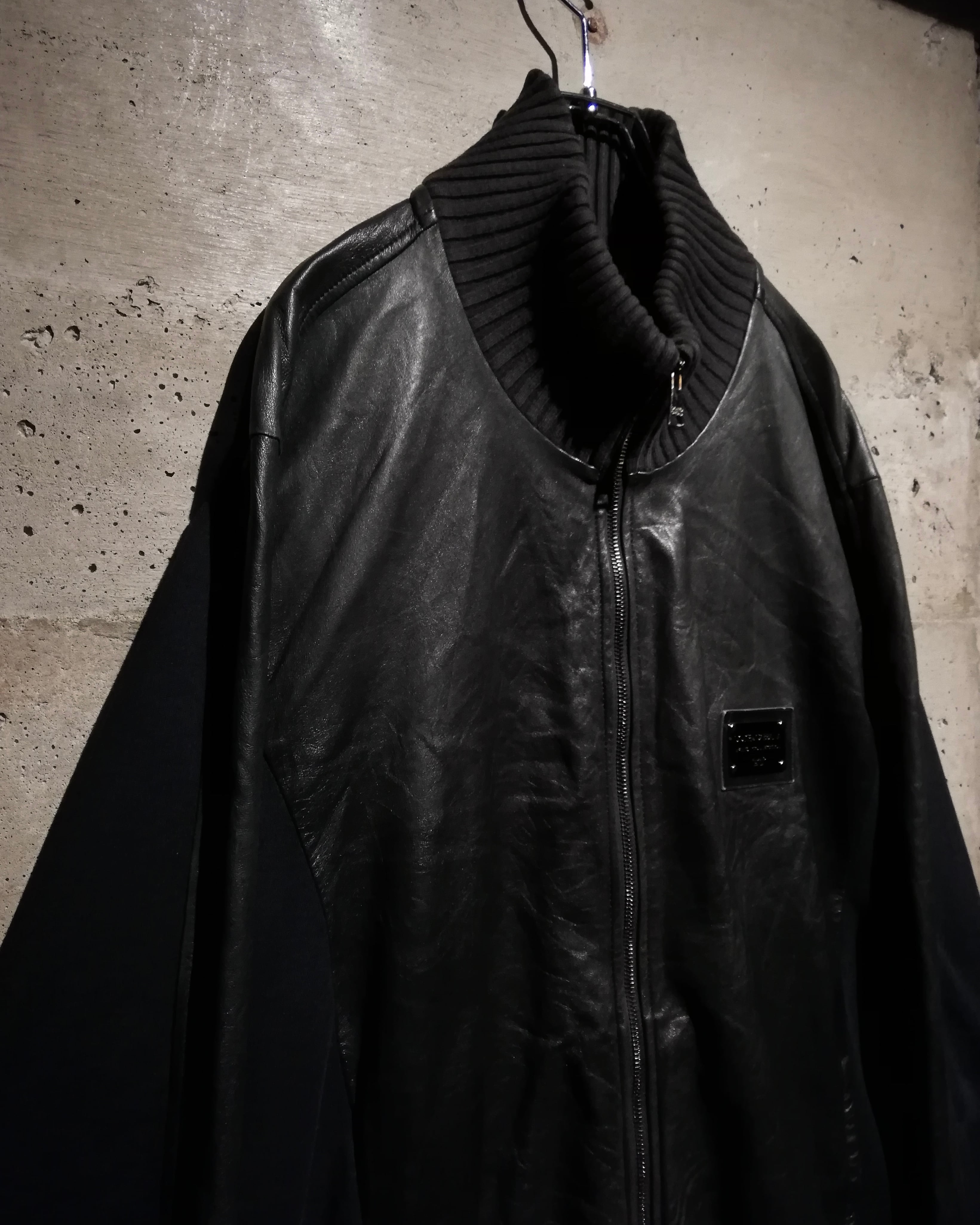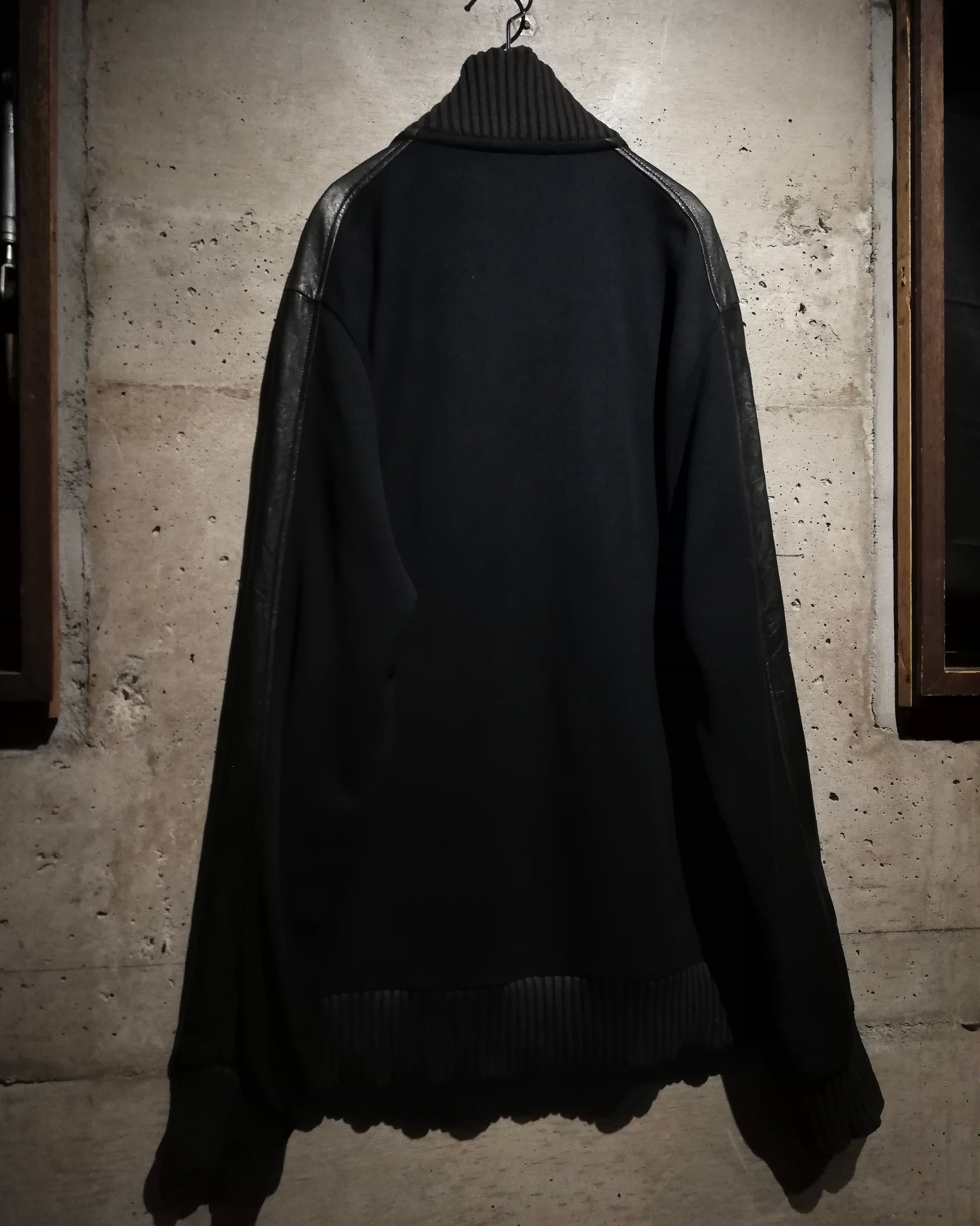 袖、後身頃はスウェット生地、ネックや袖口、裾は立体感のあるリブニットで切り替えることでレザーの重厚さを軽やかに中和させた、デザイン、クオリティ共に最高峰の完成度を誇る一品です。