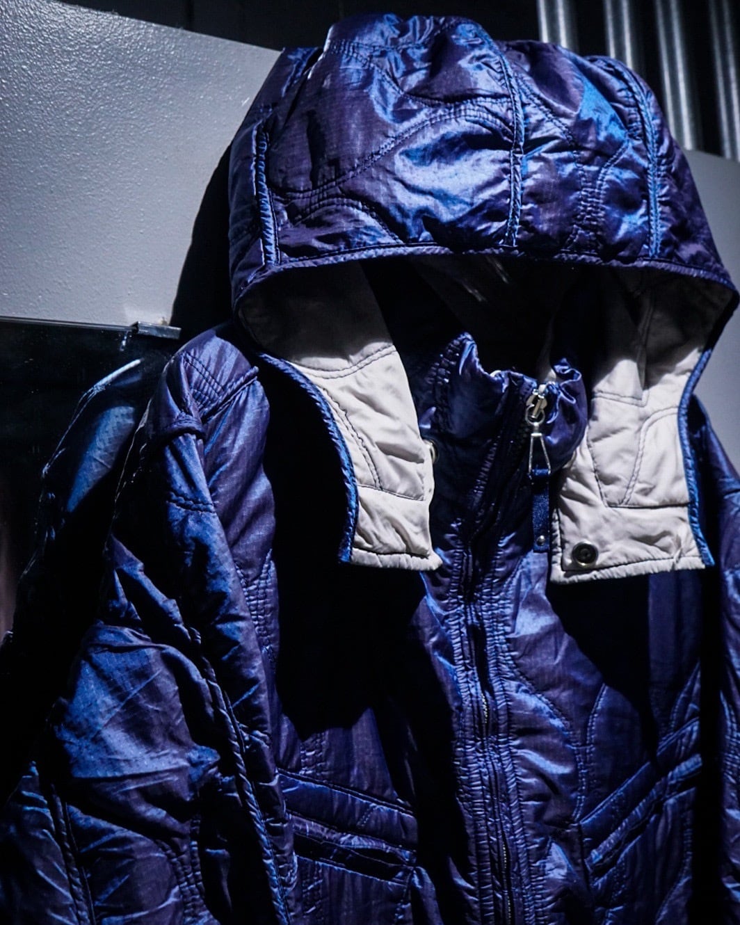 アルプスを拠点とするブランドならではの機能美を、都会的な洗練さの中に落とし込んだ1着。滑らかな光沢を放つメタリックブルーのナイロンボディが印象的で、照明や角度によって色味が微妙に変化する表情豊かな玉虫カラーが魅力です。