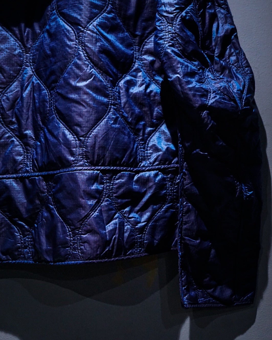 表地には軽量ながらも高密度なナイロンを採用し、上品な艶とハリを持たせることでラグジュアリーな印象を強調。中綿をたっぷりと封入したキルティング構造は、見た目以上に軽く、着用時の動きやすさと防寒性を両立しています。冬場のアウターとしてはもちろん、春先まで快適に着用できる温度調整性能を備えた仕上がり。