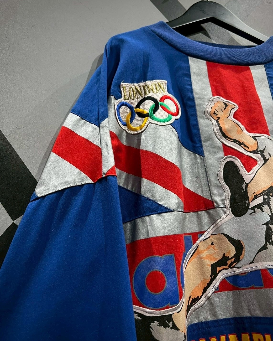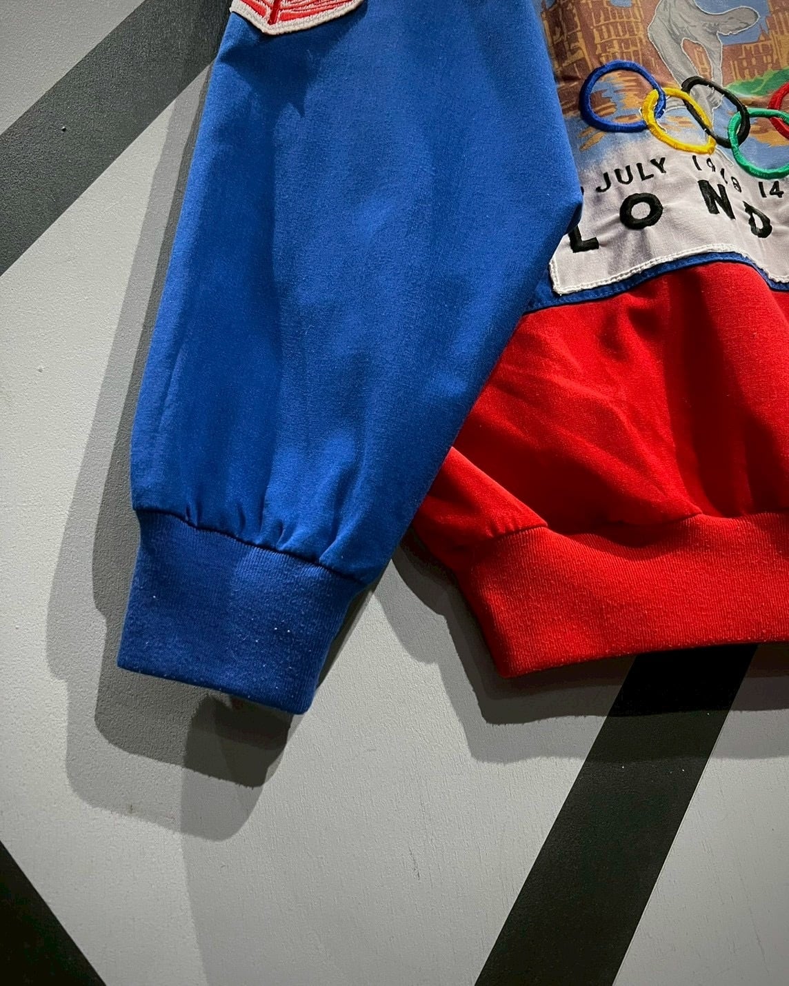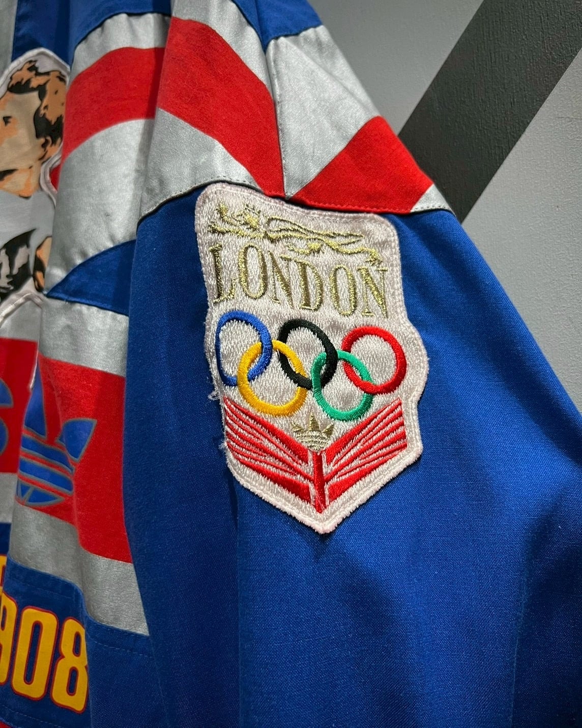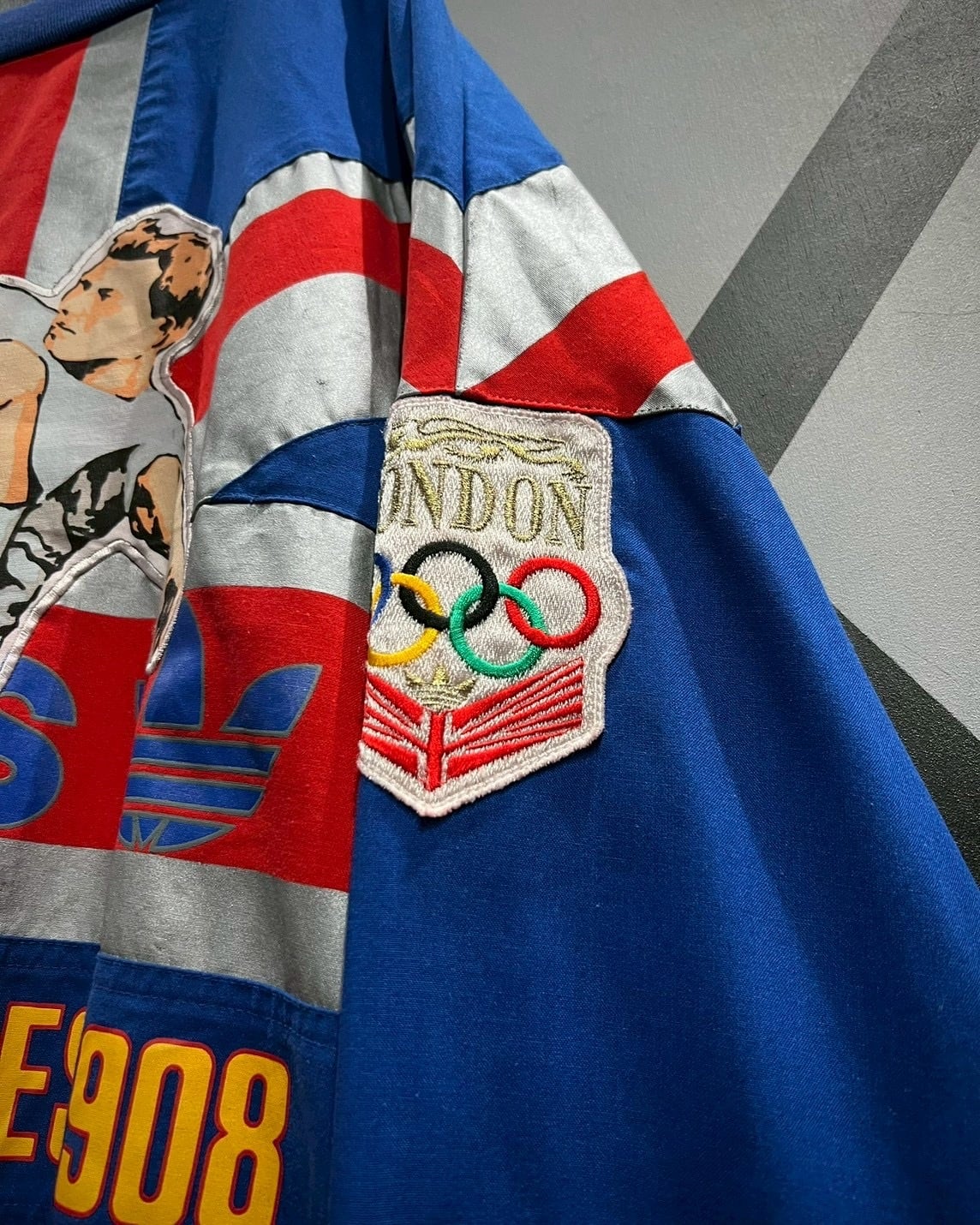ボディ全体にはユニオンジャックを大胆に配し、中央にはアスリートの躍動を描いたパッチを配置。背面には1948年ロンドン大会の記念グラフィックパッチ、両袖や背面には五輪と“LONDON”刺繍ワッペンが施され、存在感を余すところなく表現しています。