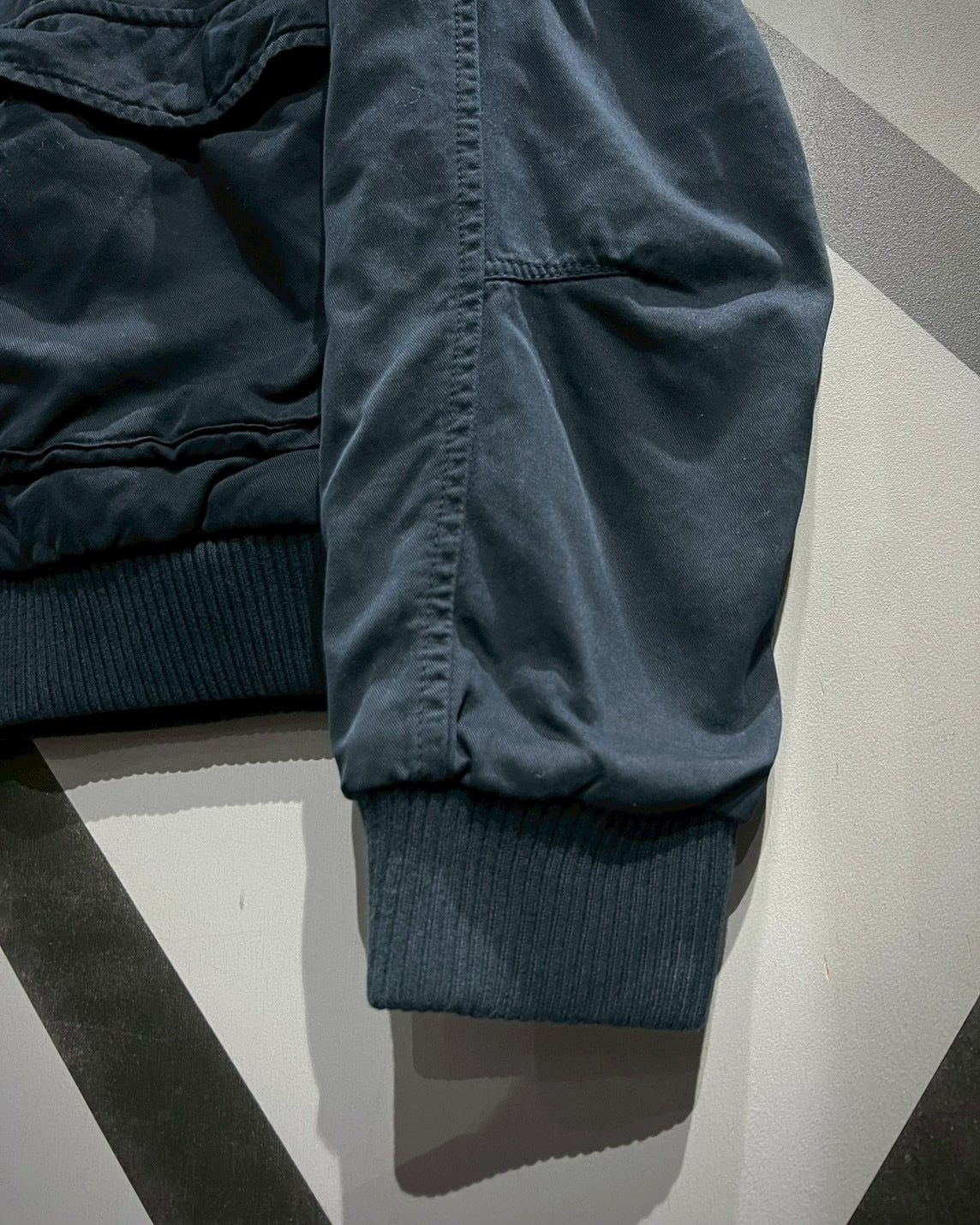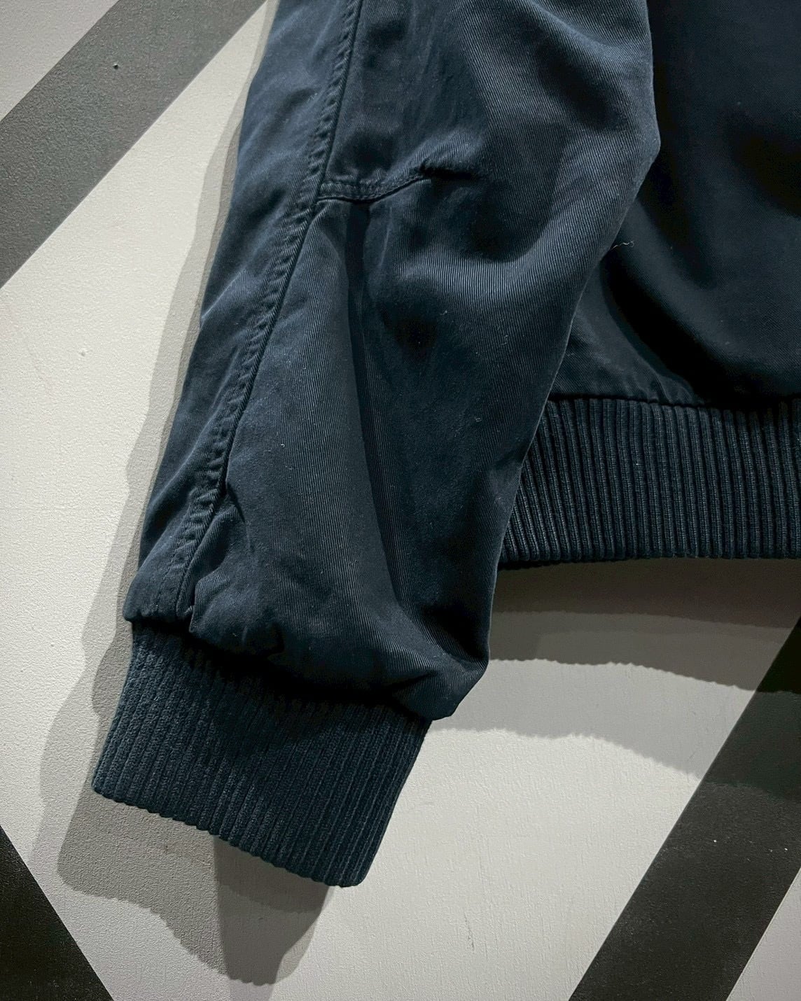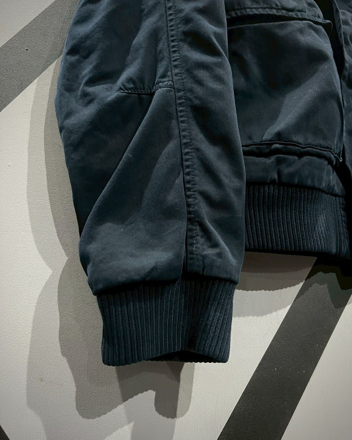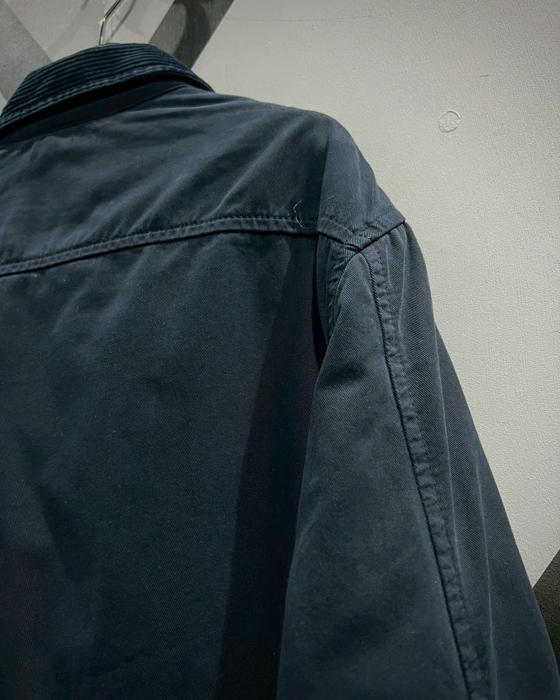 ボディにはコットンツイルを採用し、マットな質感としなやかな手触りが特徴。着込むほどにアタリやフェードが現れ、デニムのように自分だけの経年変化を楽しめる素材感です。色味は深みがありながらも落ち着いたトーンで、どんなスタイルにも馴染む万能なバランス。