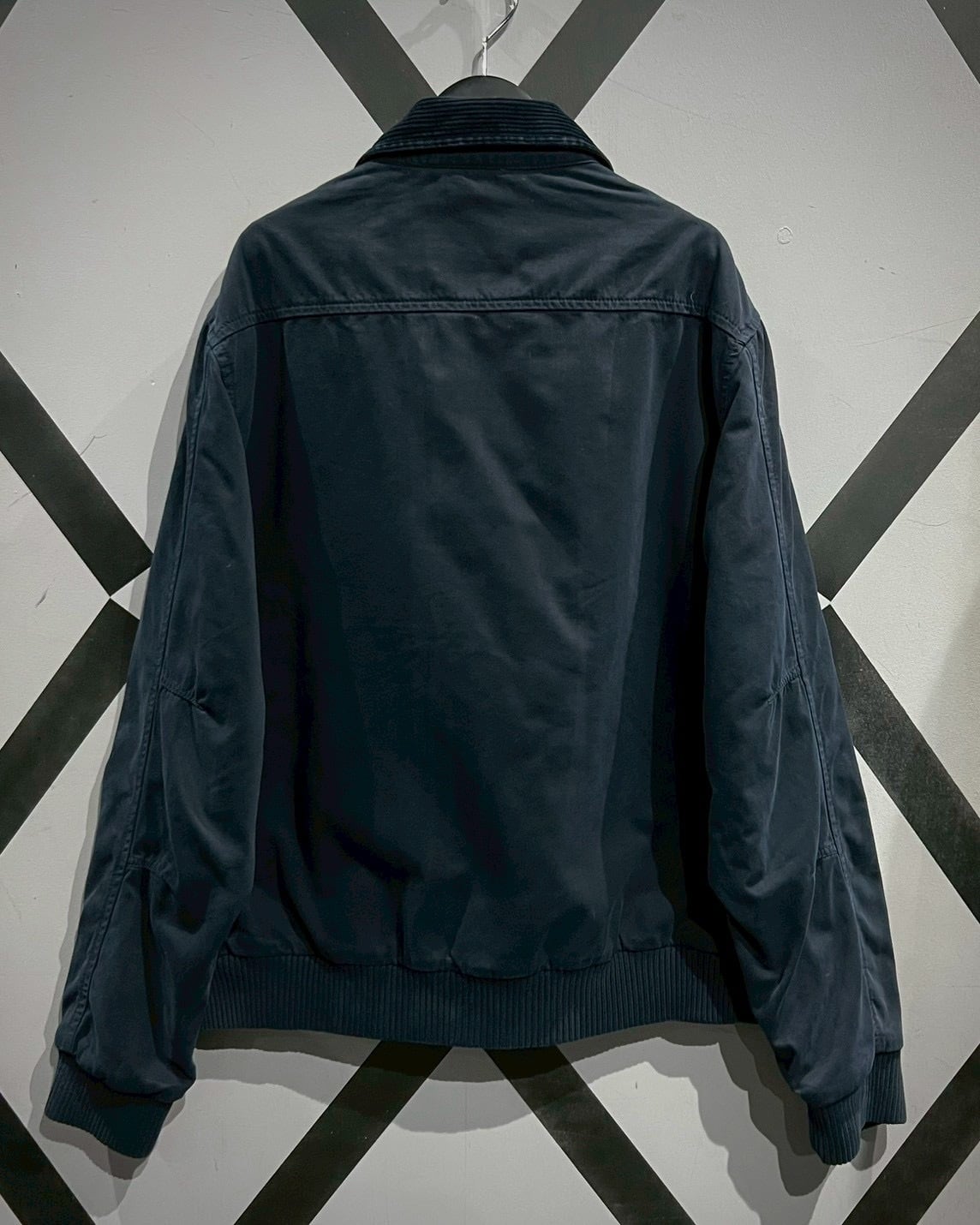 襟元にはコーデュロイ素材の切り替えを施し、ワークテイストのアクセントをプラス。フロントは比翼仕立てのスナップボタン+ジップ構造で、防風性とデザイン性を両立。大ぶりなフラップポケットや裾リブの仕様が、ワークのディテールを彷彿とさせますね。
