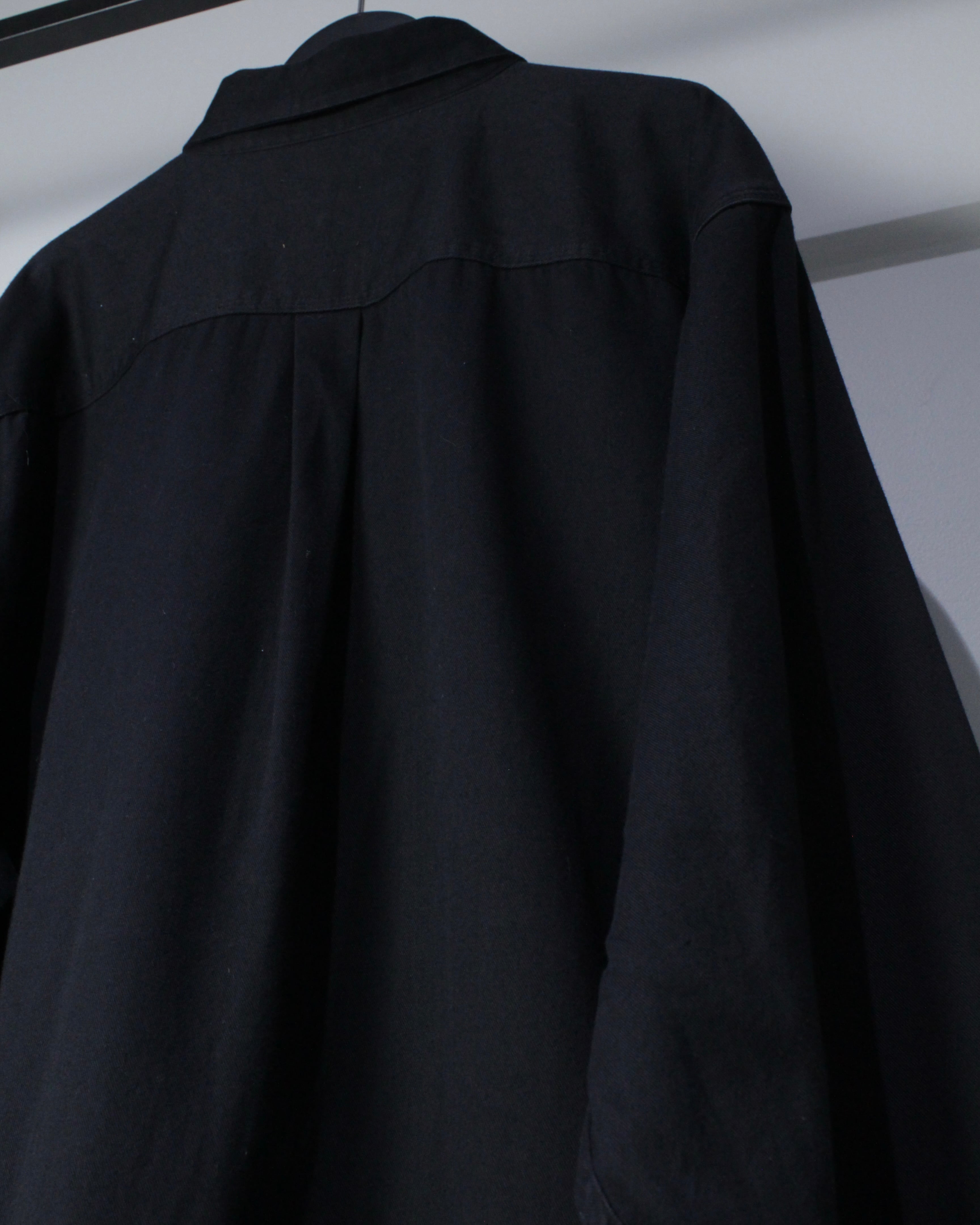 装飾的でありながら派手すぎない、絶妙なバランス感。上品な存在感を放つ、当店セレクトらしい長袖シャツの逸品です。