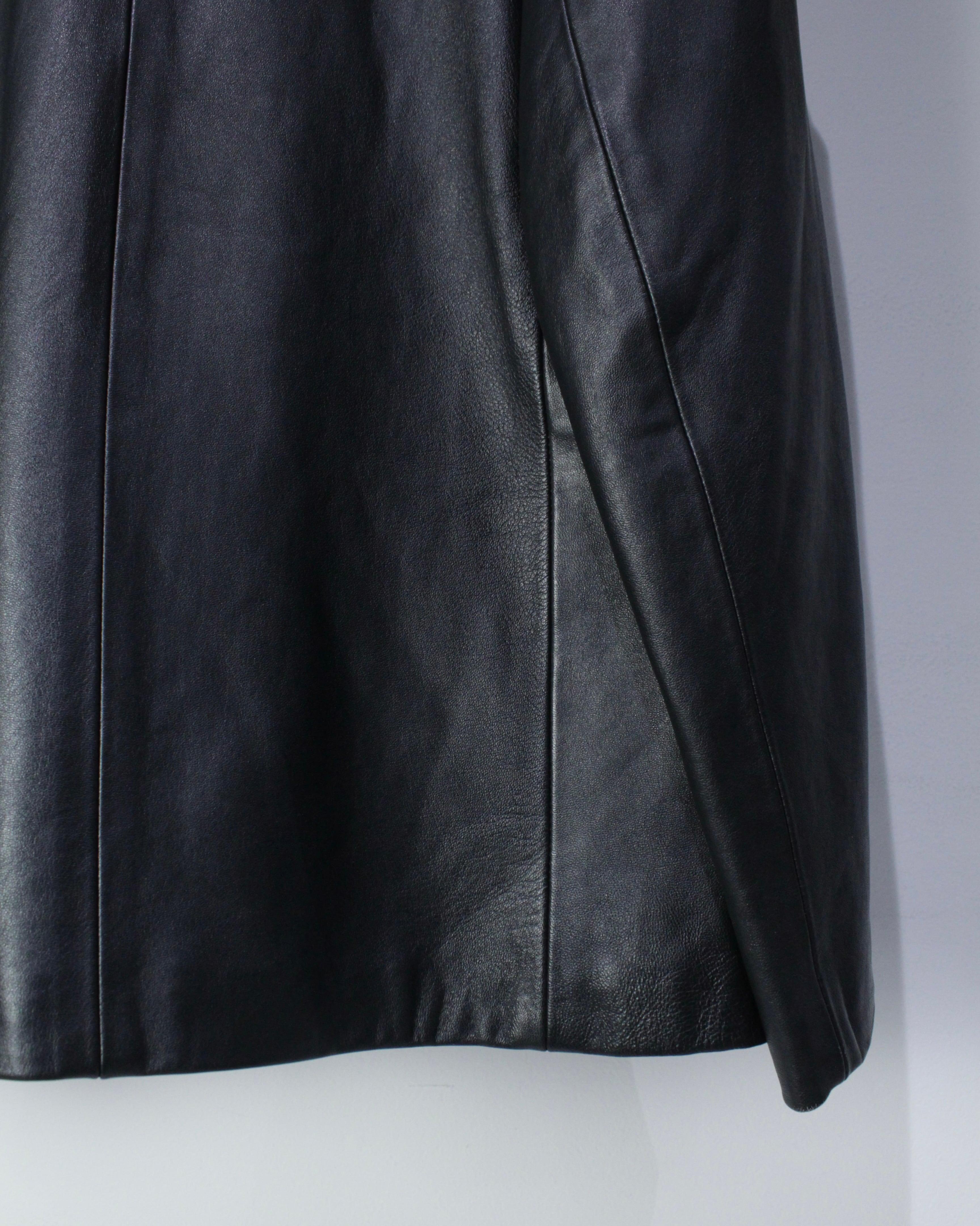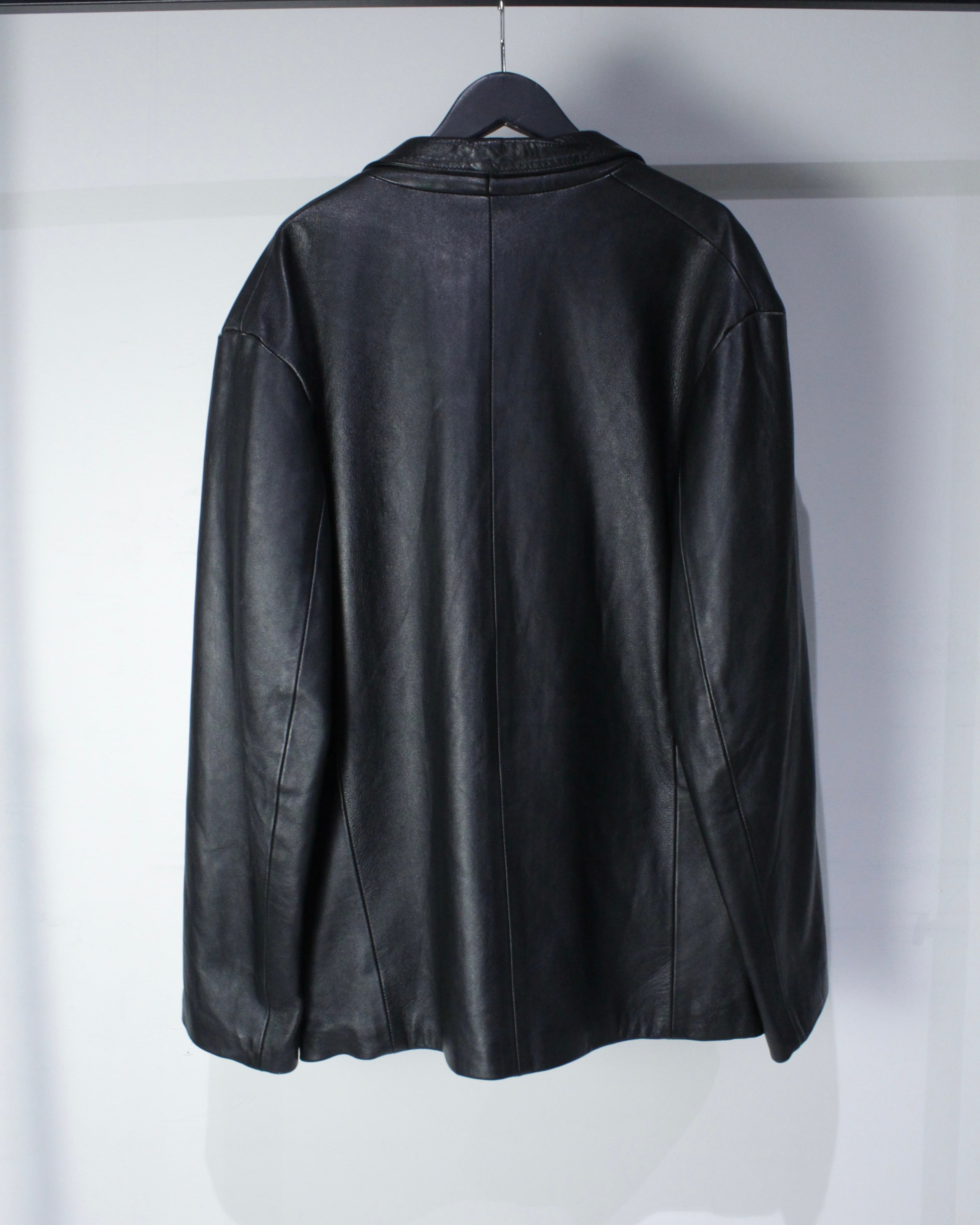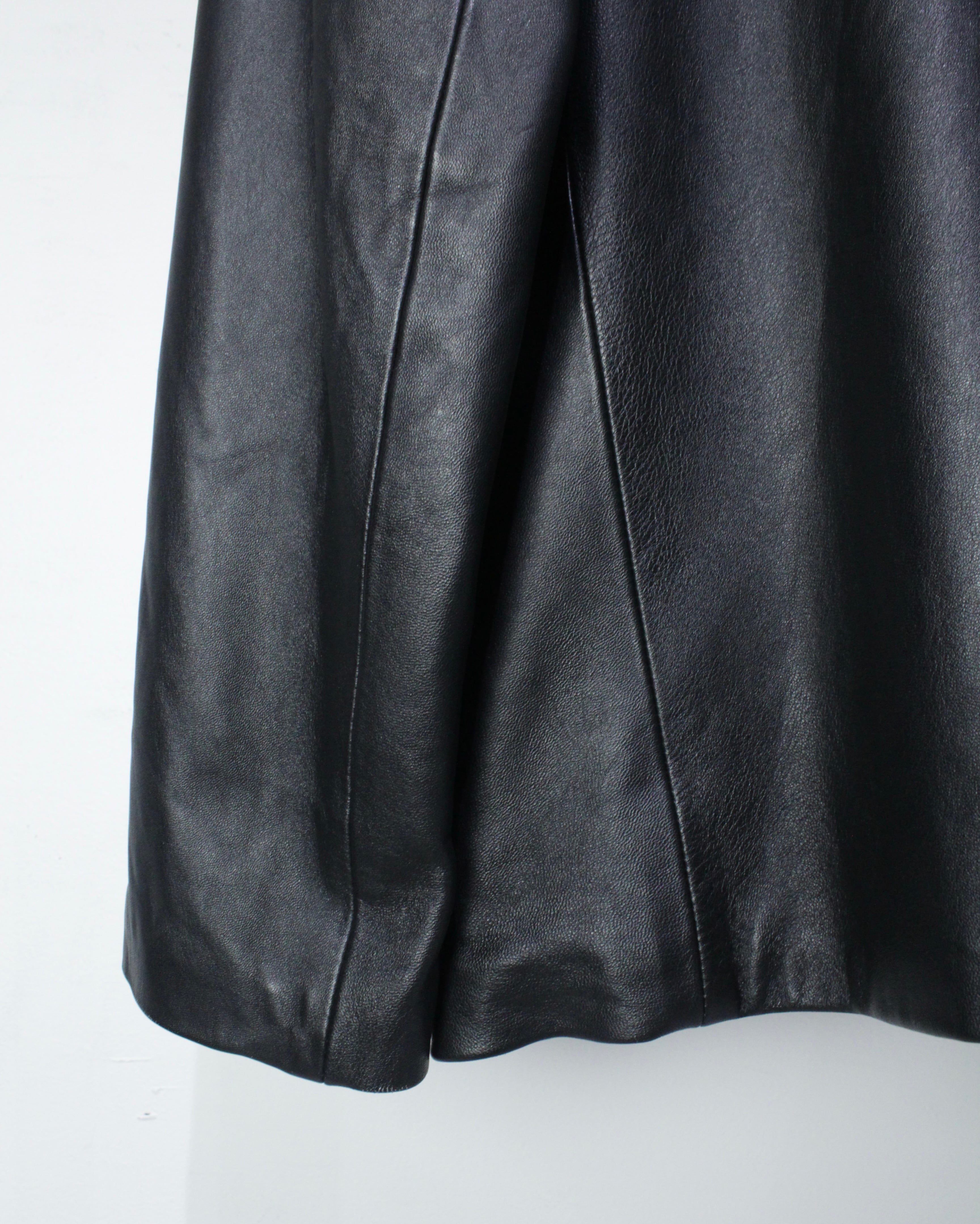しっとりとした艶を放つ極上のブラックレザーを贅沢に使用した、モードとクラシックな雰囲気を併せ持ったレザーテーラードジャケット。