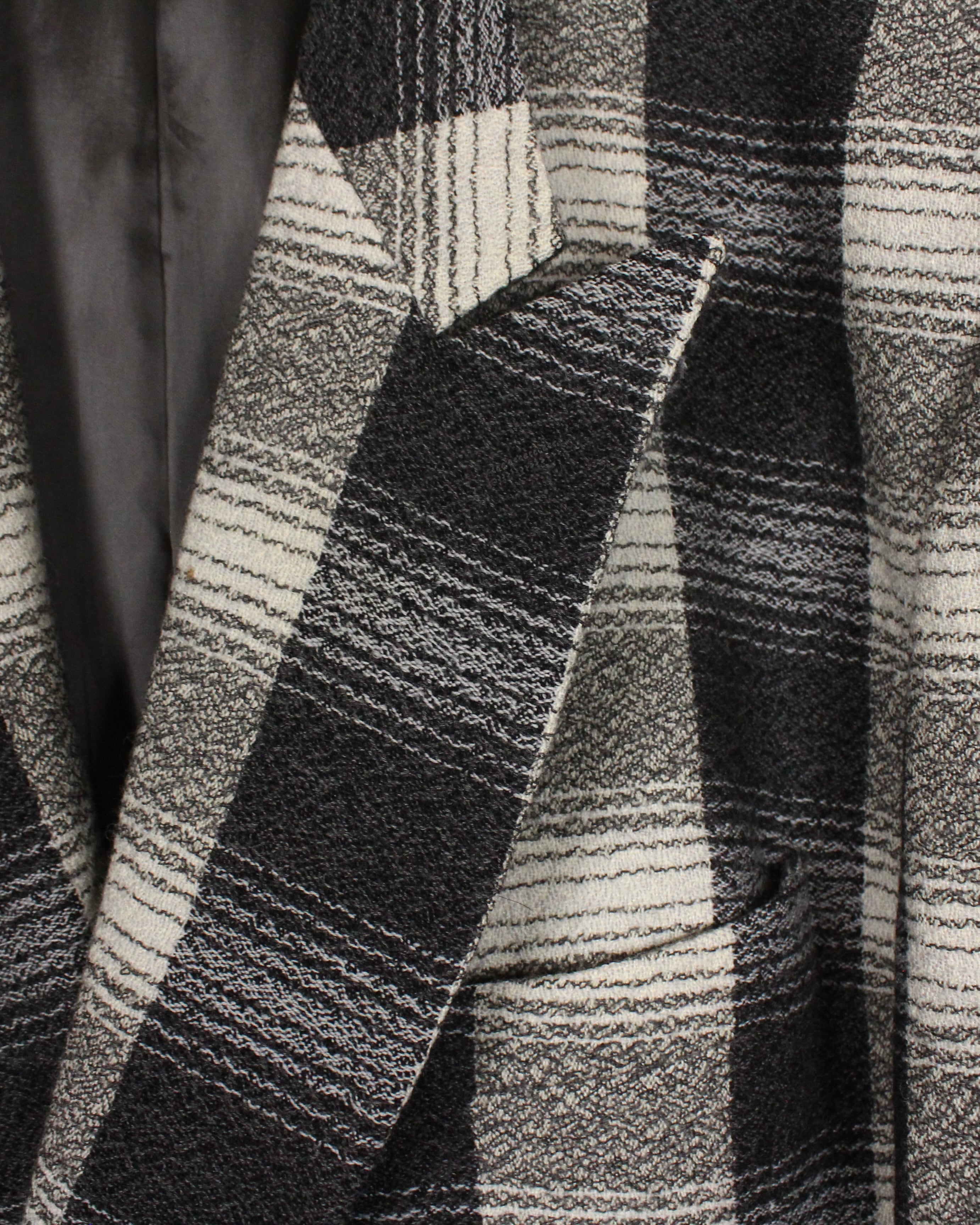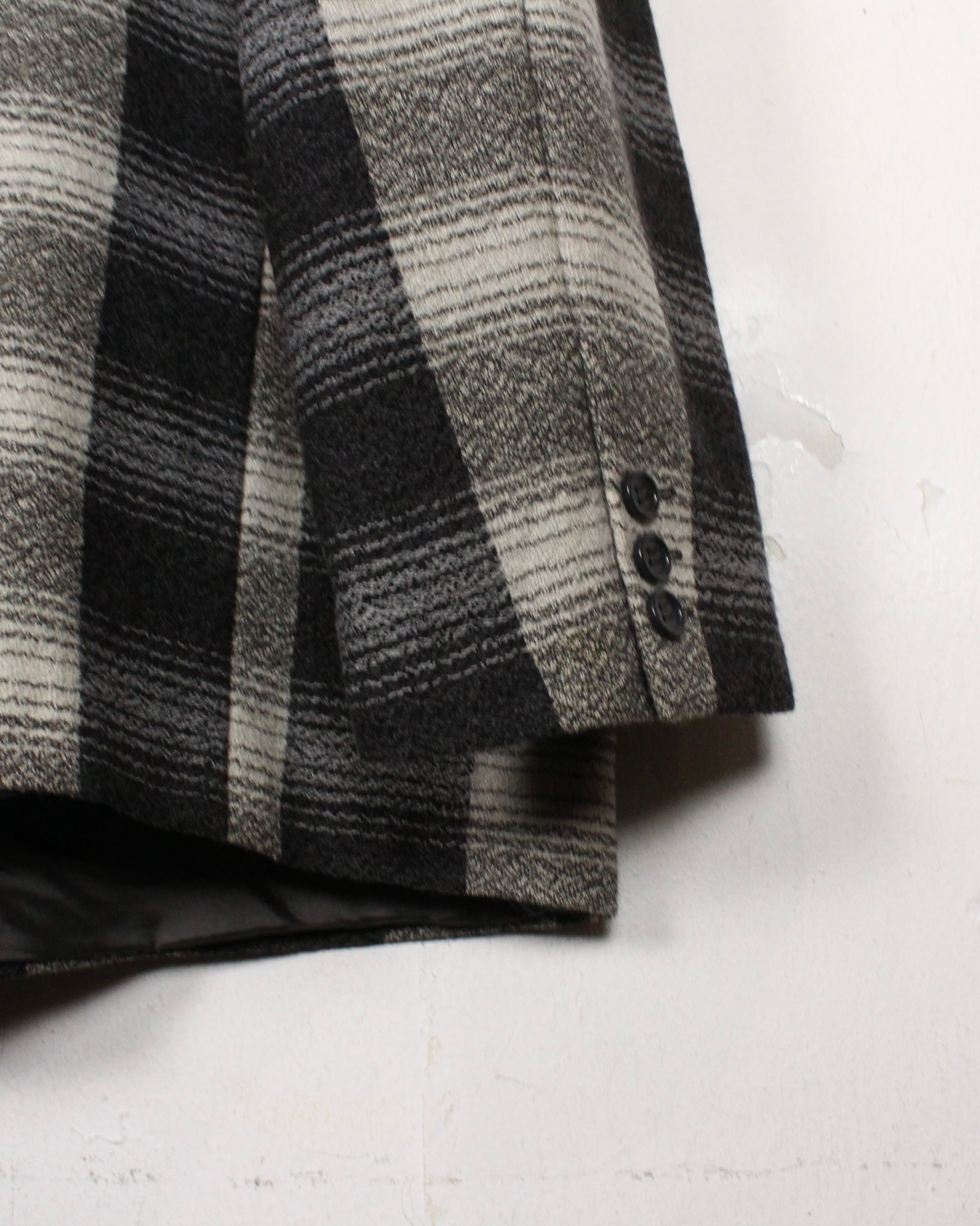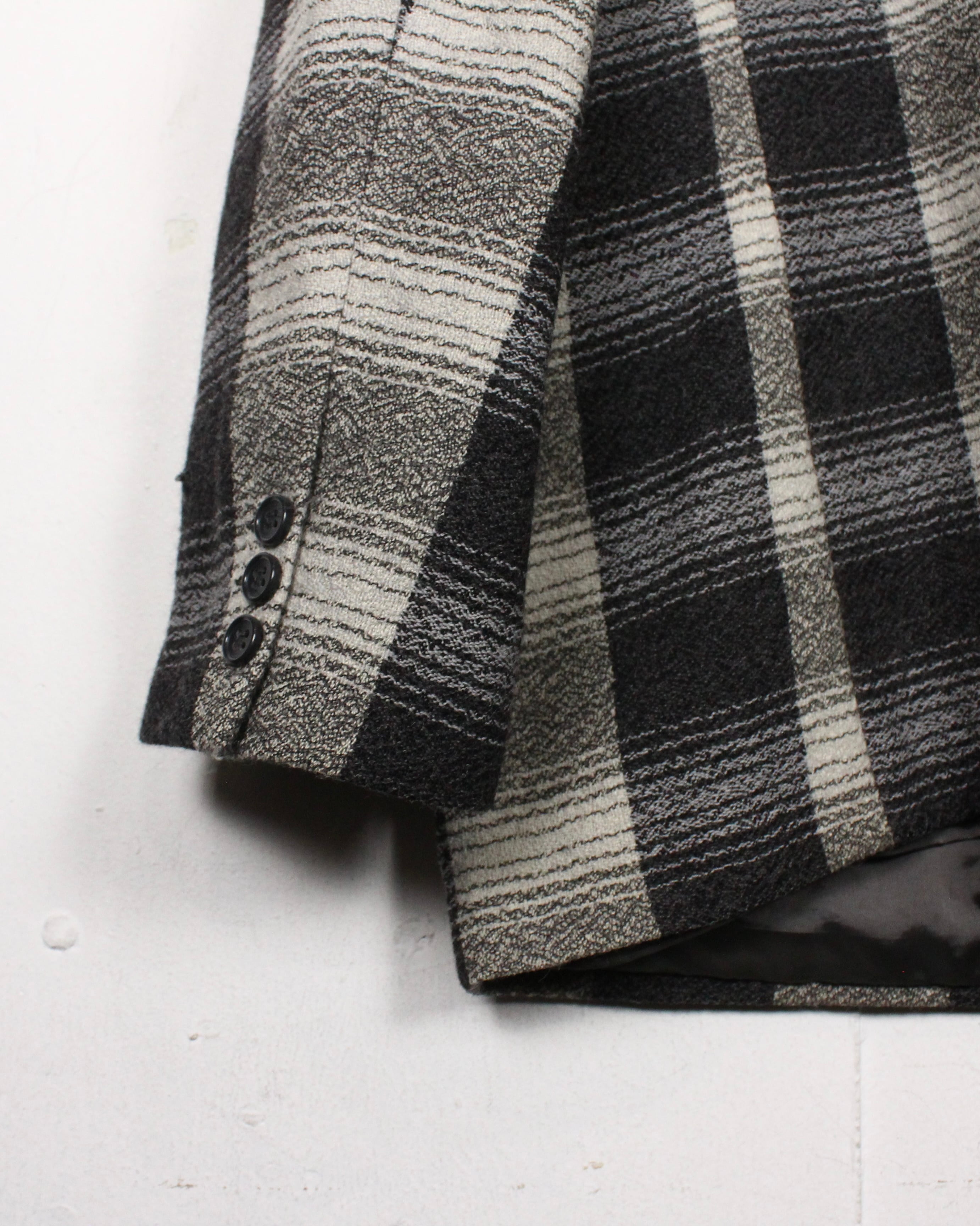 クラシックなチェックをベースに、グレートーンのグラデーションで構成されたパターンが圧倒的な存在感を放ちます。