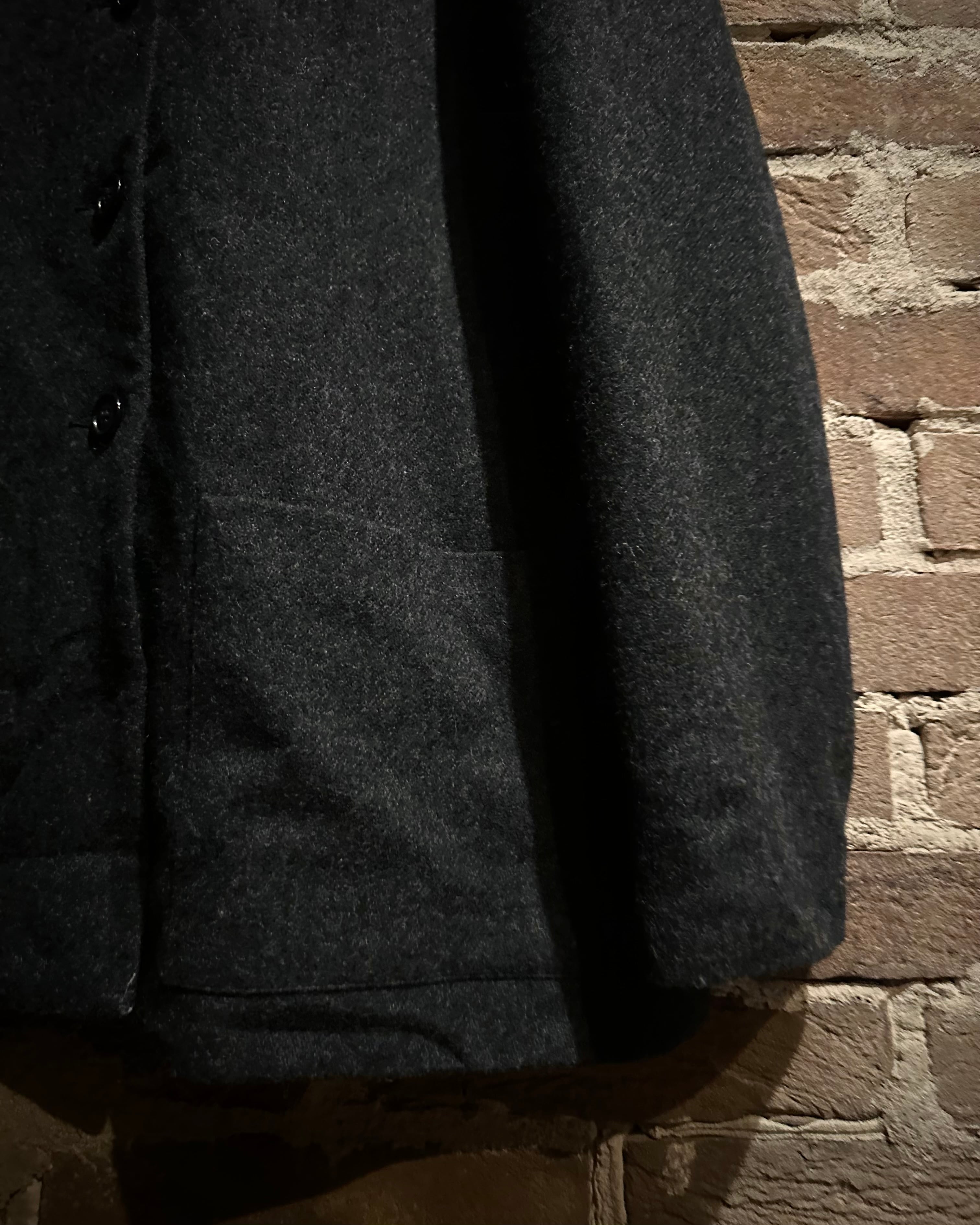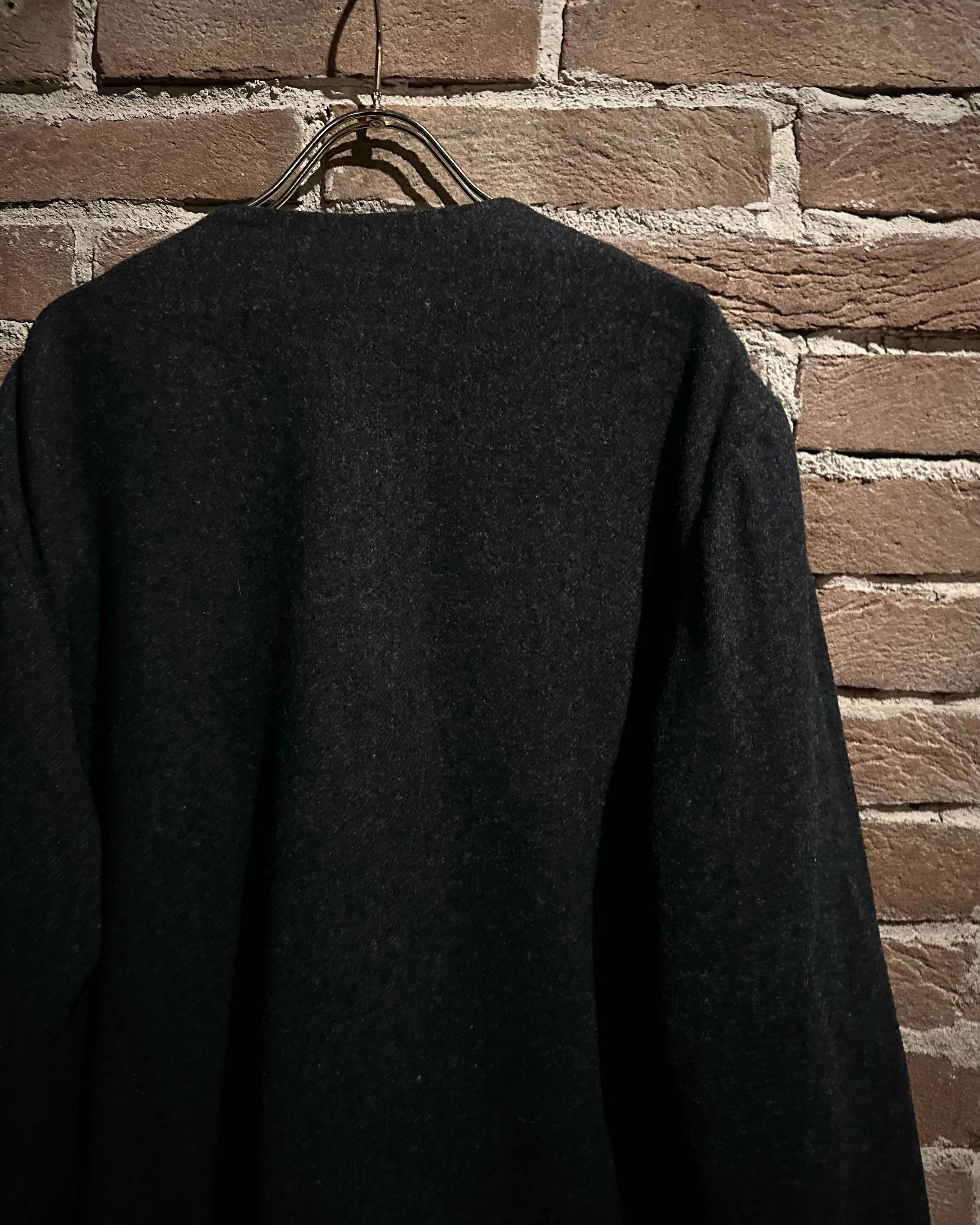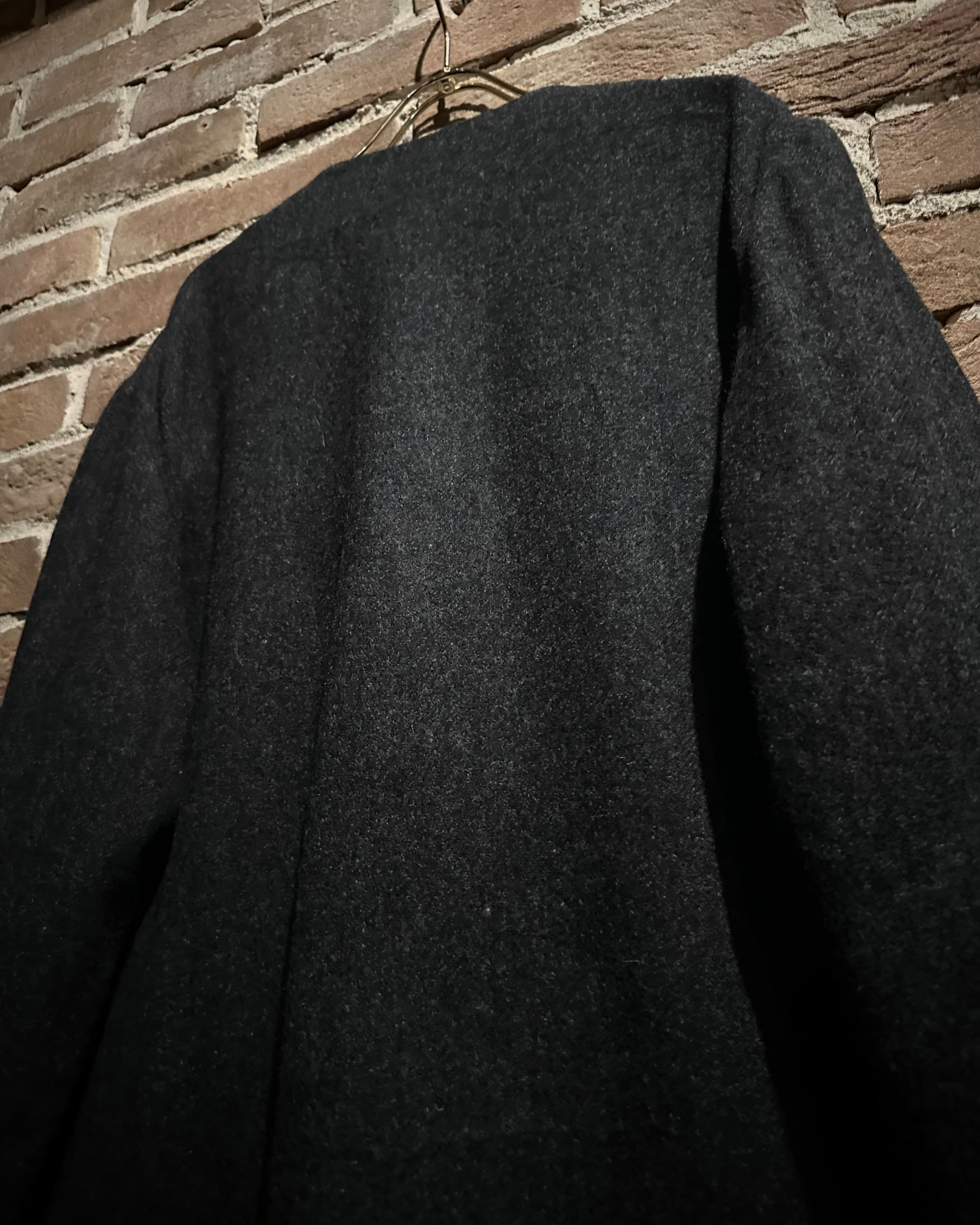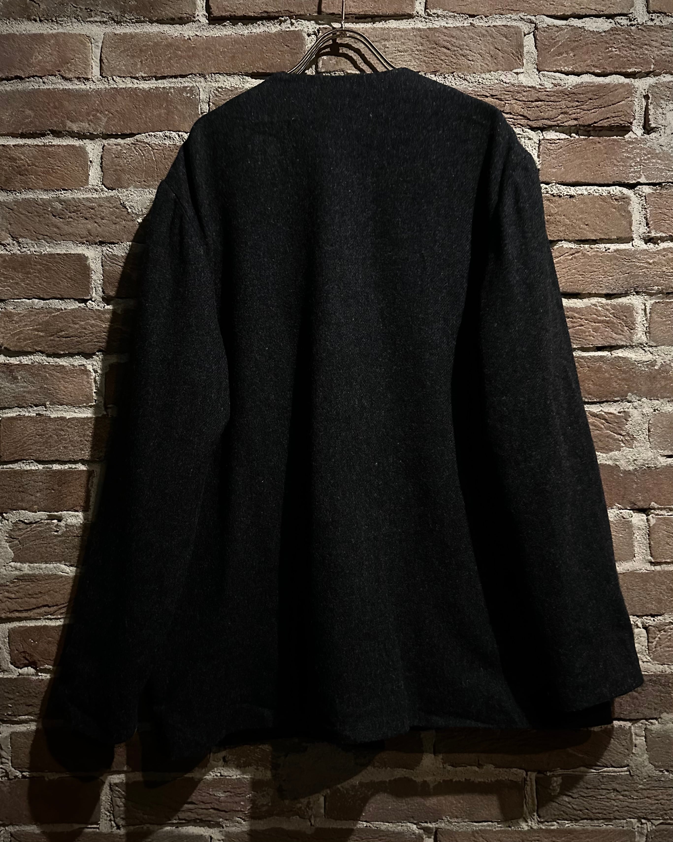 裏地にはさらりとしたライニングを配し、重厚な素材感ながら快適な着心地を実現。丸みを帯びたノーカラーのシルエットはレイヤードにも優れ、シャツやタートルネックとの相性も抜群です。