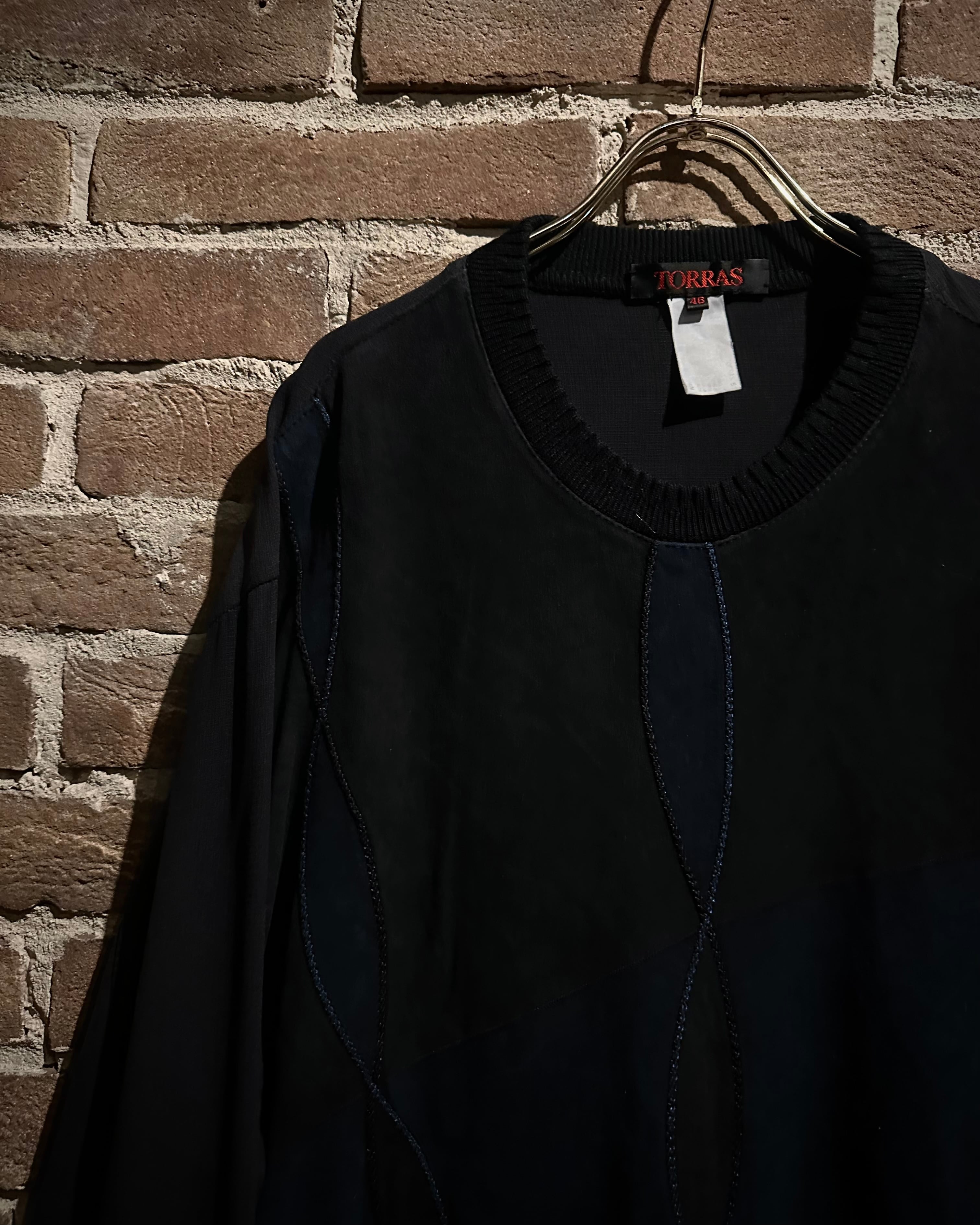 1951年にスペインで創業した老舗レザーブランド“TORRAS”より、異素材切り替えが際立つスエード切り替えニット。