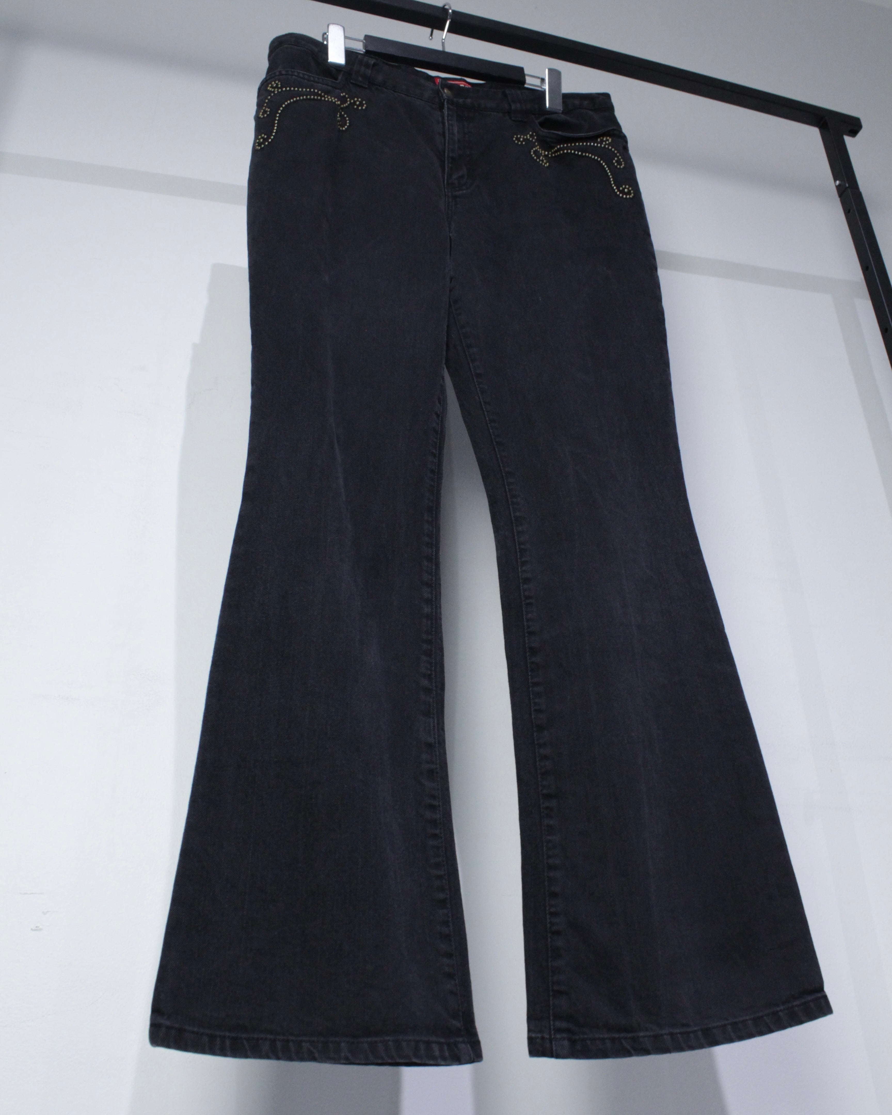 稀少なブラックデニムをベースに、高いデザイン性を兼ね備えたスペシャルなヴィンテージフレアパンツです。