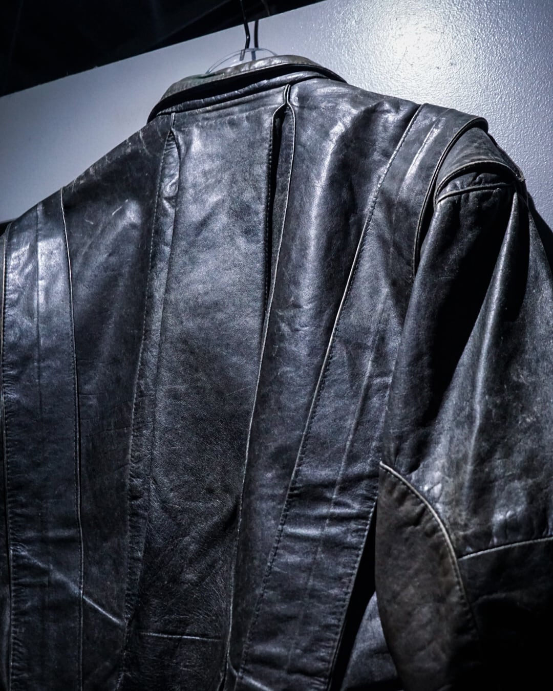 ボディ全体に走る直線的かつ複雑なパネル切り替えが素晴らしく、ショルダーからスリーブ、フロント、背面にかけて構築的な立体感を強調。無骨な印象ながら、どこかエレガントなラインを描くバランスが秀逸です。