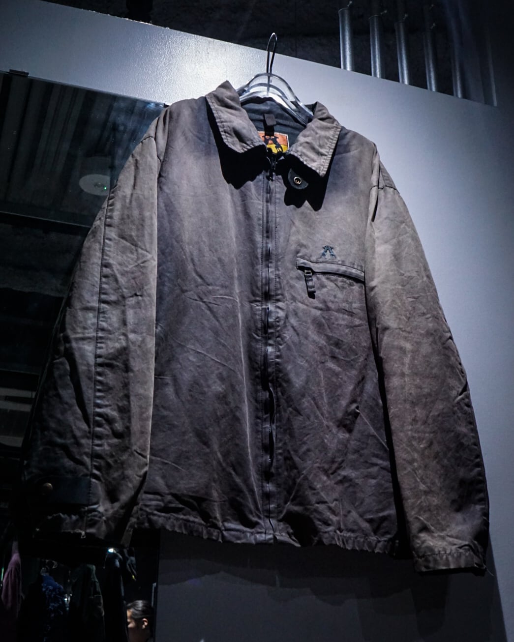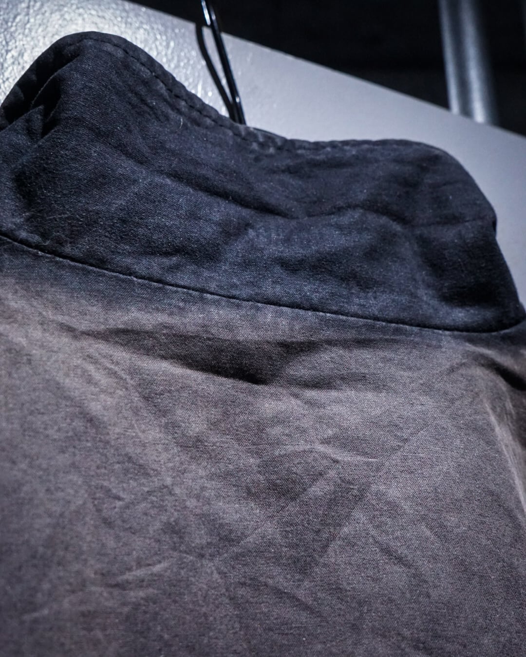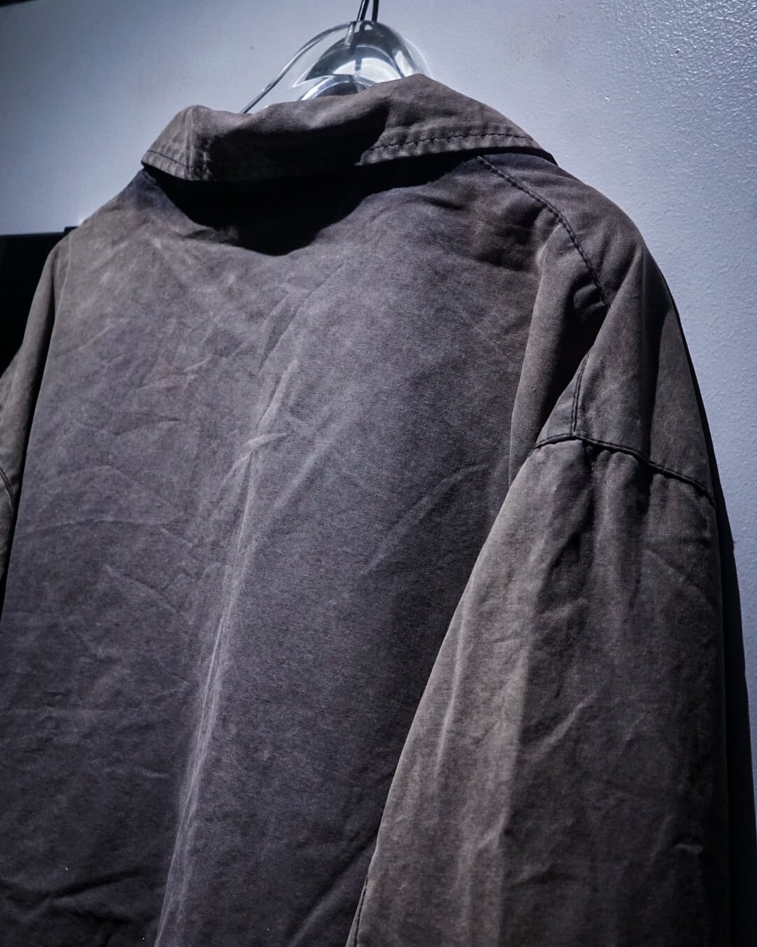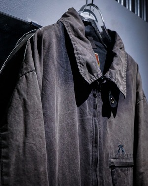全体に浮かび上がるサンフェードが圧巻で、太陽の光と時間の経過によって生まれた独特のムラ感が存在感を抜群に放っています。袖や襟、縫い目に沿って滲む色のグラデーションは一点一点異なり、長年着込まれたリアルワークウェアならではの味わいが醍醐味です。