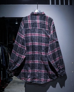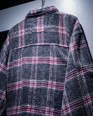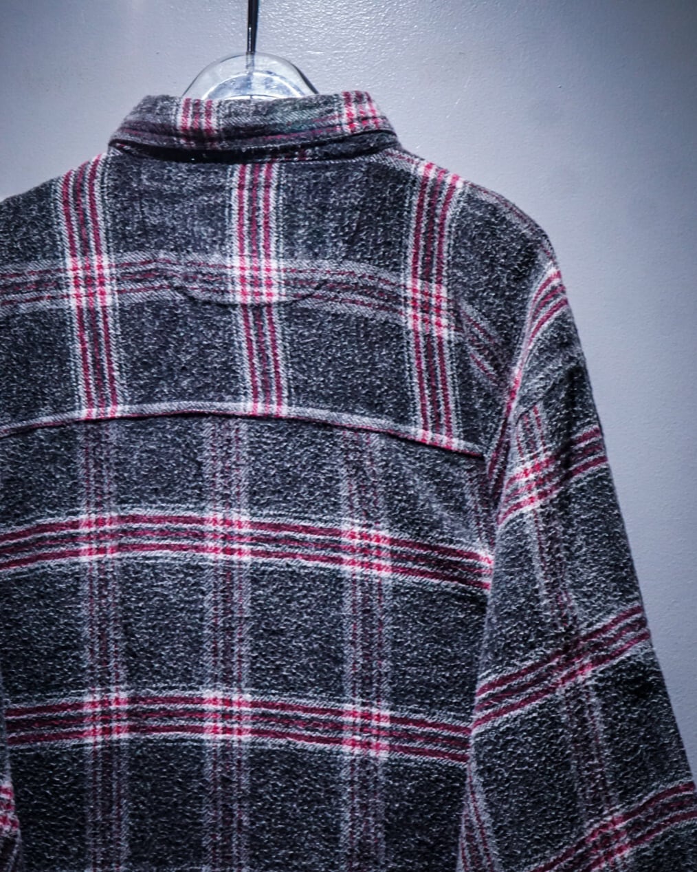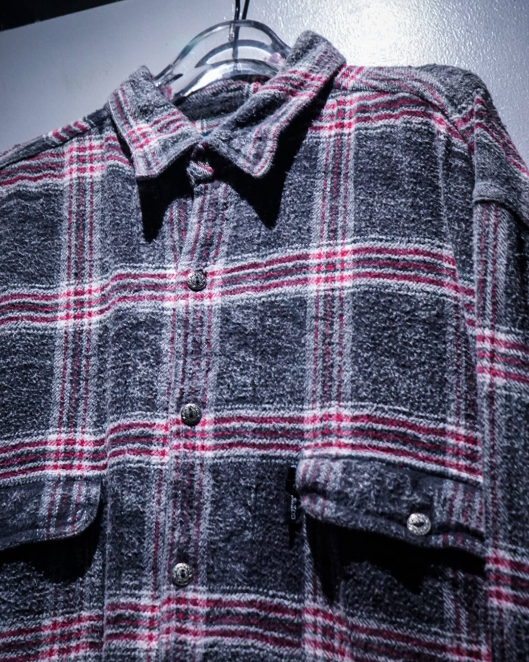 グレーを基調に、ピンクとホワイトのラインが柔らかく走るチェックパターンが印象的なヘビーフランネルシャツ。