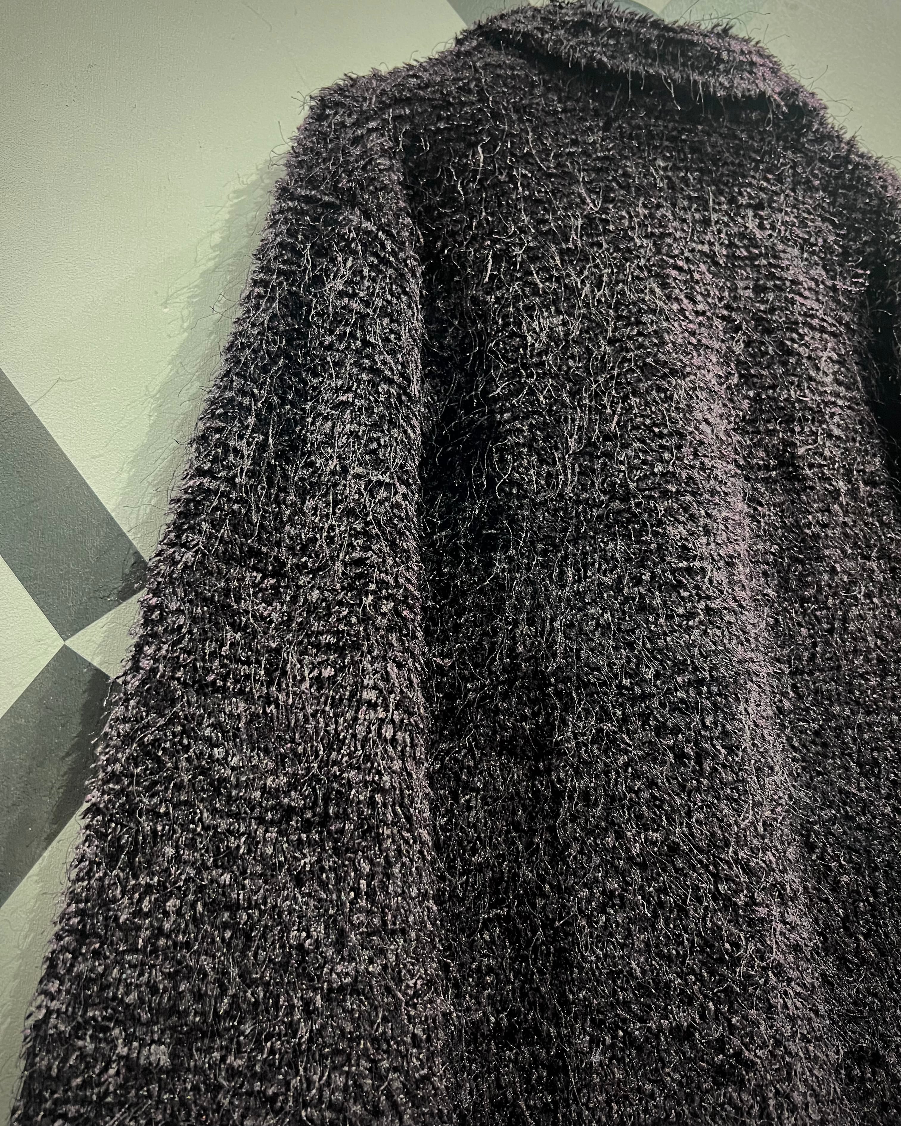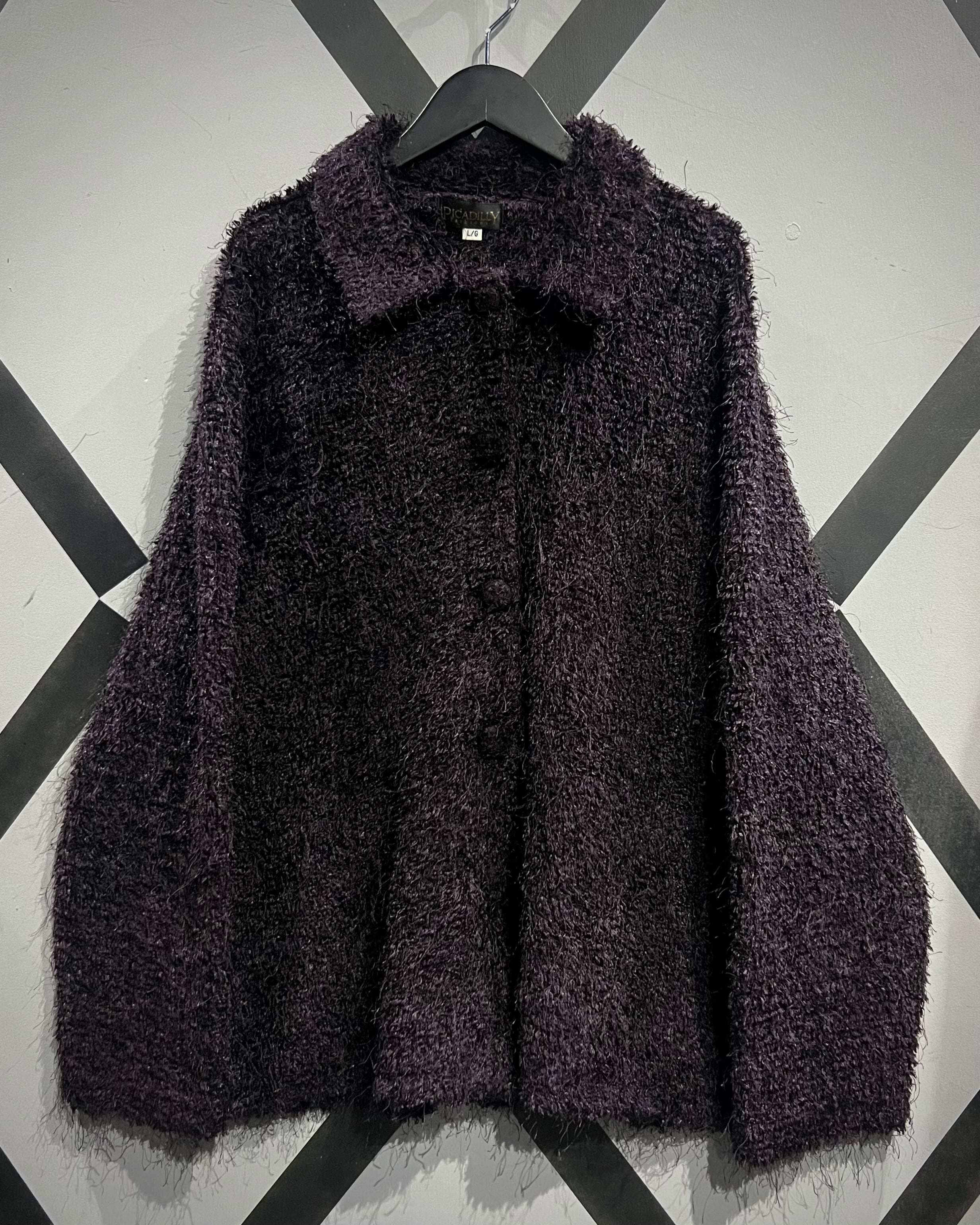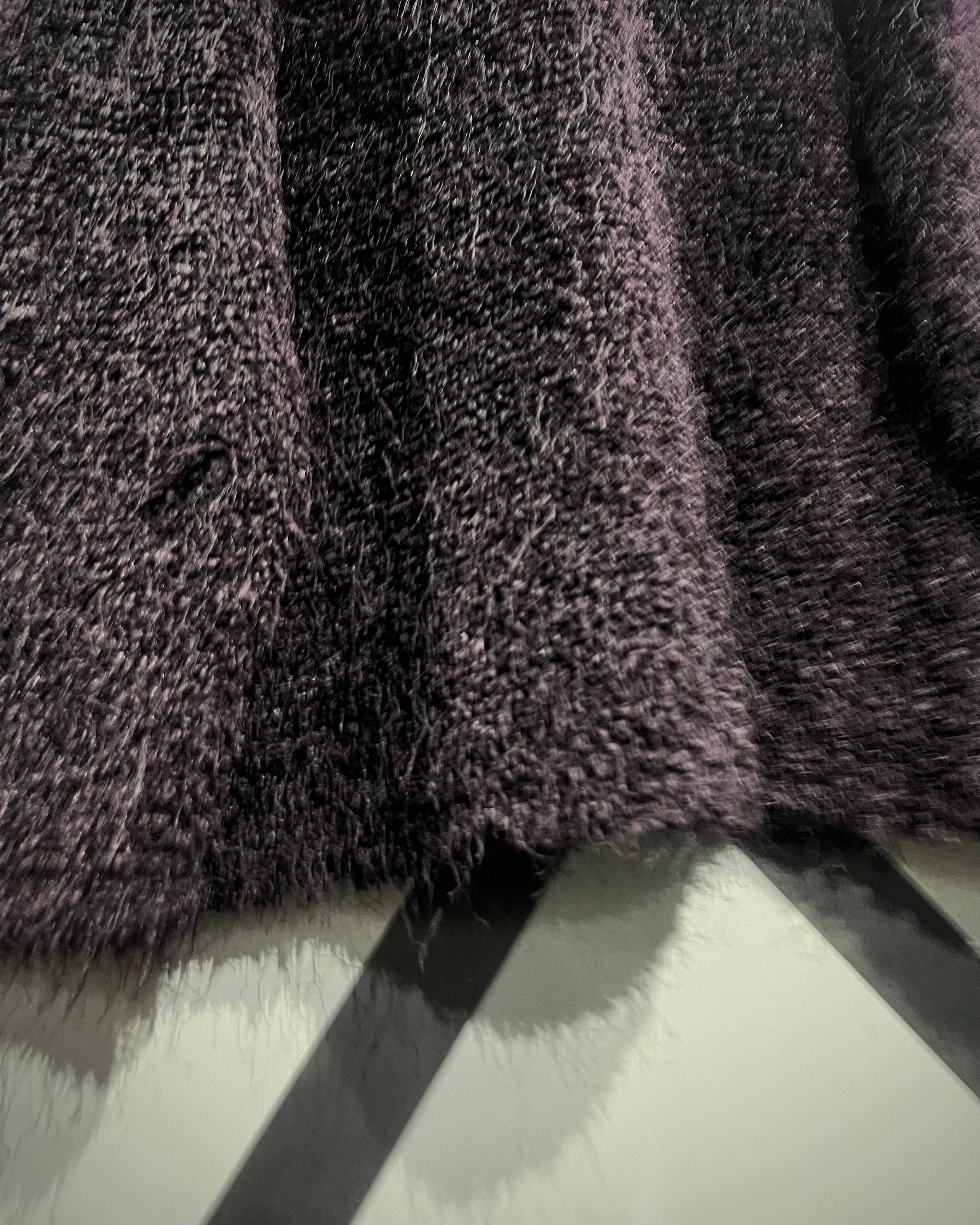 深みのあるパープルトーンと、独特の毛足を持つシャギー素材が印象的な長袖シャツ。