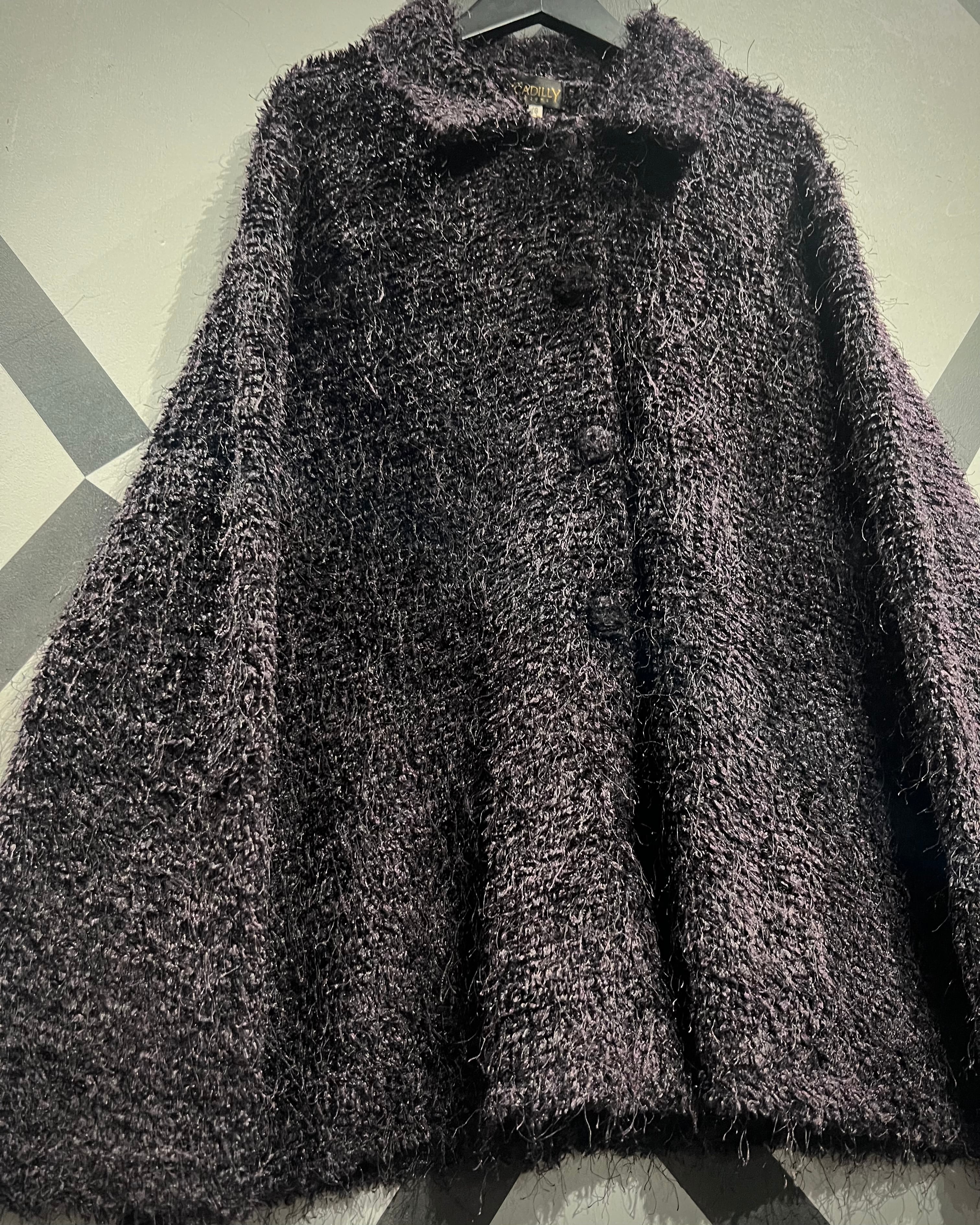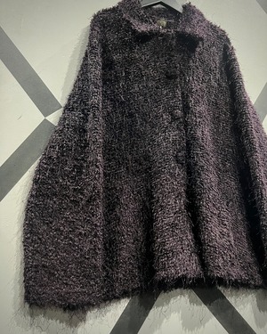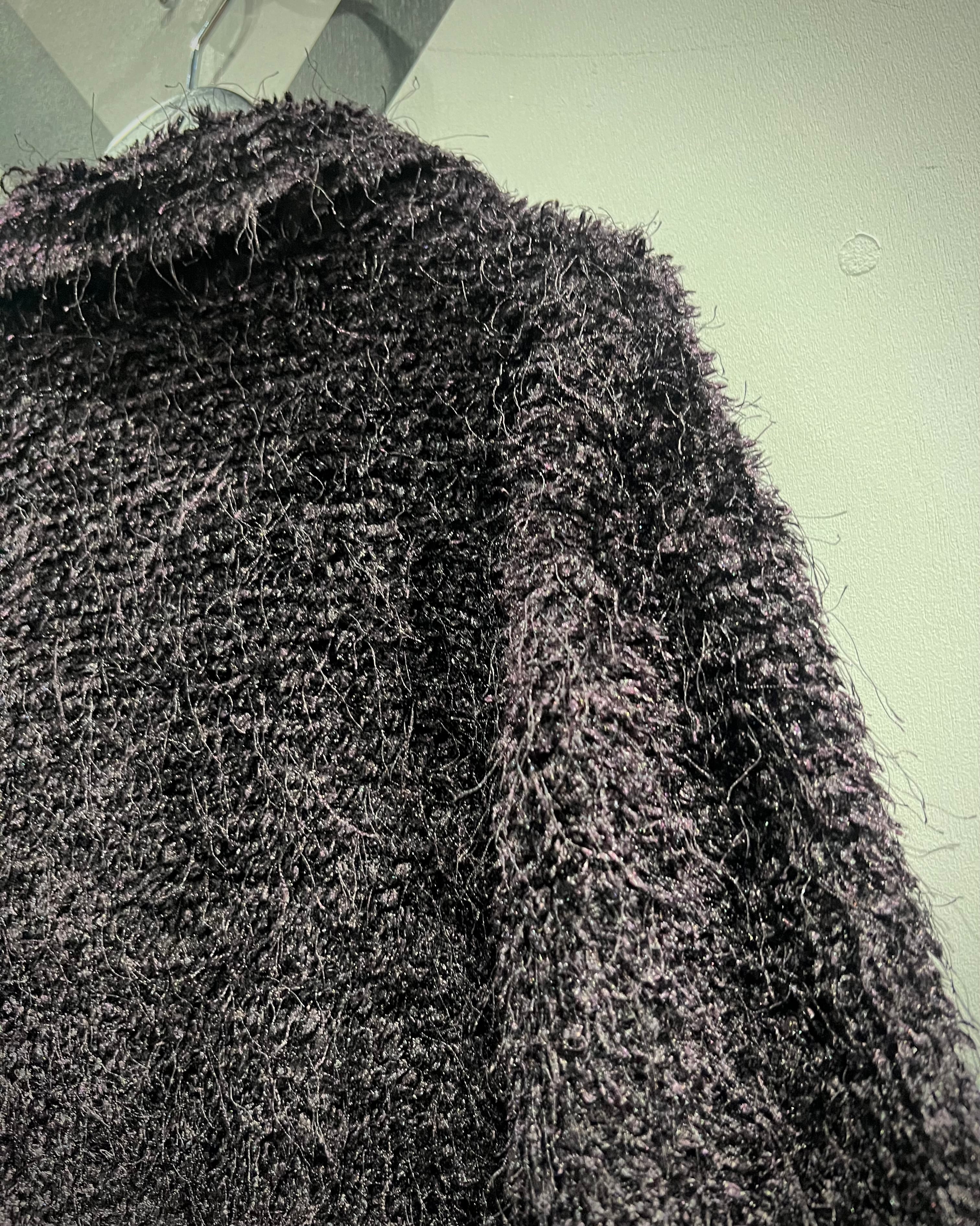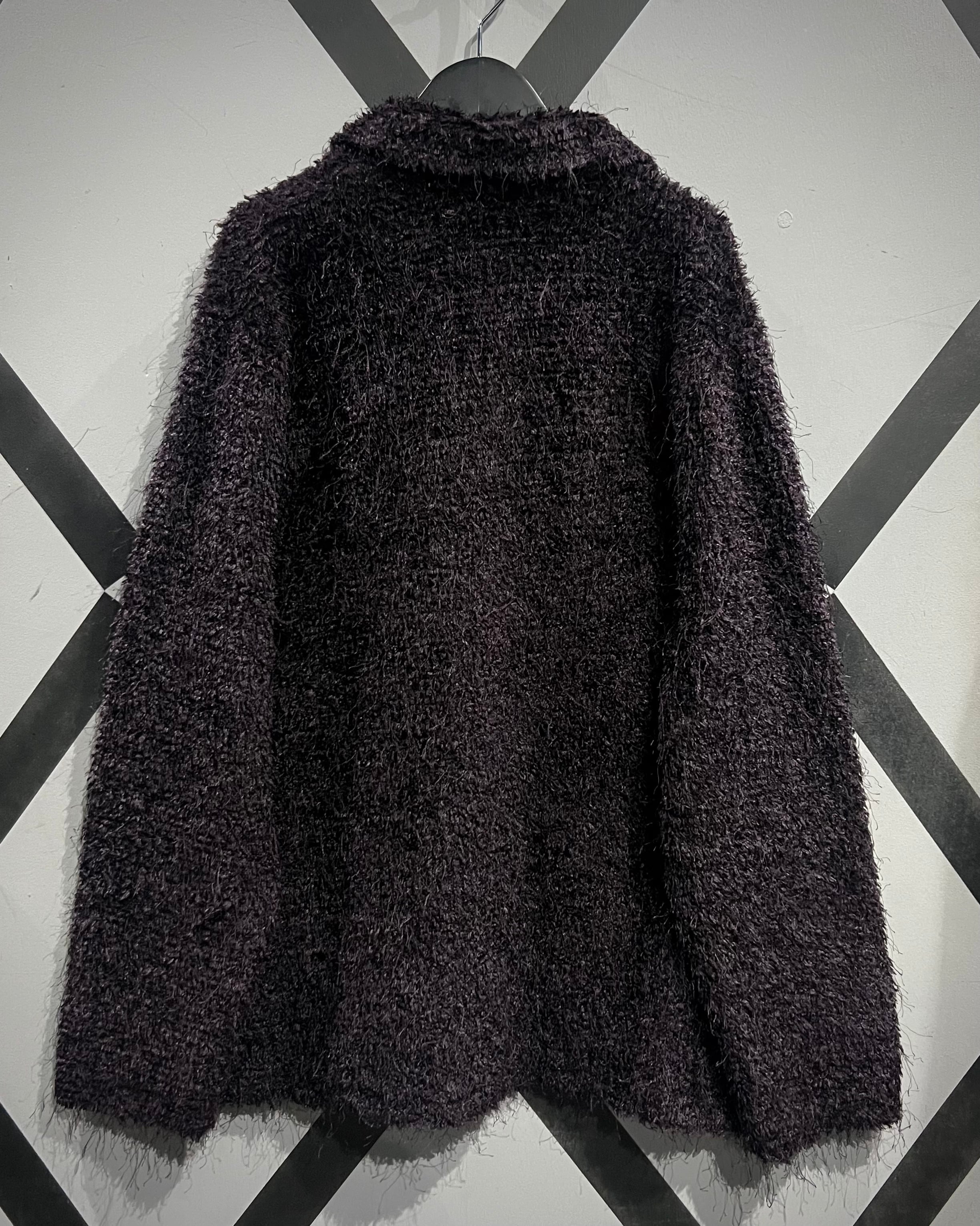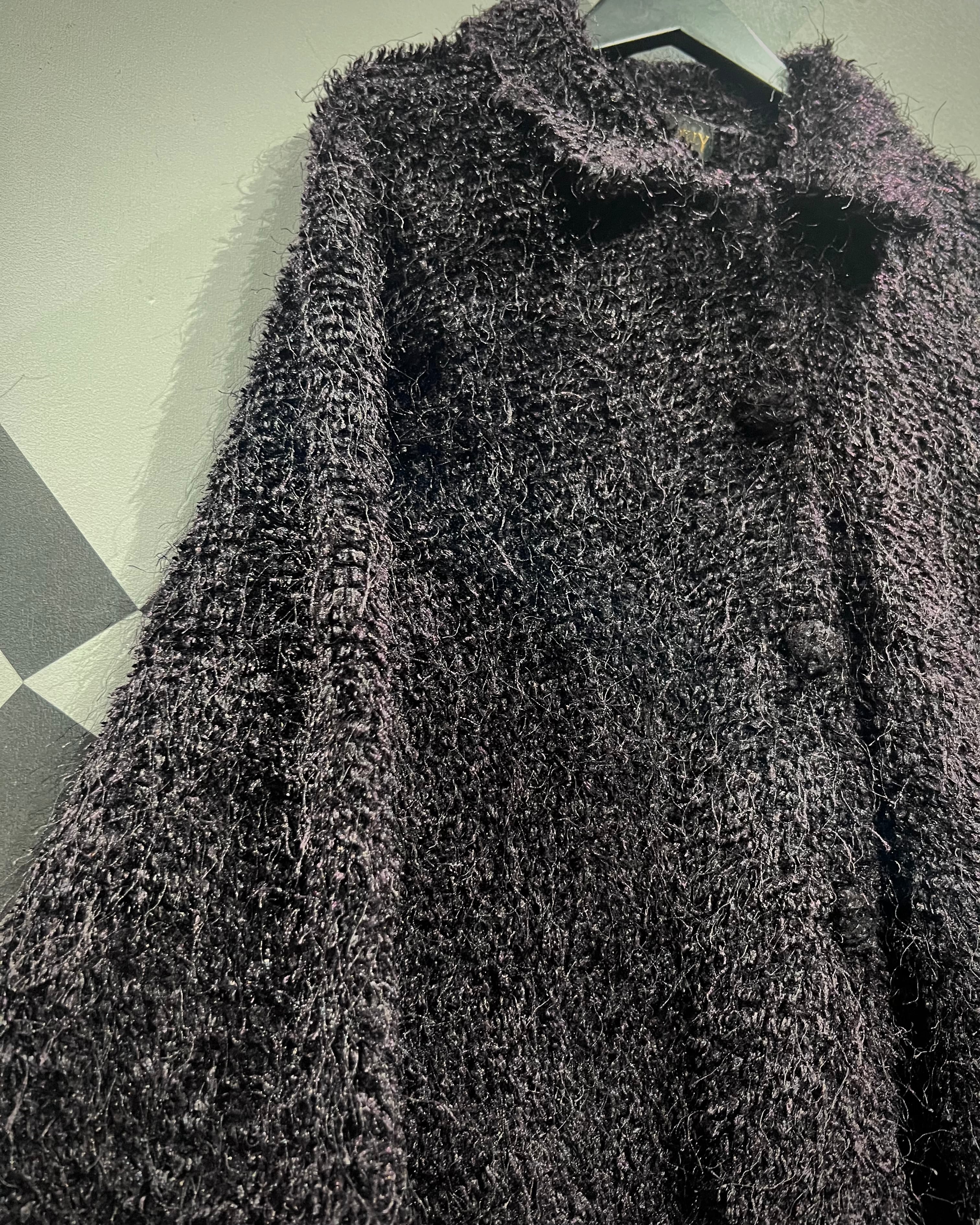 深みのあるパープルトーンと、独特の毛足を持つシャギー素材が印象的な長袖シャツ。