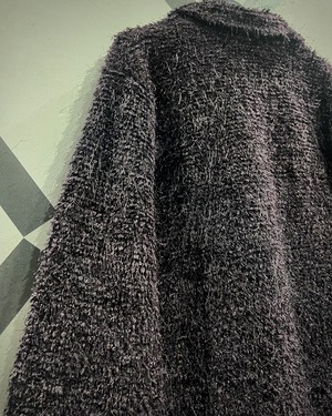 全体にわたり繊細に起毛したファブリックは、柔らかく身体に馴染む着心地ながらも存在感は圧倒的。ふんわりとした質感とドレープが、モードな佇まいを演出します。